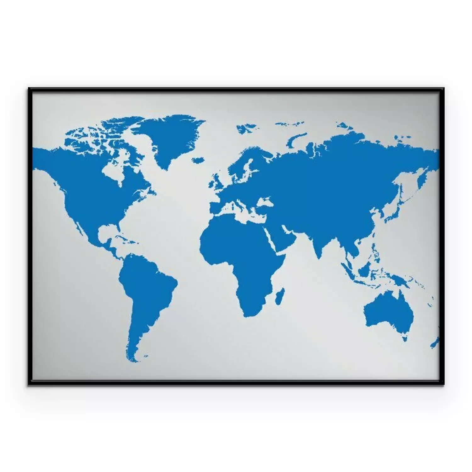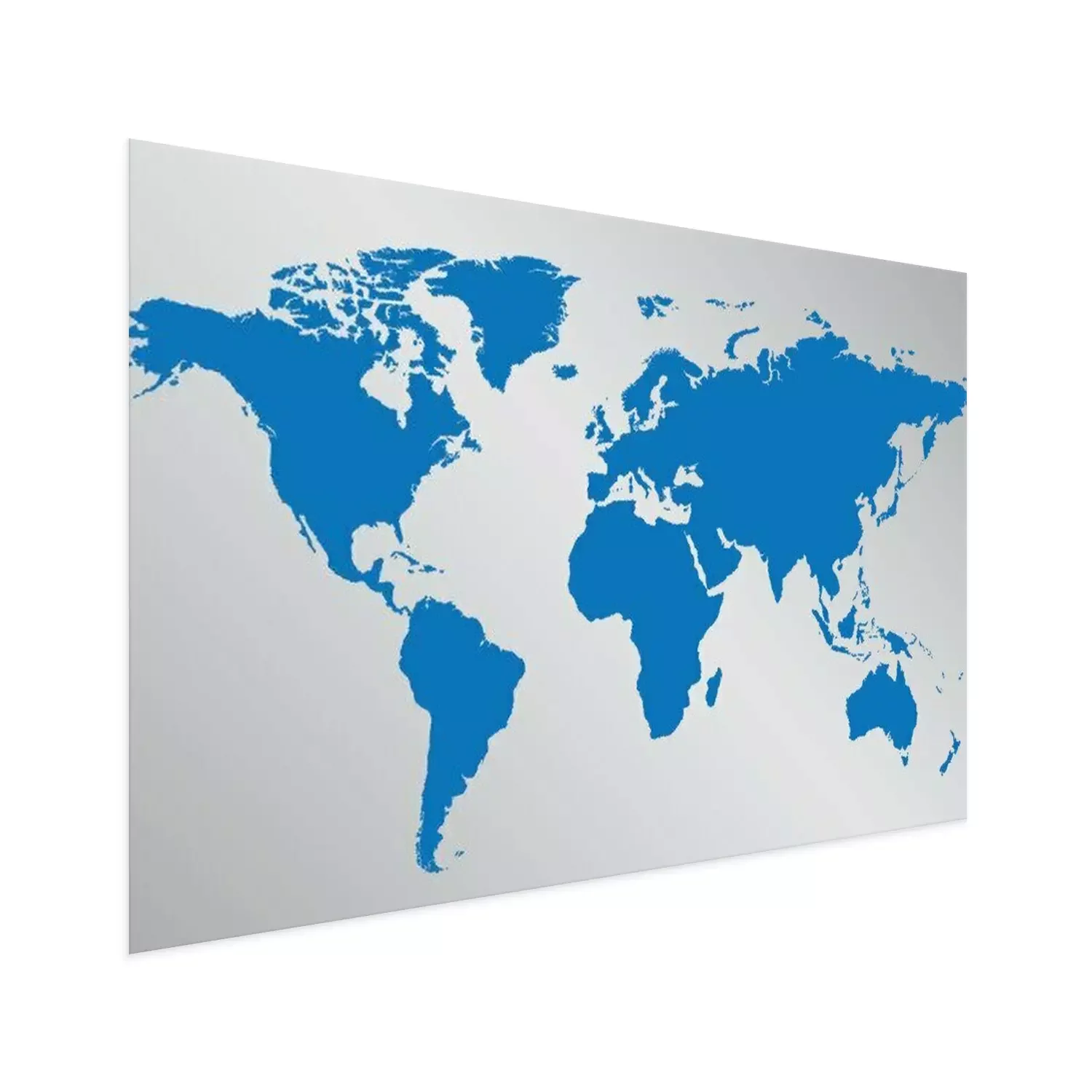 Poster: Blaue Weltkarte auf hellgrauem Hintergrund