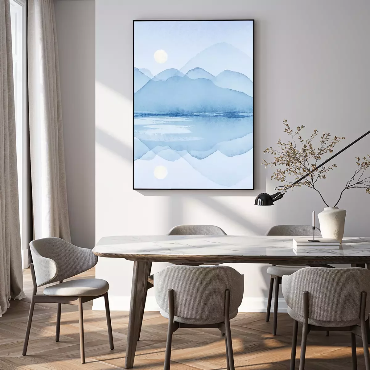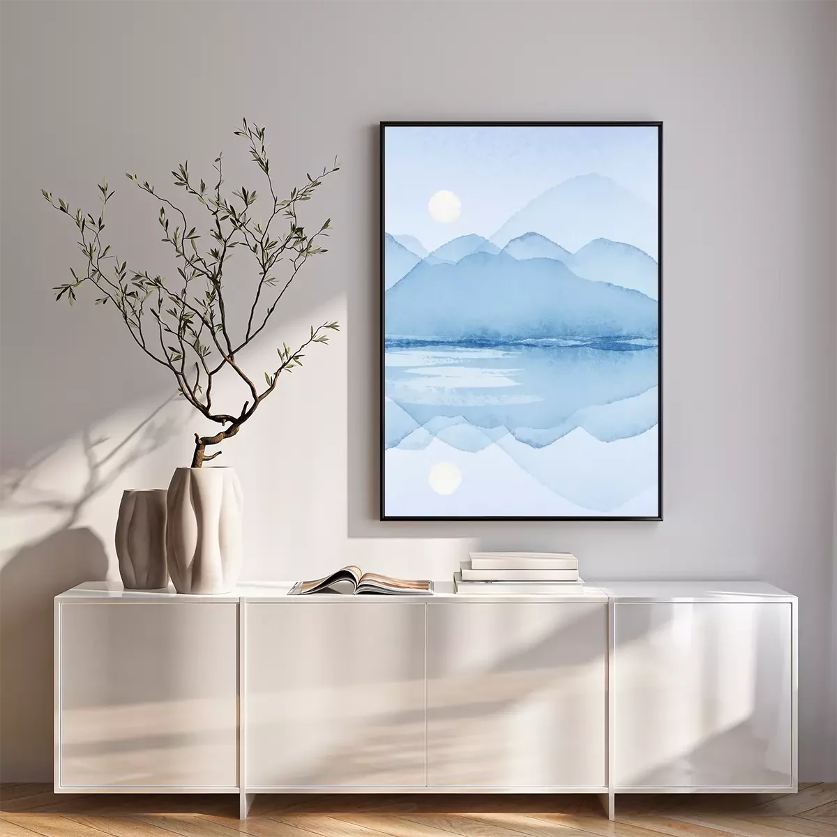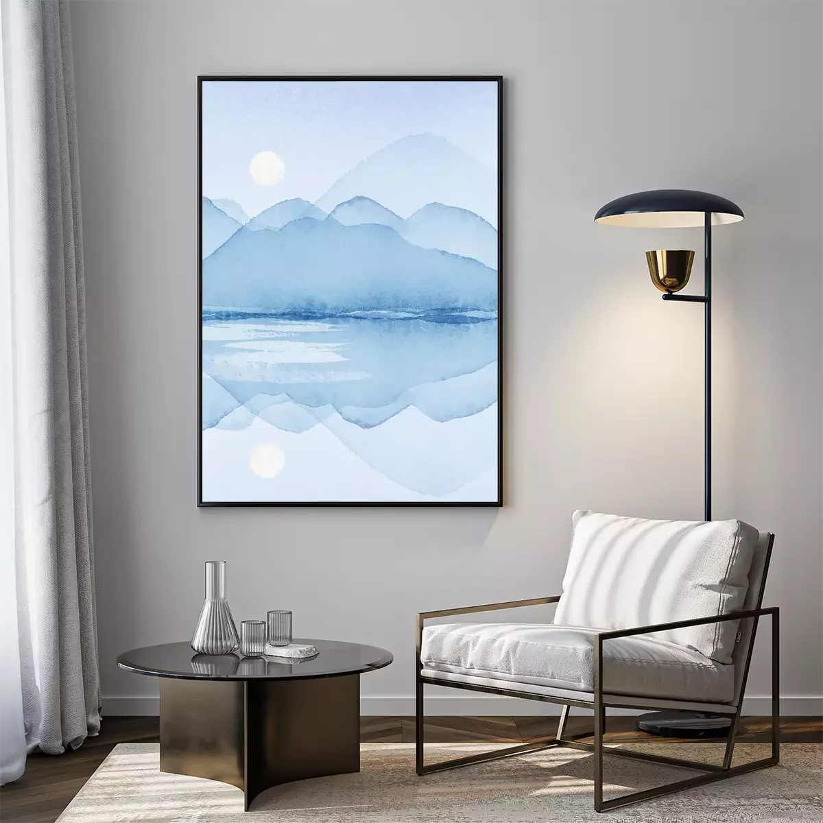 Poster: Blaues minimalistisches Landschaftsaquarell