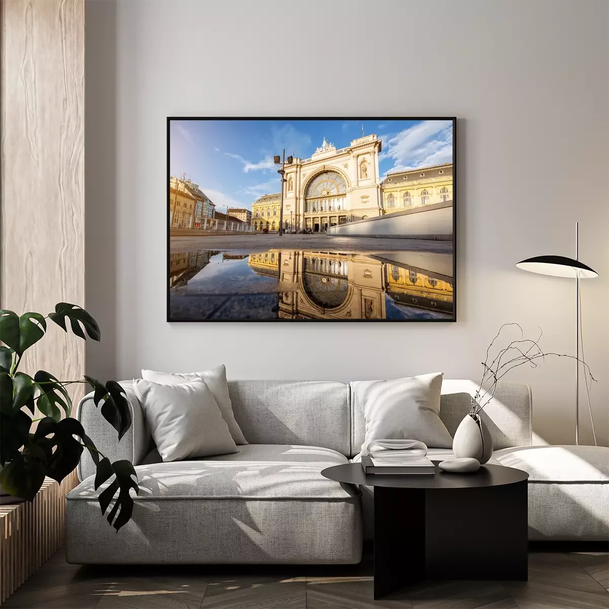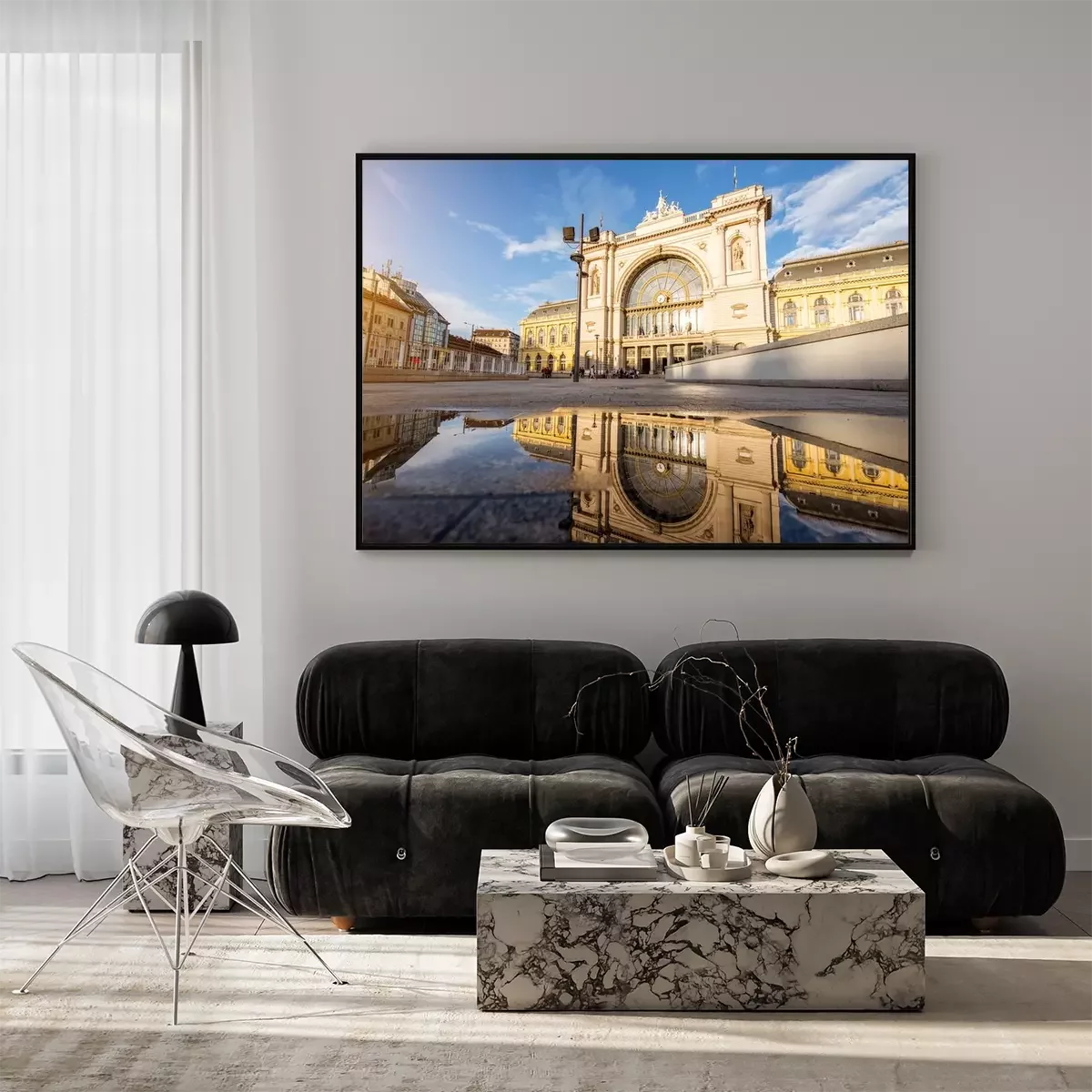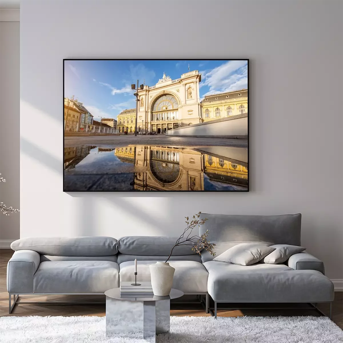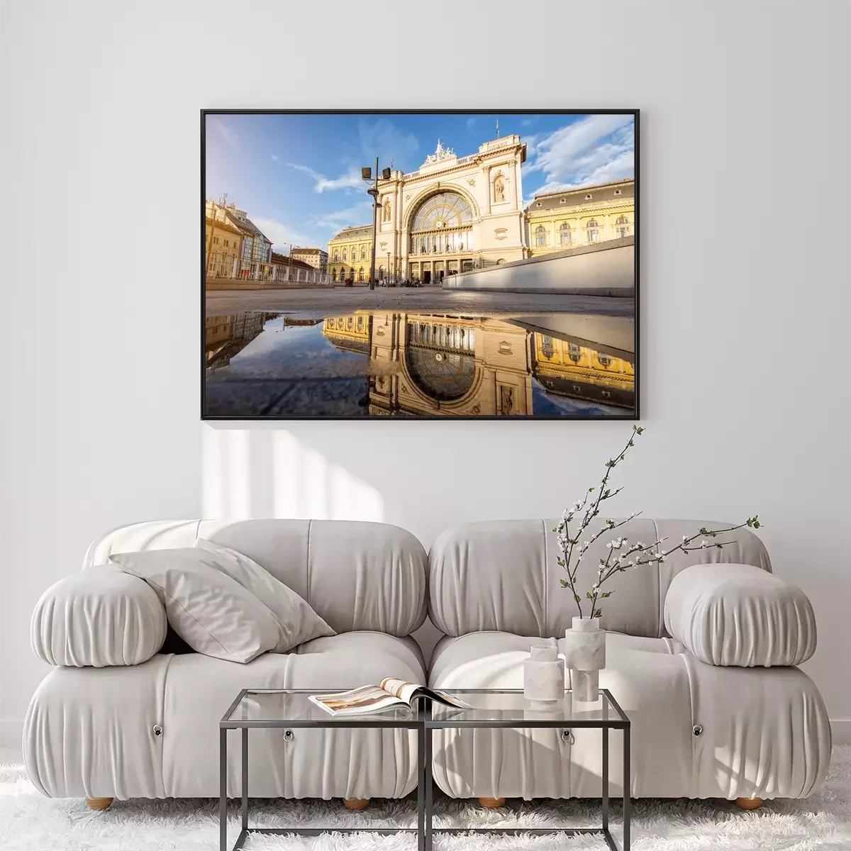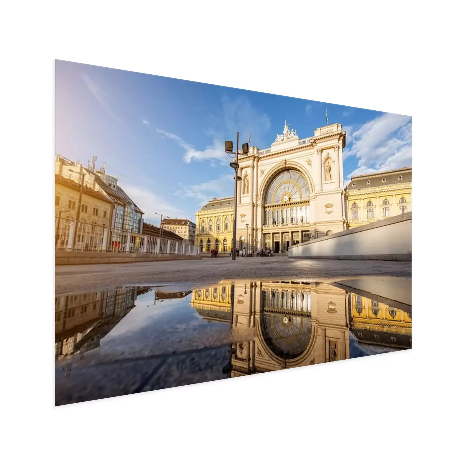 Poster: Blick auf den sonnigen Eingang des Bahnhofs in Budapest