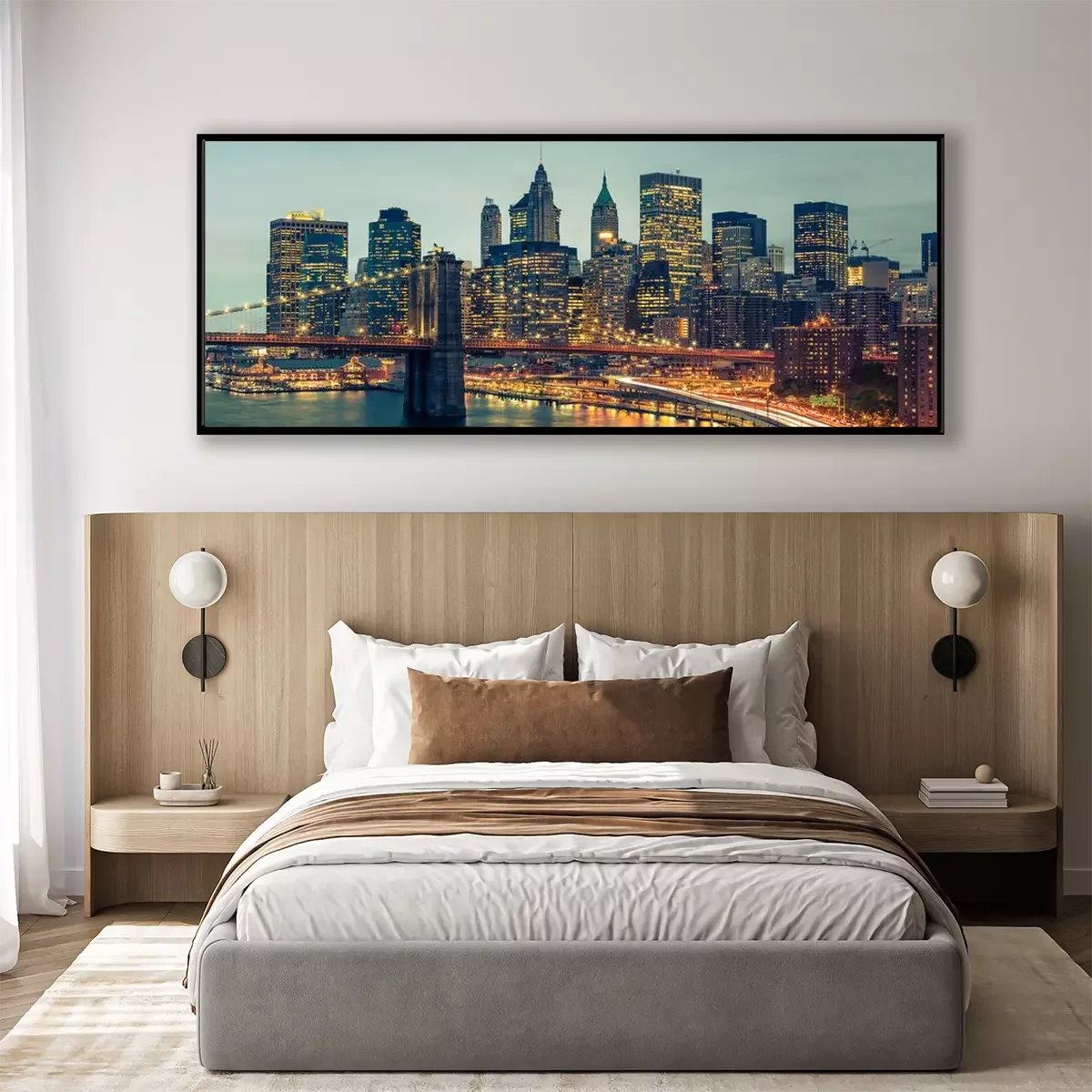 Nachtpanorama von New York mit der Brooklyn Bridge