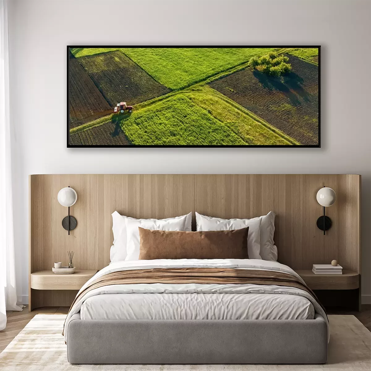 Poster: Blick aus der Vogelperspektive auf das Feld und den Traktor