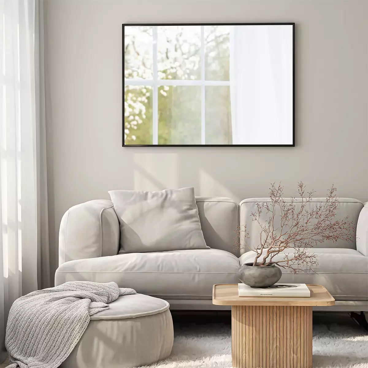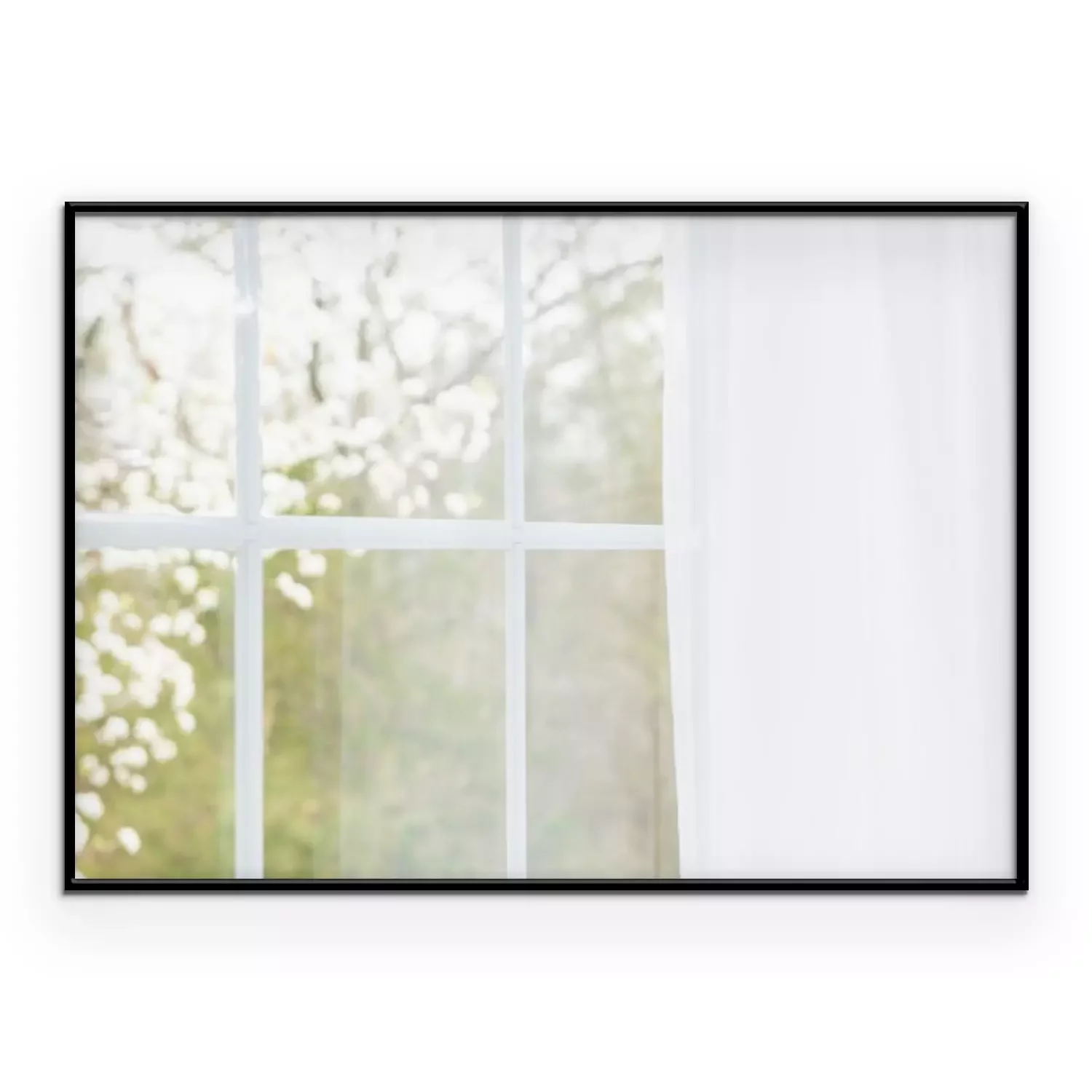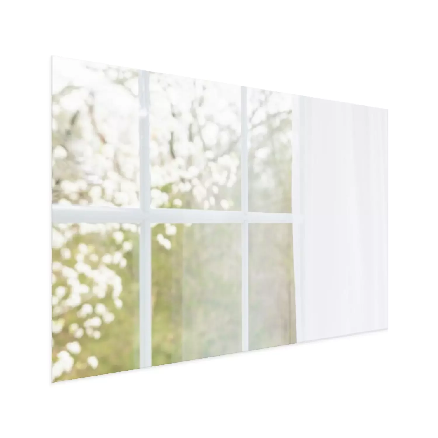 Poster: Blick aus einem mit einem Vorhang bedeckten Fenster