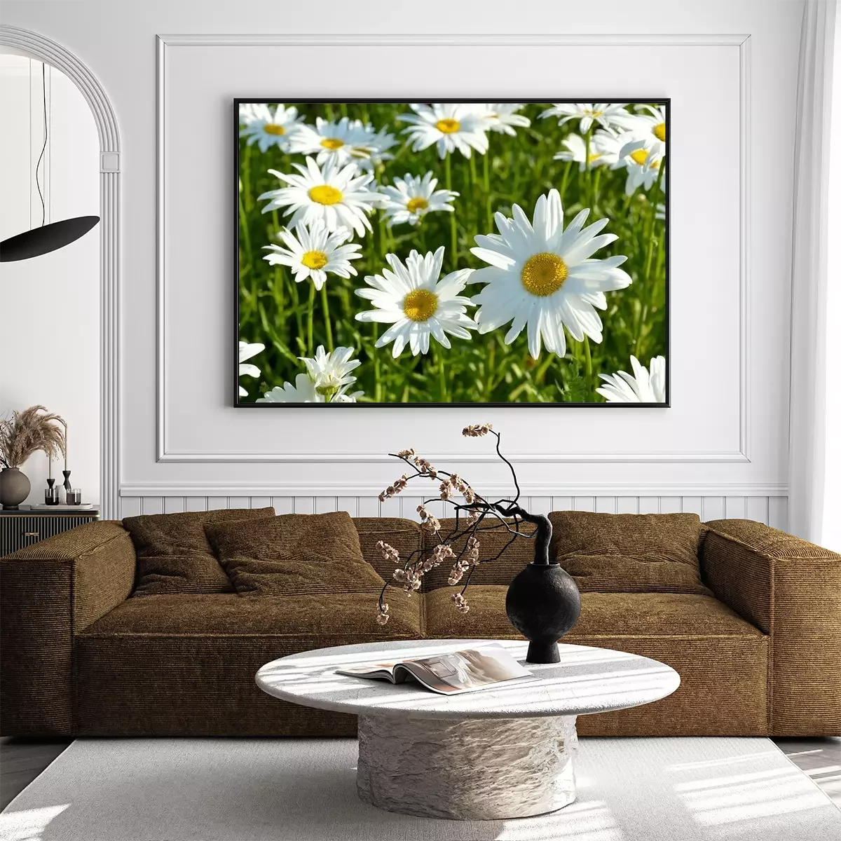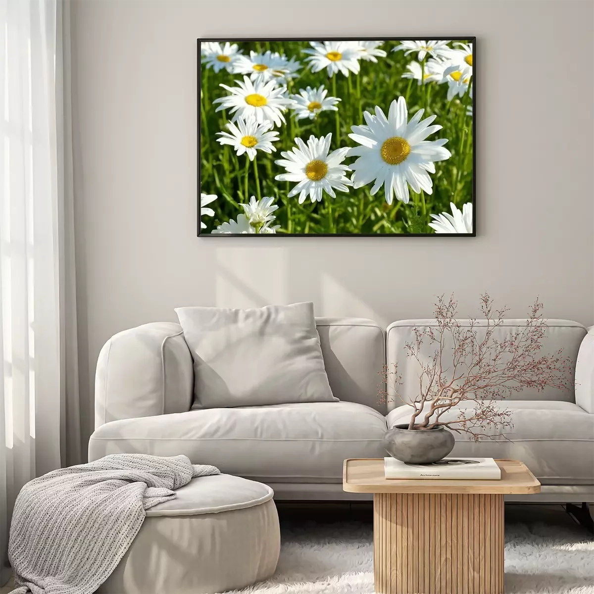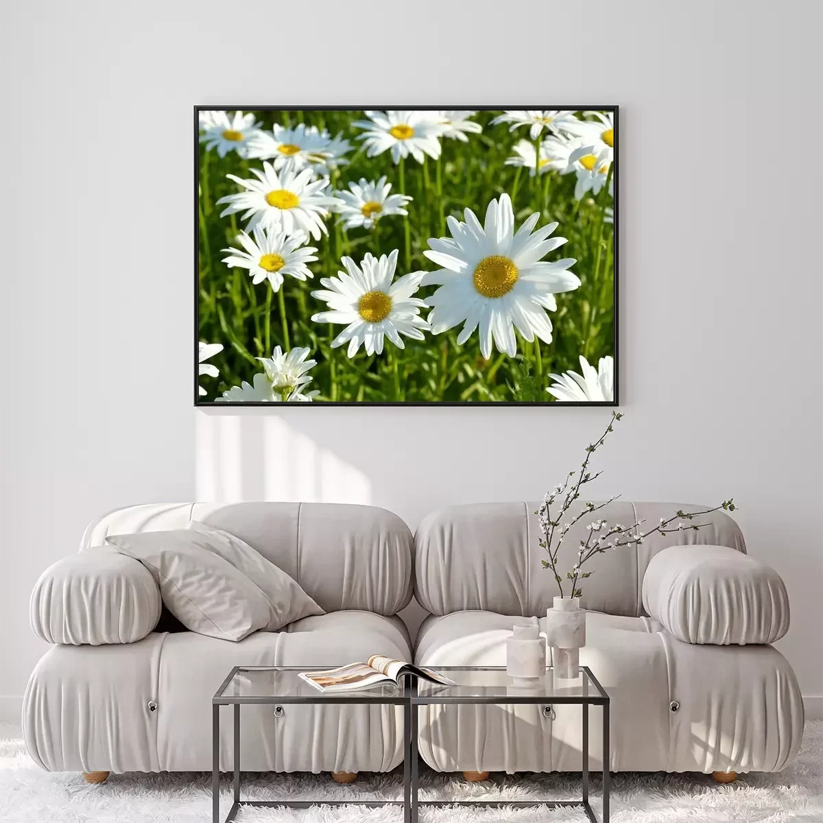 Poster Blühende Gänseblümchen in Strahlen des Sommers helle Sonne