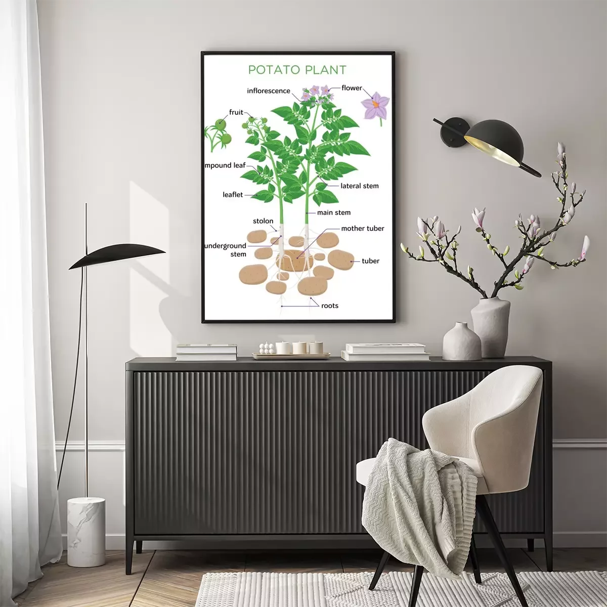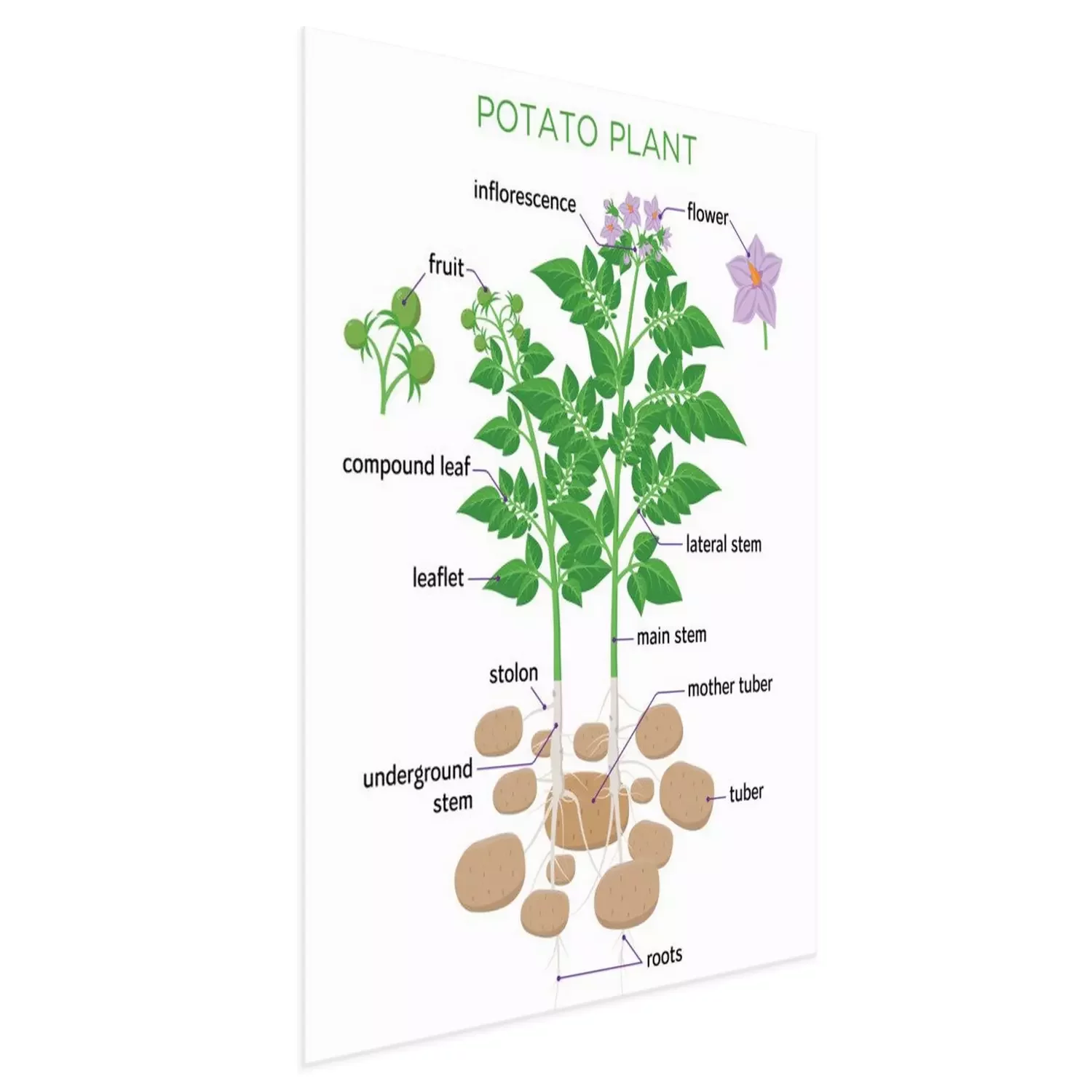 Poster Blühende Kartoffel mit Beschreibung des Pflanzenaufbaus