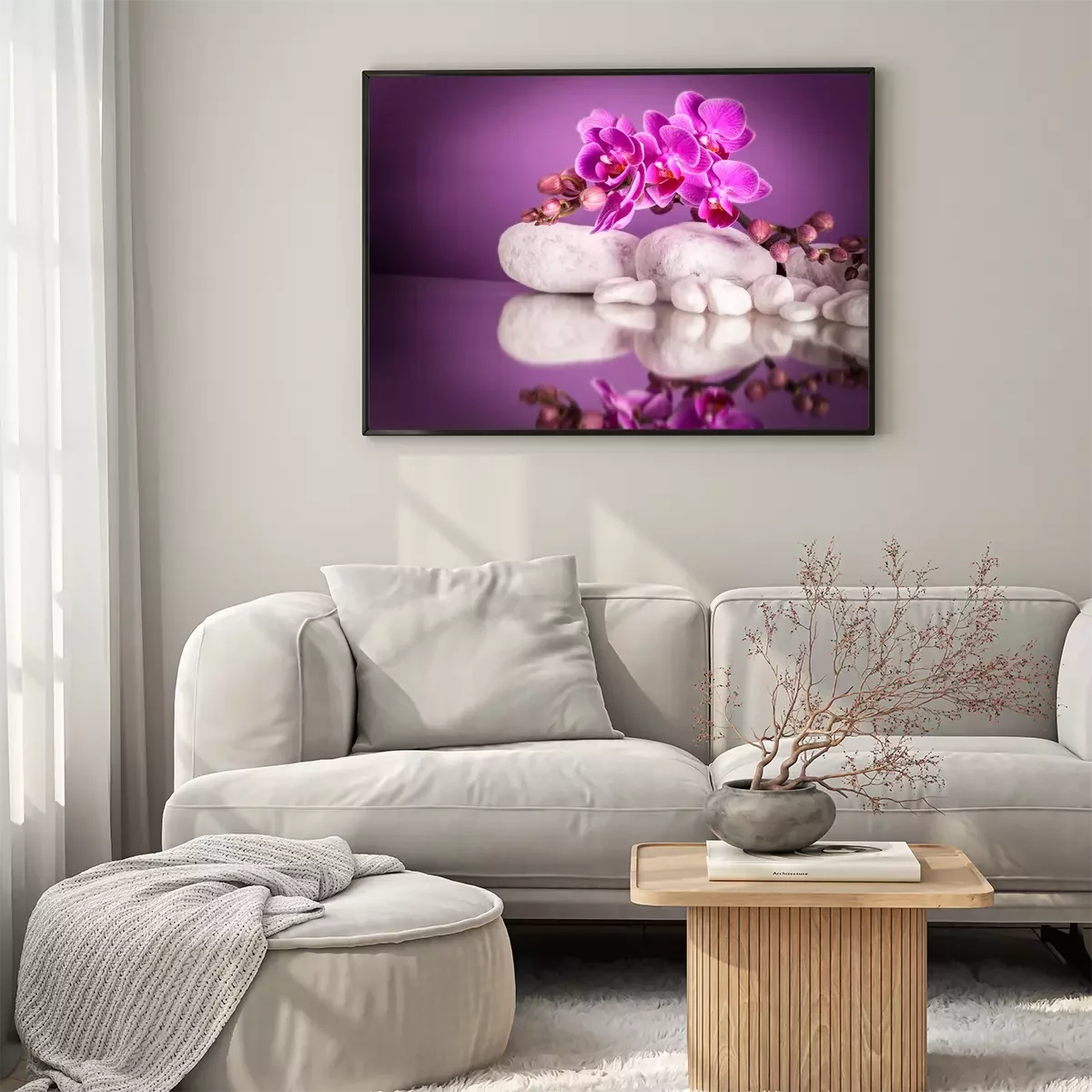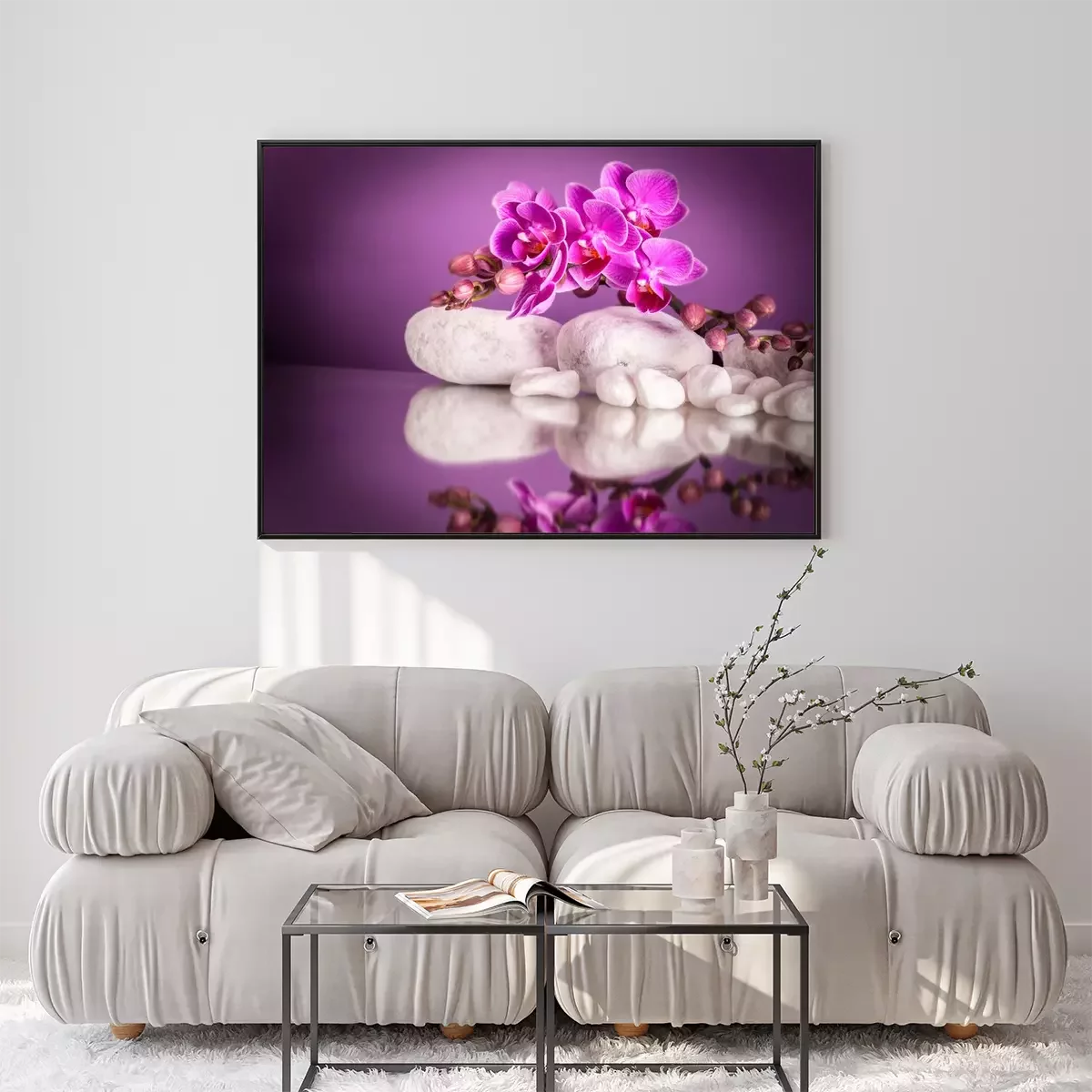 Poster Blumen rosa bedecken weiße Steine