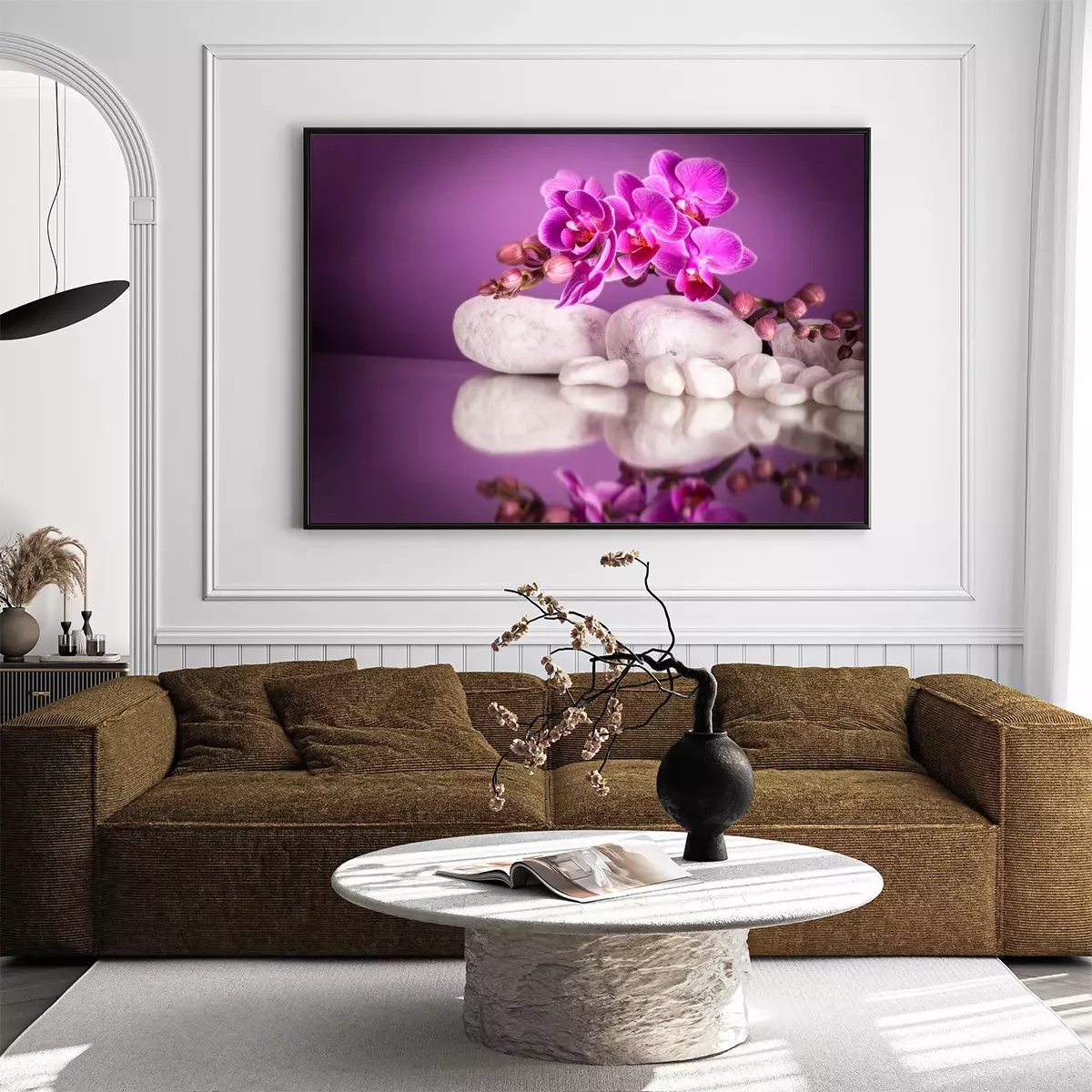 Orchidee und Steine in weißer Farbe