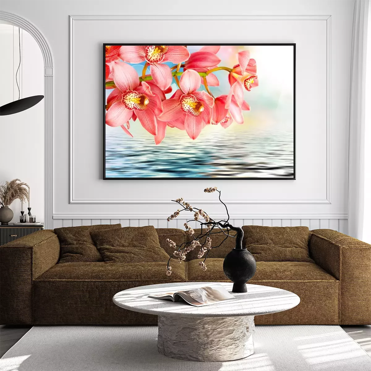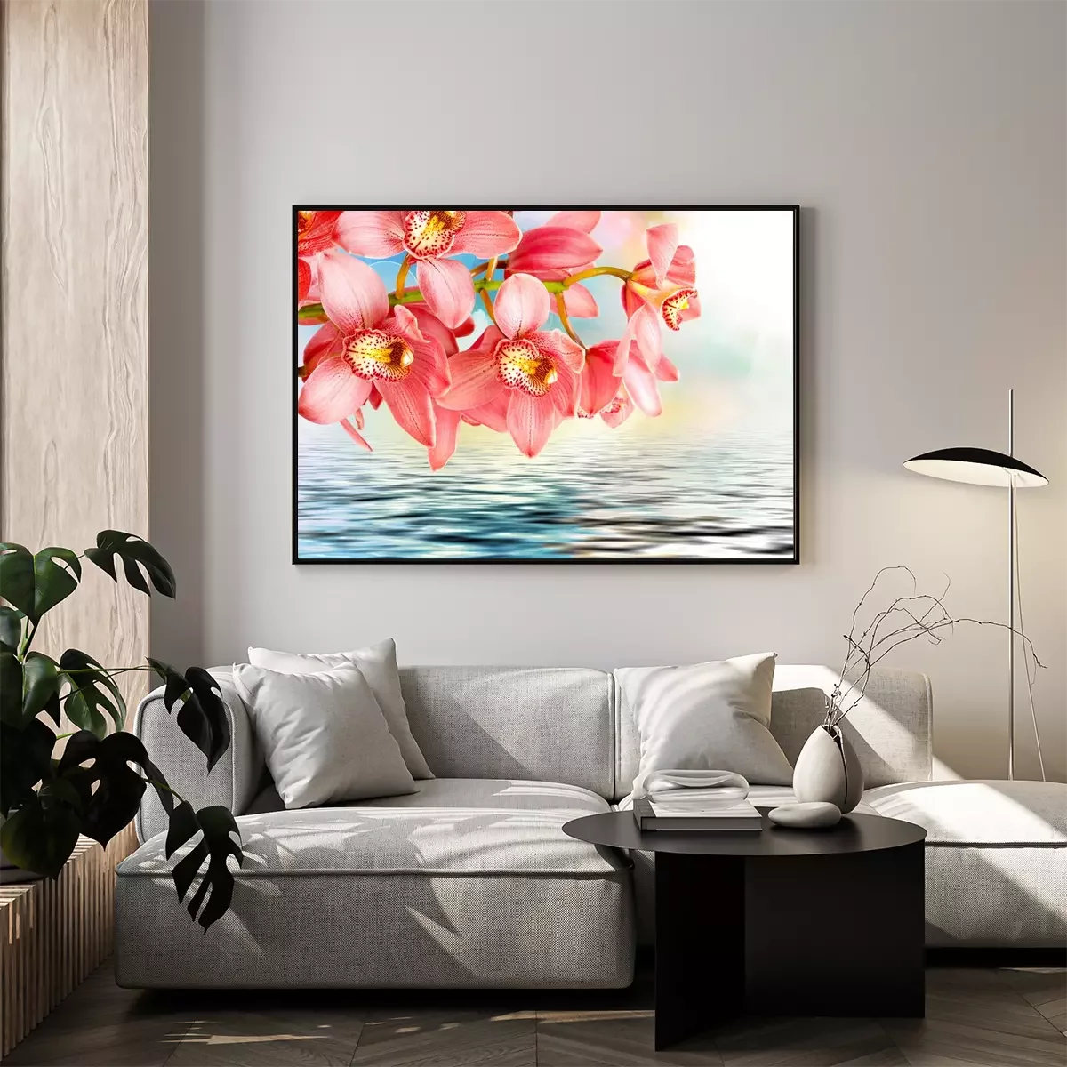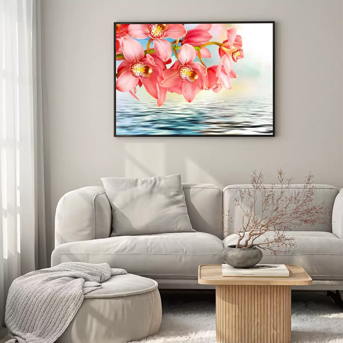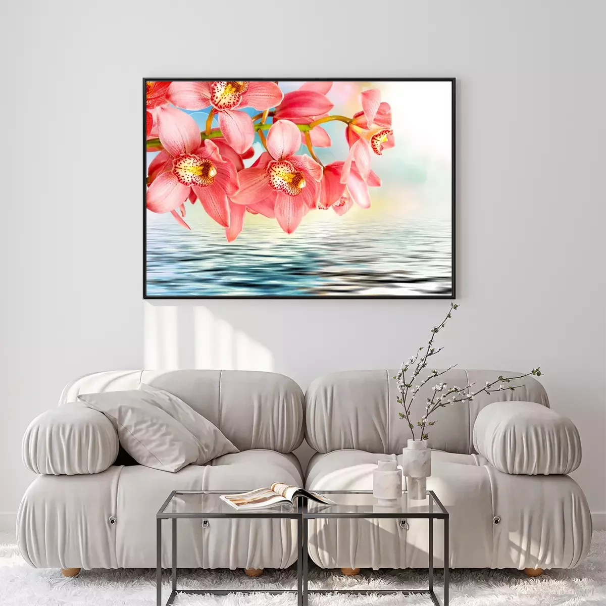 Poster: Blumen rosa fallen über der Wasseroberfläche