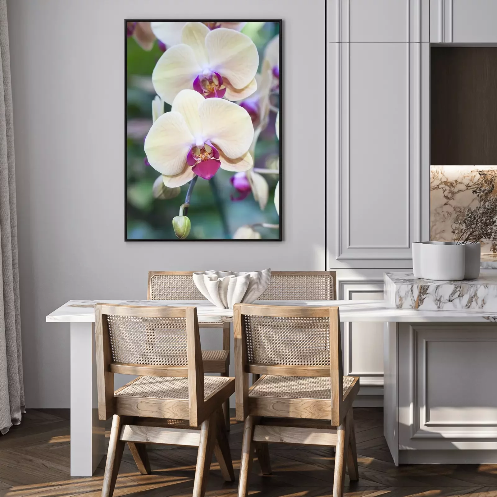 Poster Blumen weiß mit fuchsienfarbenem Innere