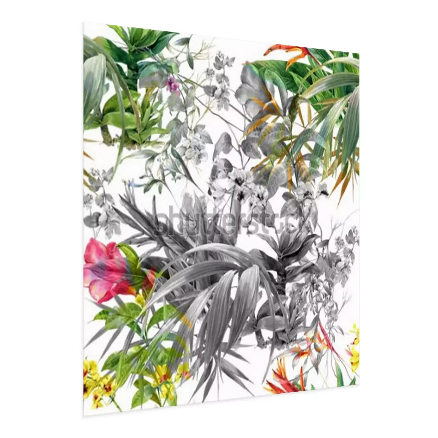 Poster: Blumenstrauß aus Palmen und Blumen in Farbe und Grau