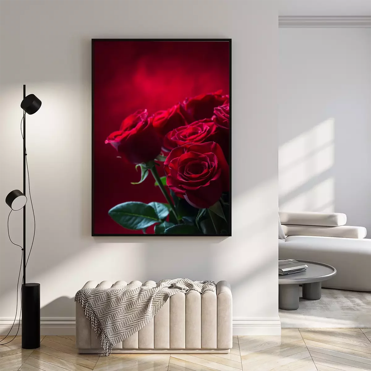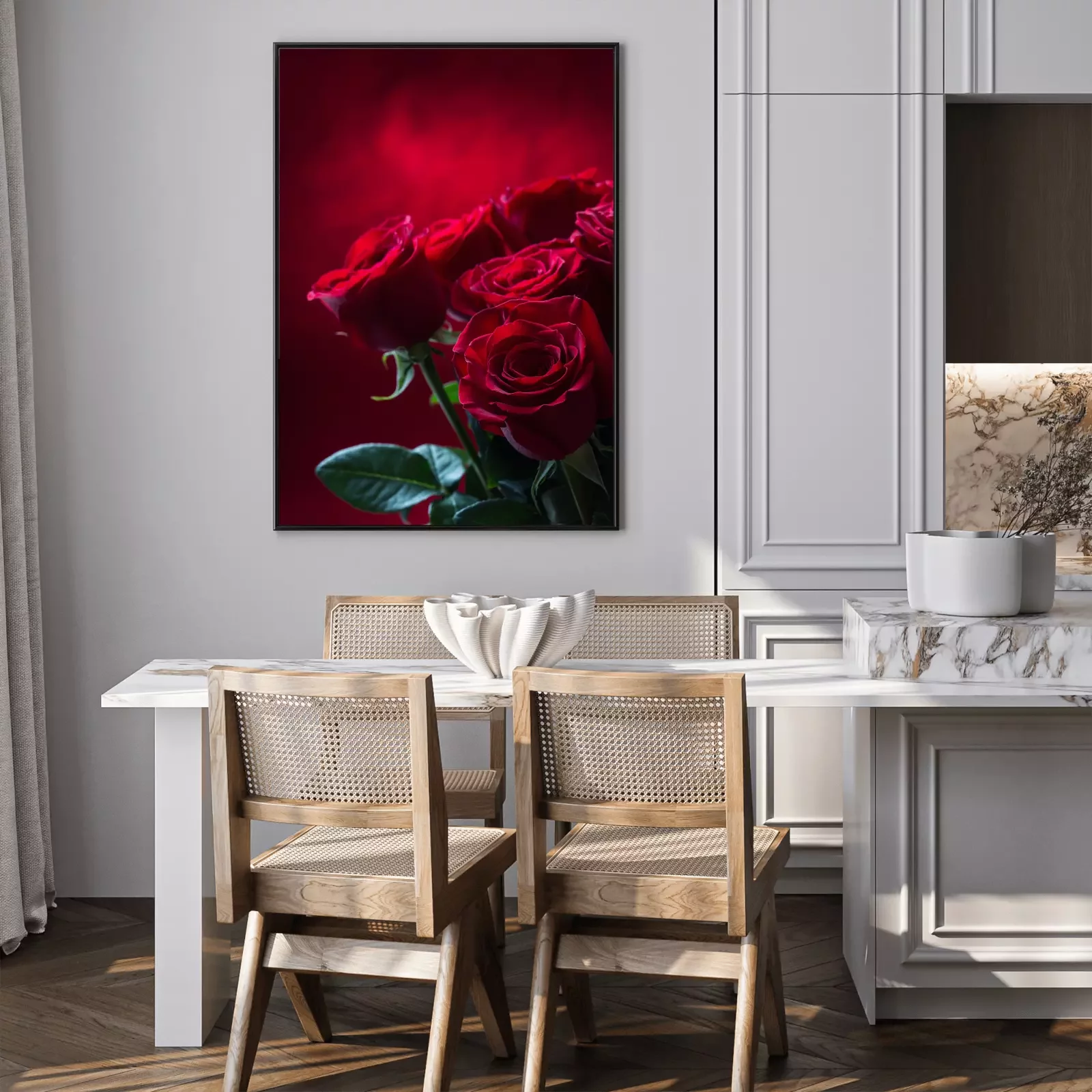Poster: Blumenstrauß burgundrote Kulisse