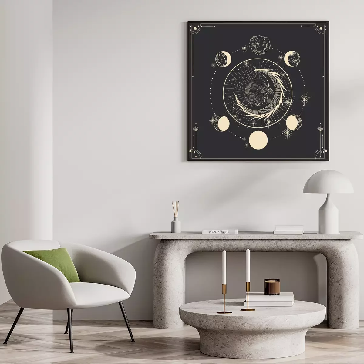Schwarz-weiße Zeichnung dekorative Mondphasengrafik