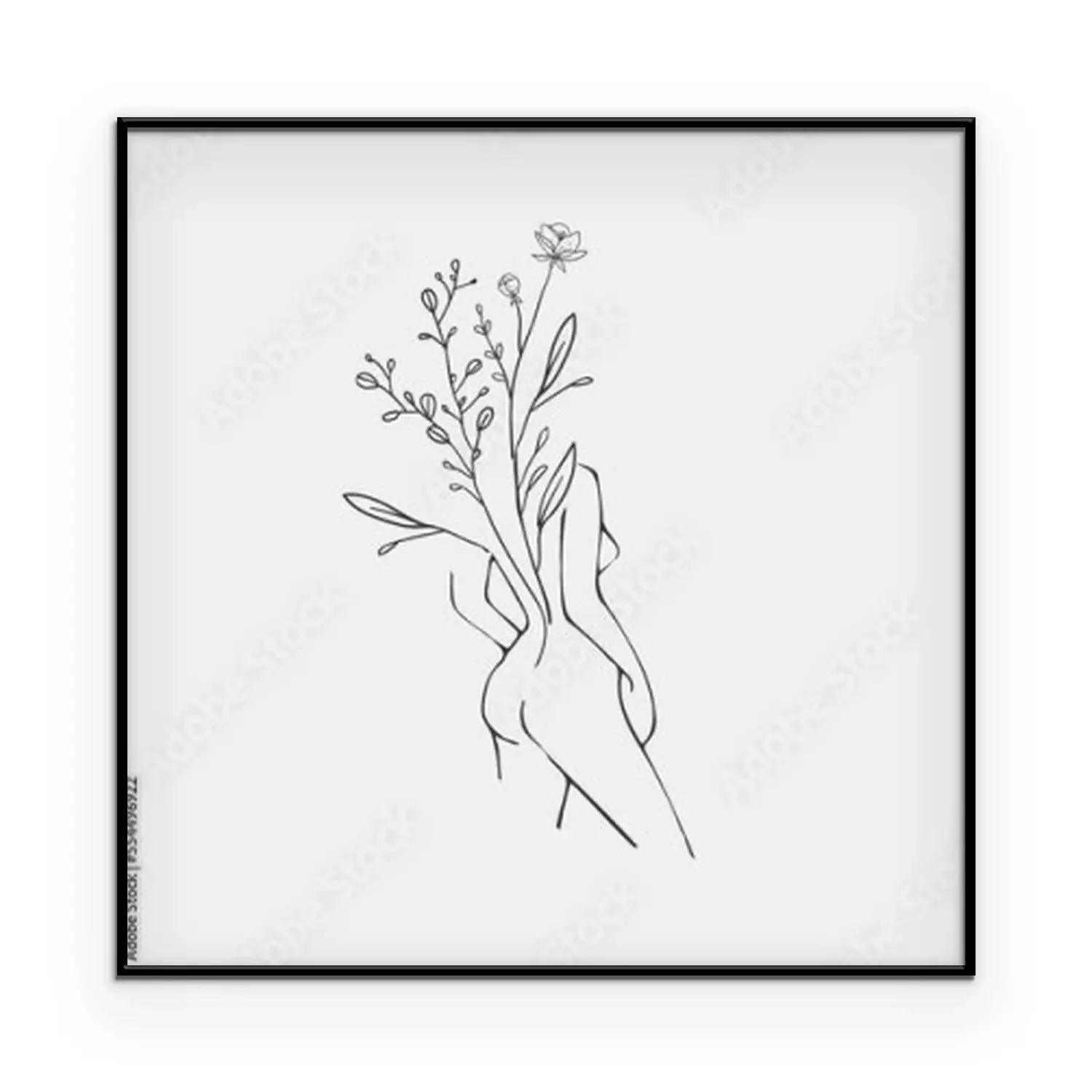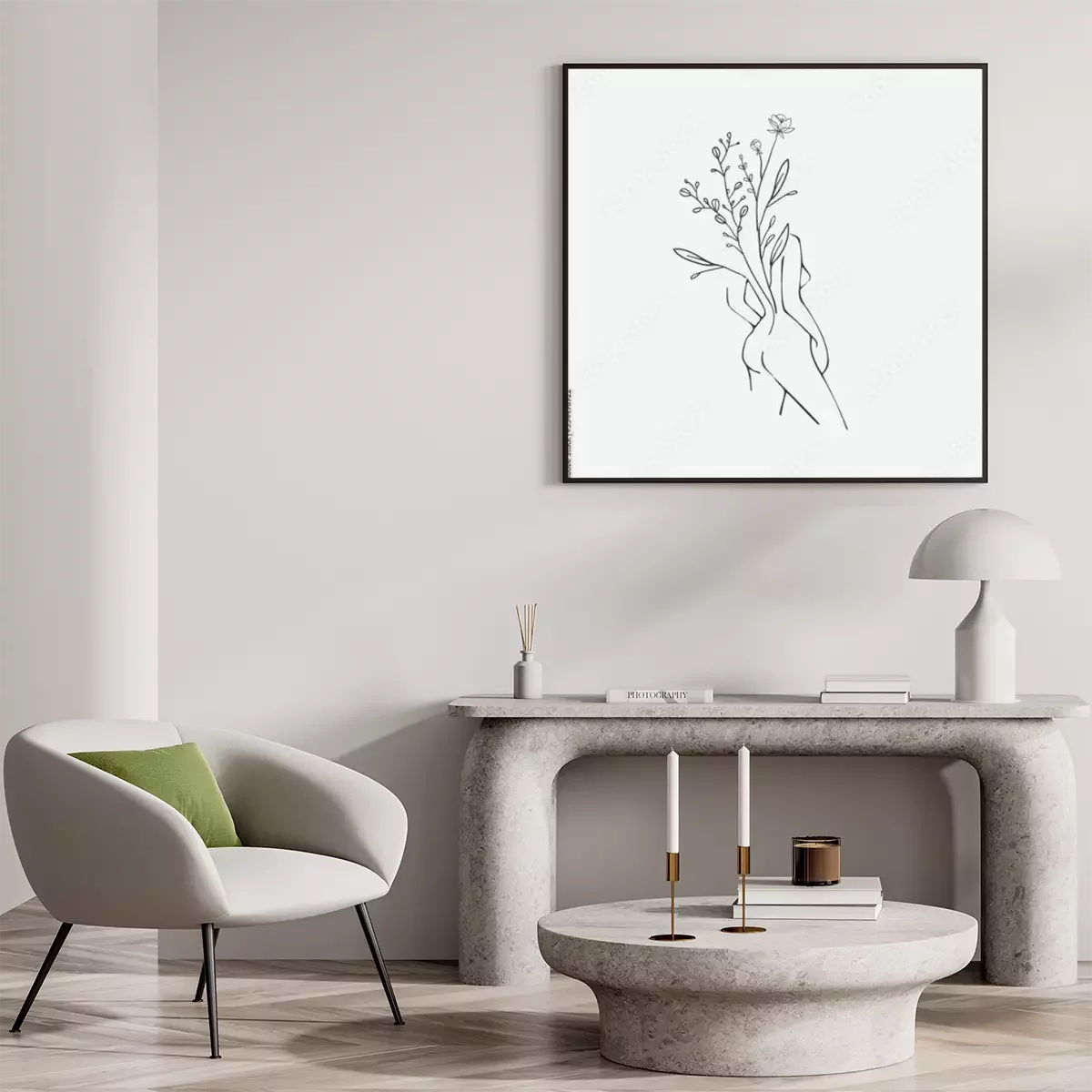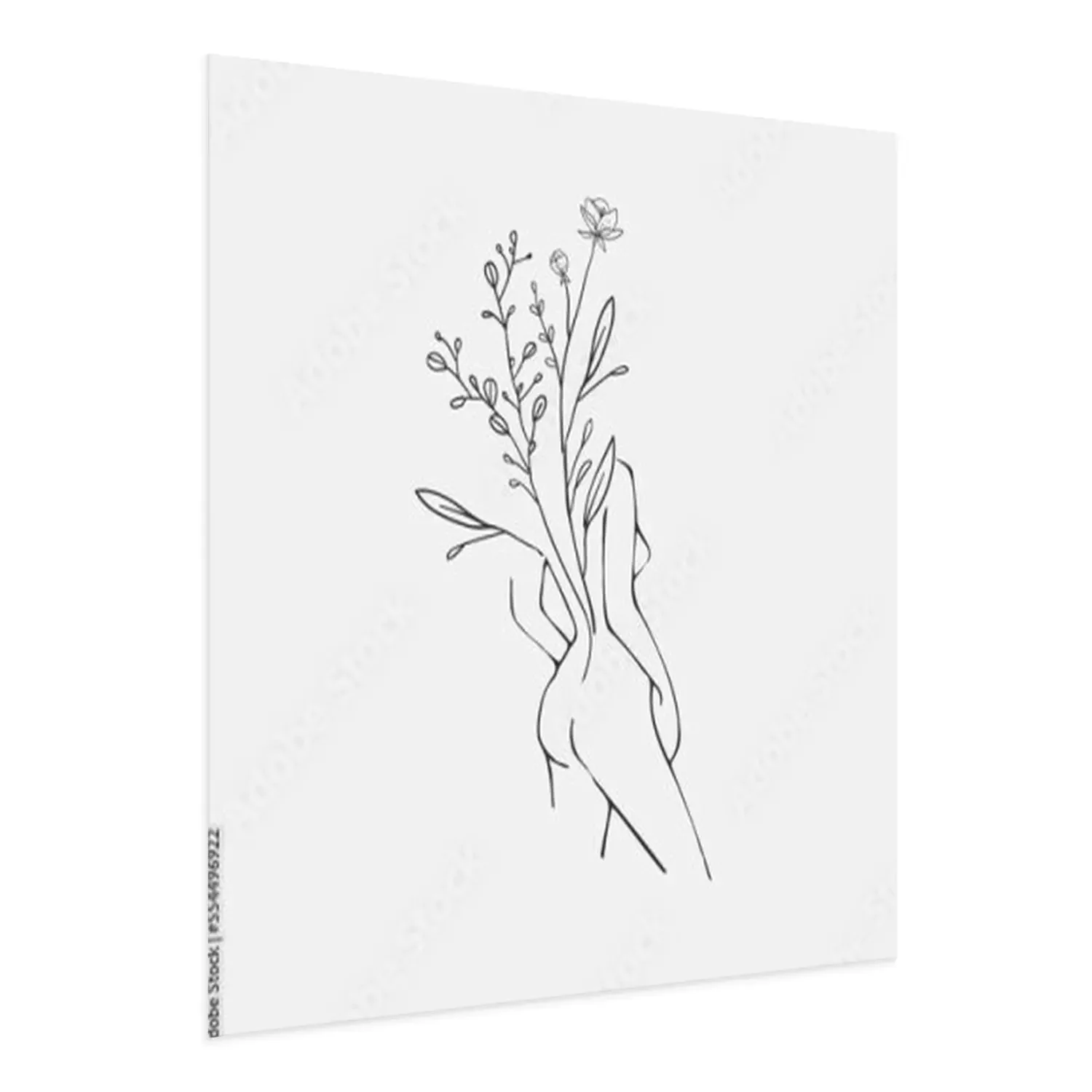 Poster: Boho-Minimalismus-Frauenschattenbild mit Blumen
