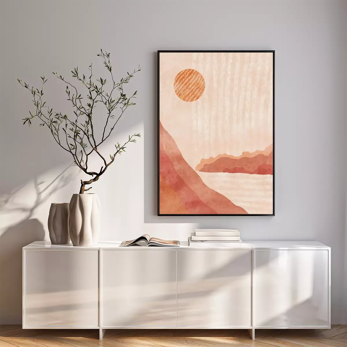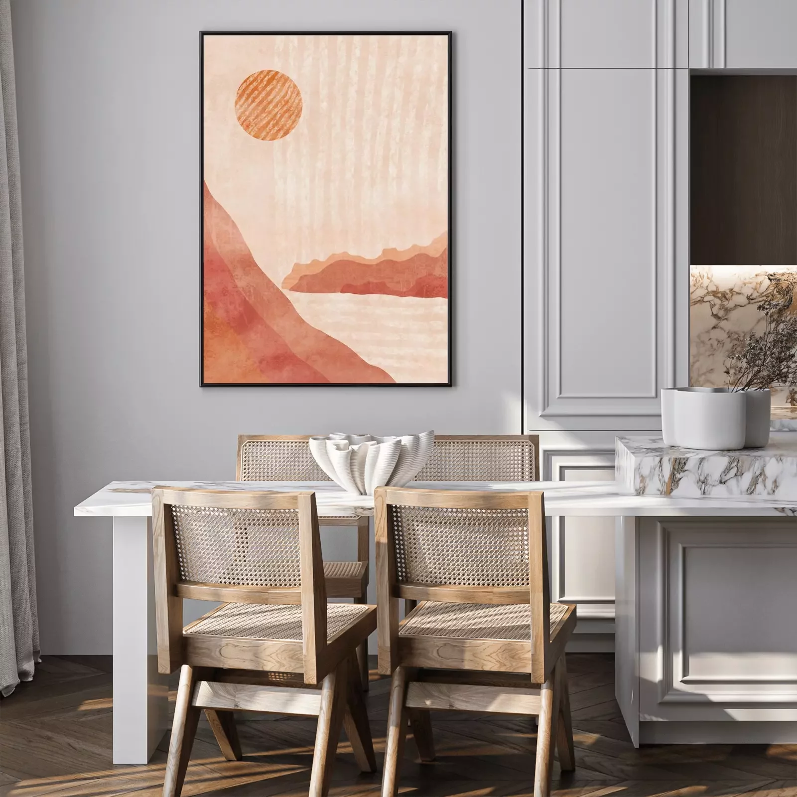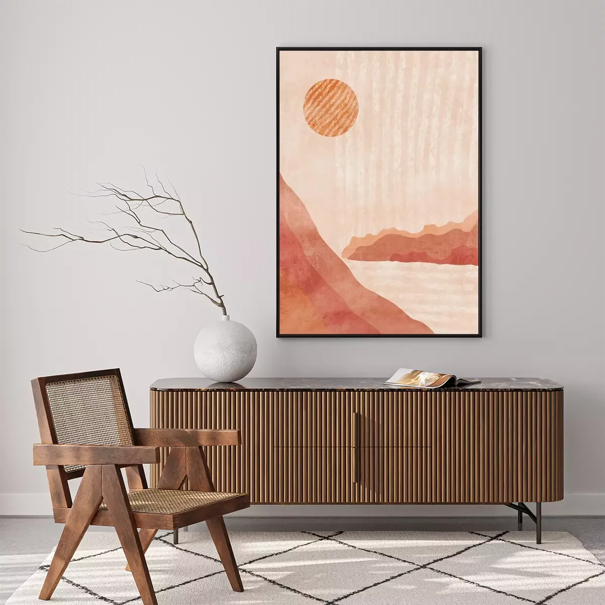 Poster: Boho Print. Abstract Clifs with Sea Background. Terracotta Poster. Abstract Arrangements. Landscapes, mountains. Posters. Terracotta, blush, pink, ivory, beige watercolor Modern print set. Wall art