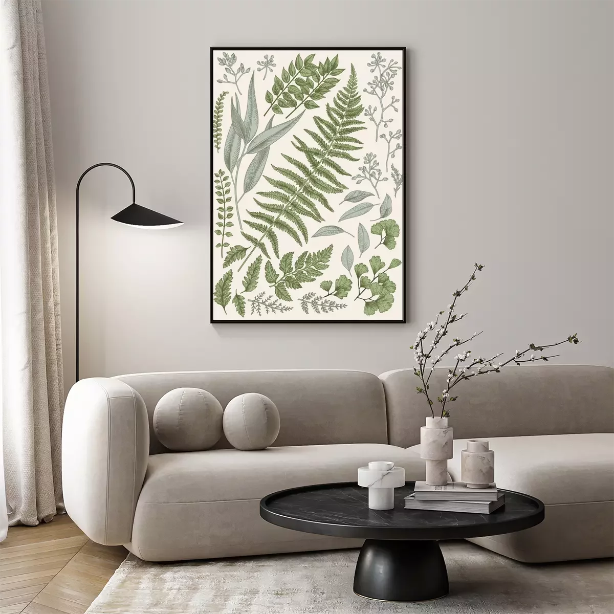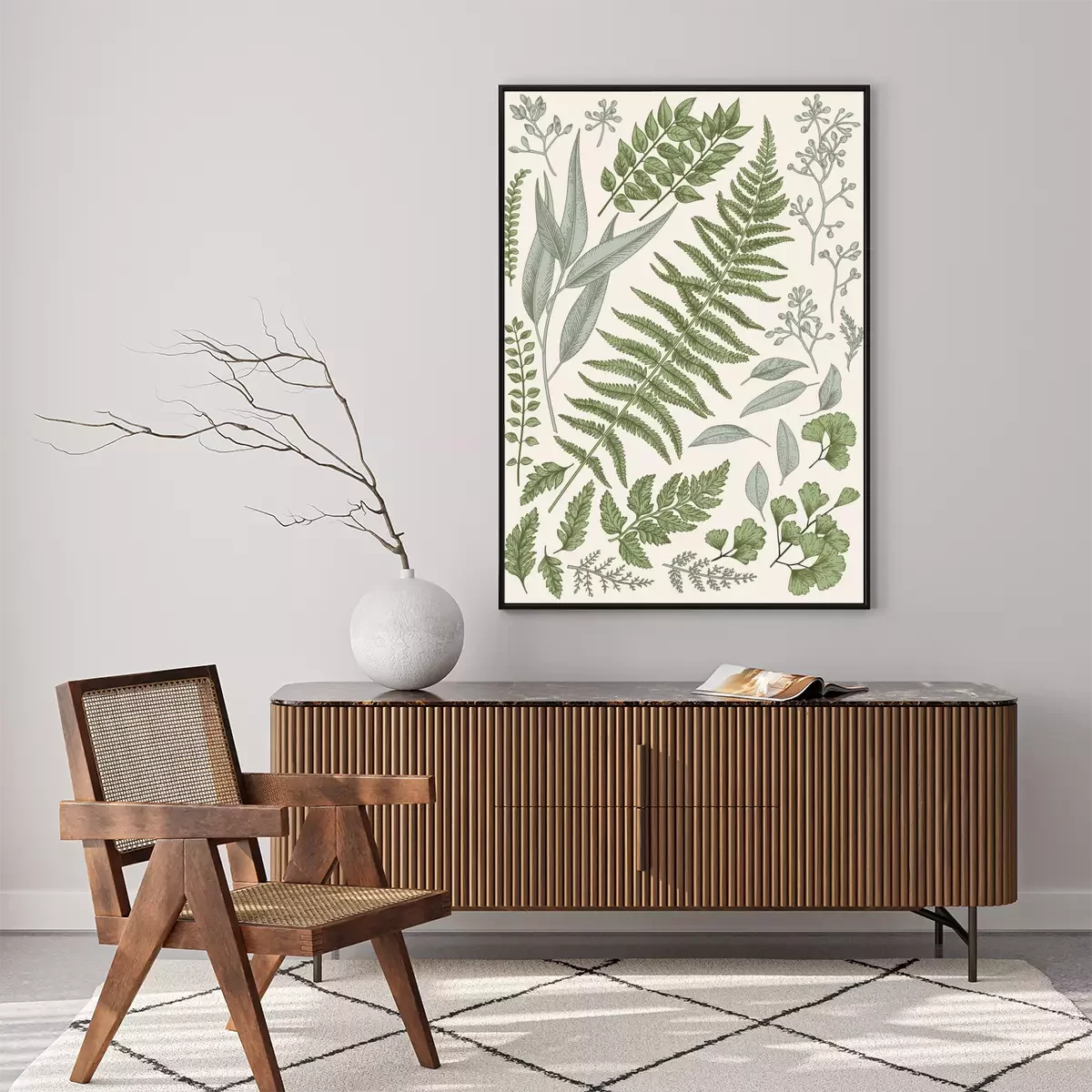 Schwarz-weiße Blätter im Scandi-Stil