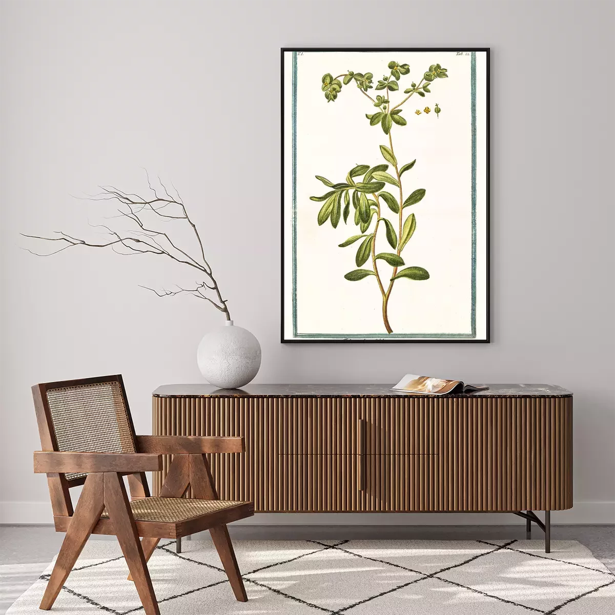 Poster: Botanische Grafik mit Wolfsmilch auf hellem Hintergrund