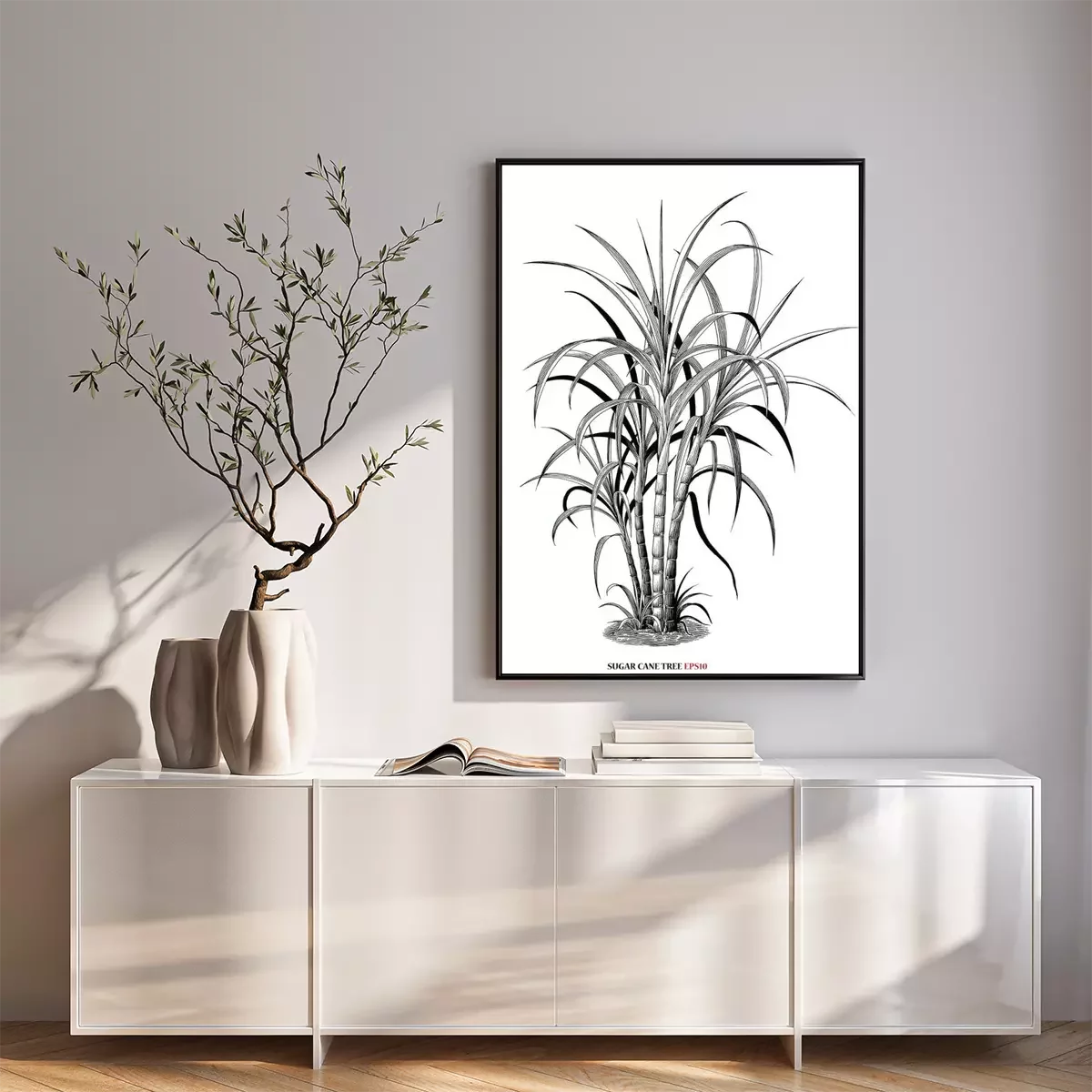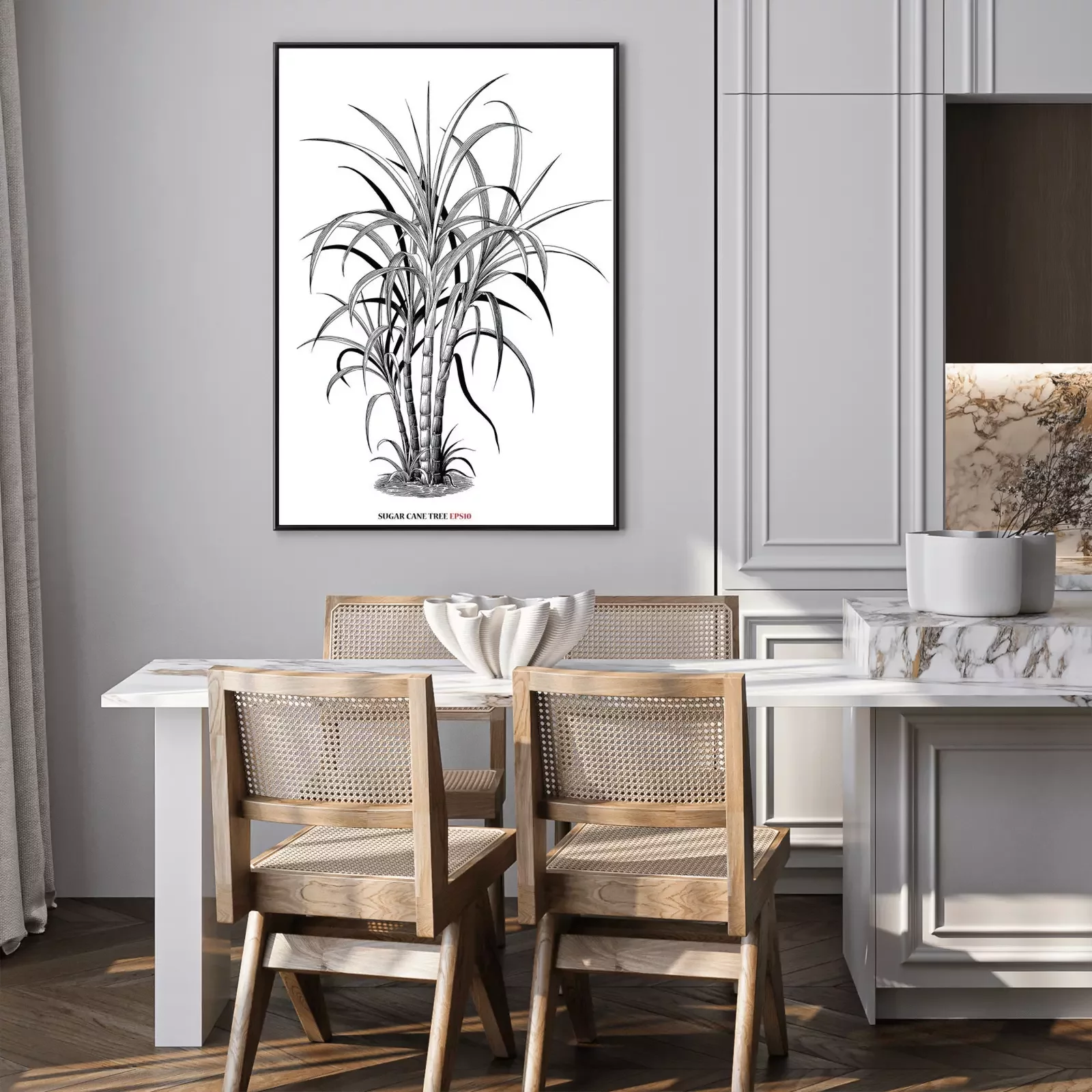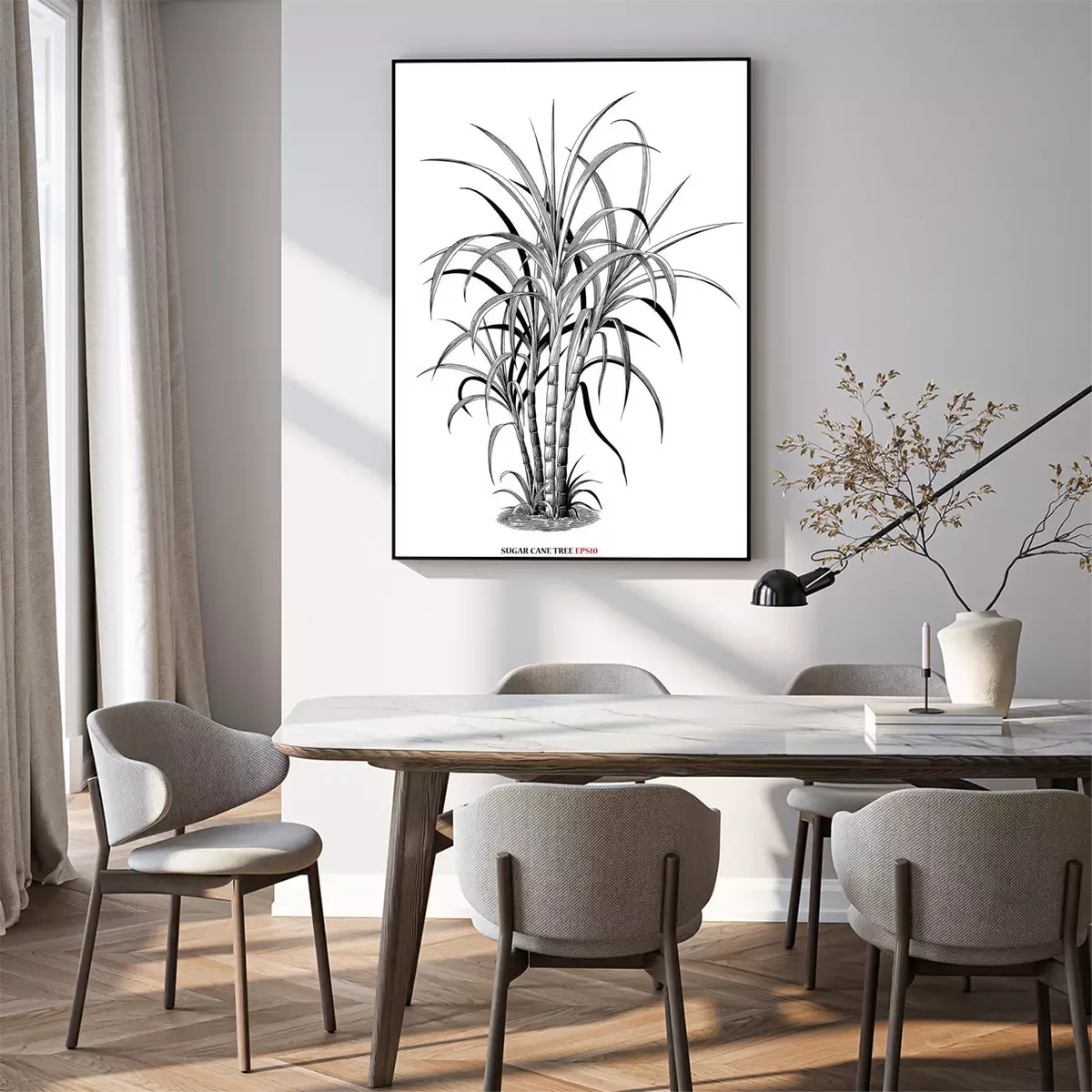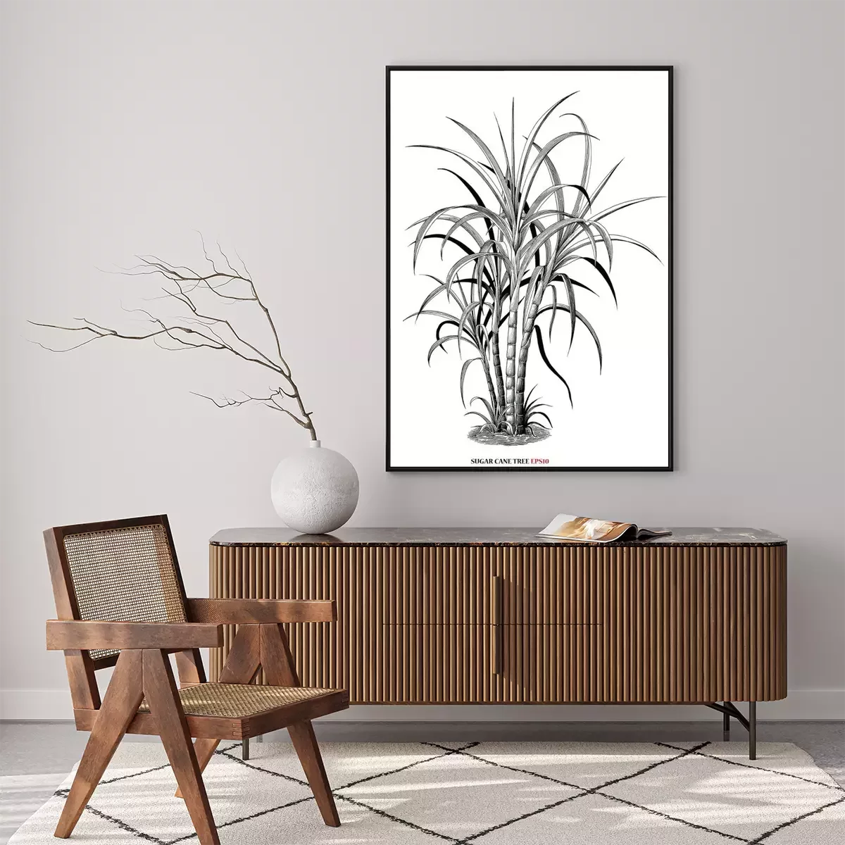 Poster: Botanische Grafik mit Zuckerrohr