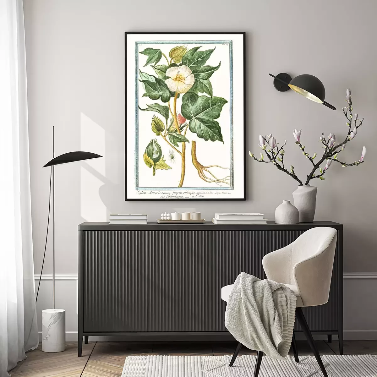 Poster Botanische Illustration einer weißen Blume mit Wurzeln