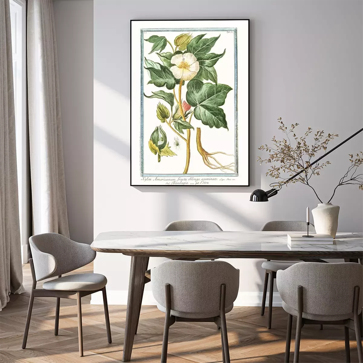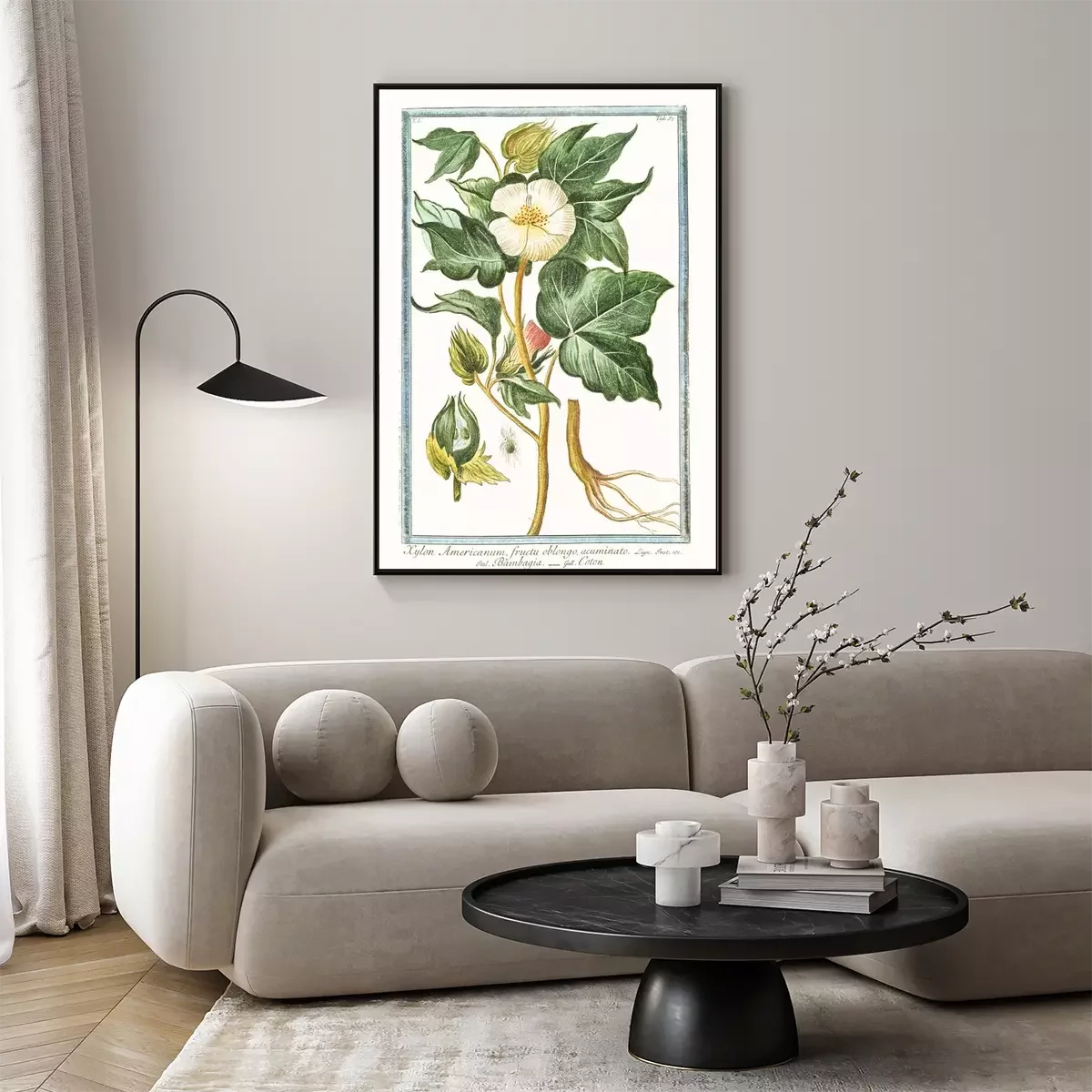 Poster: Botanische Illustration einer weißen Blume mit Wurzeln