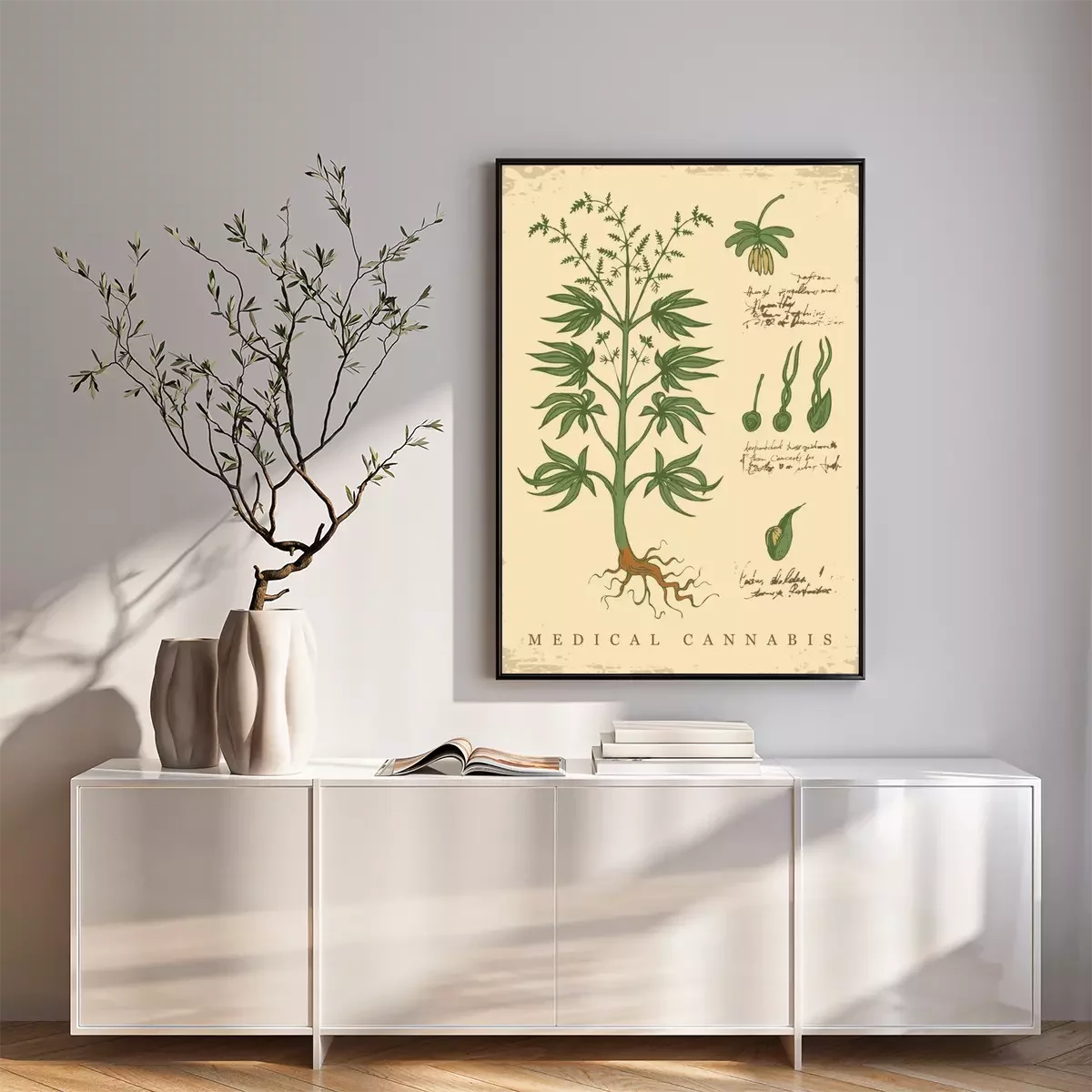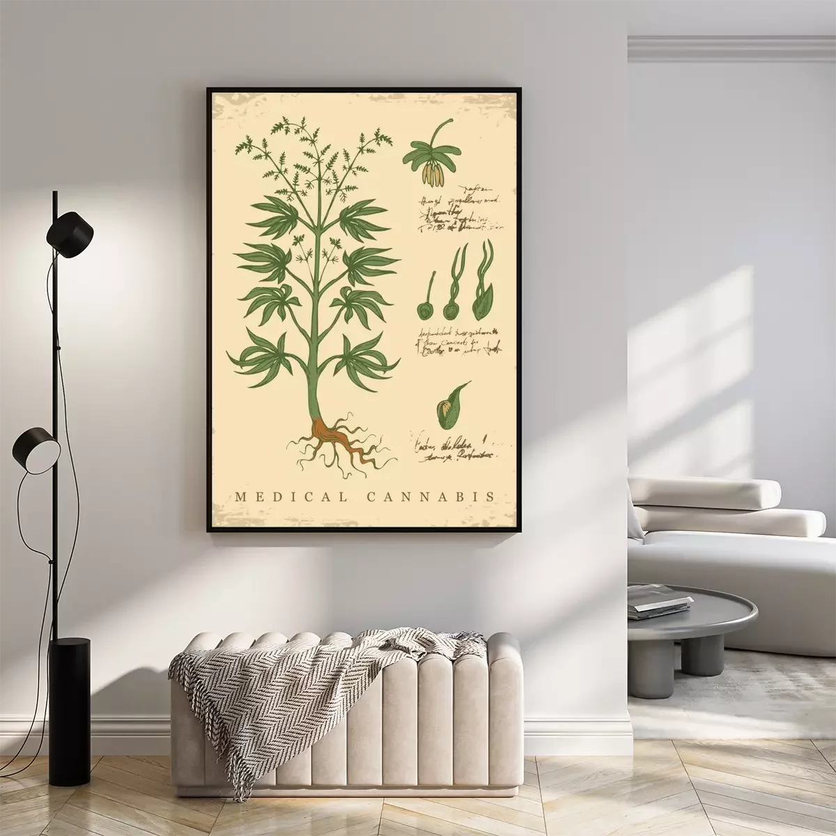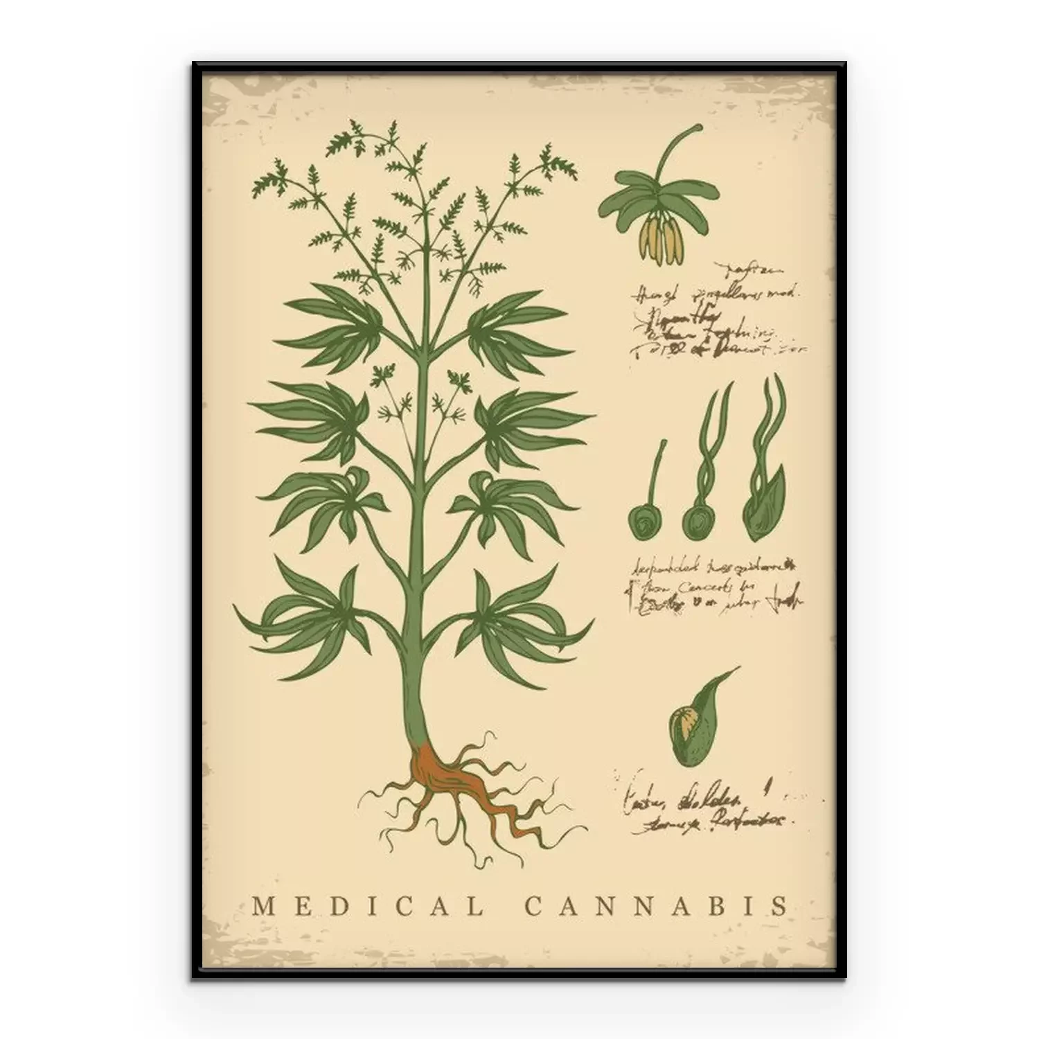 Poster: Botanische Retro-Grafik mit medizinischem Cannabis