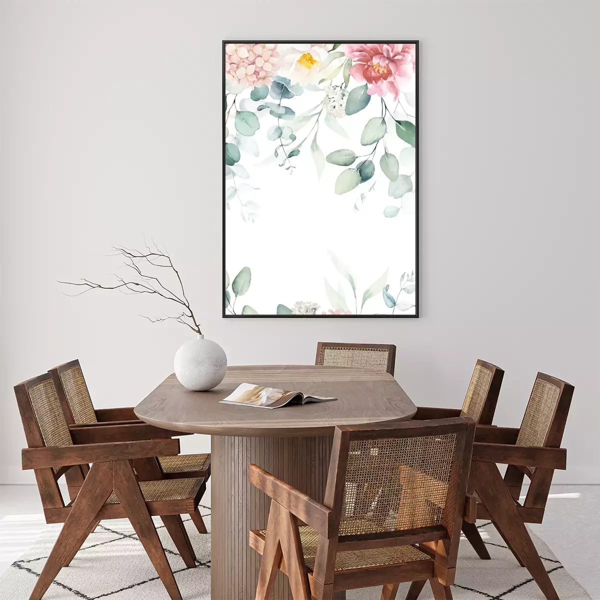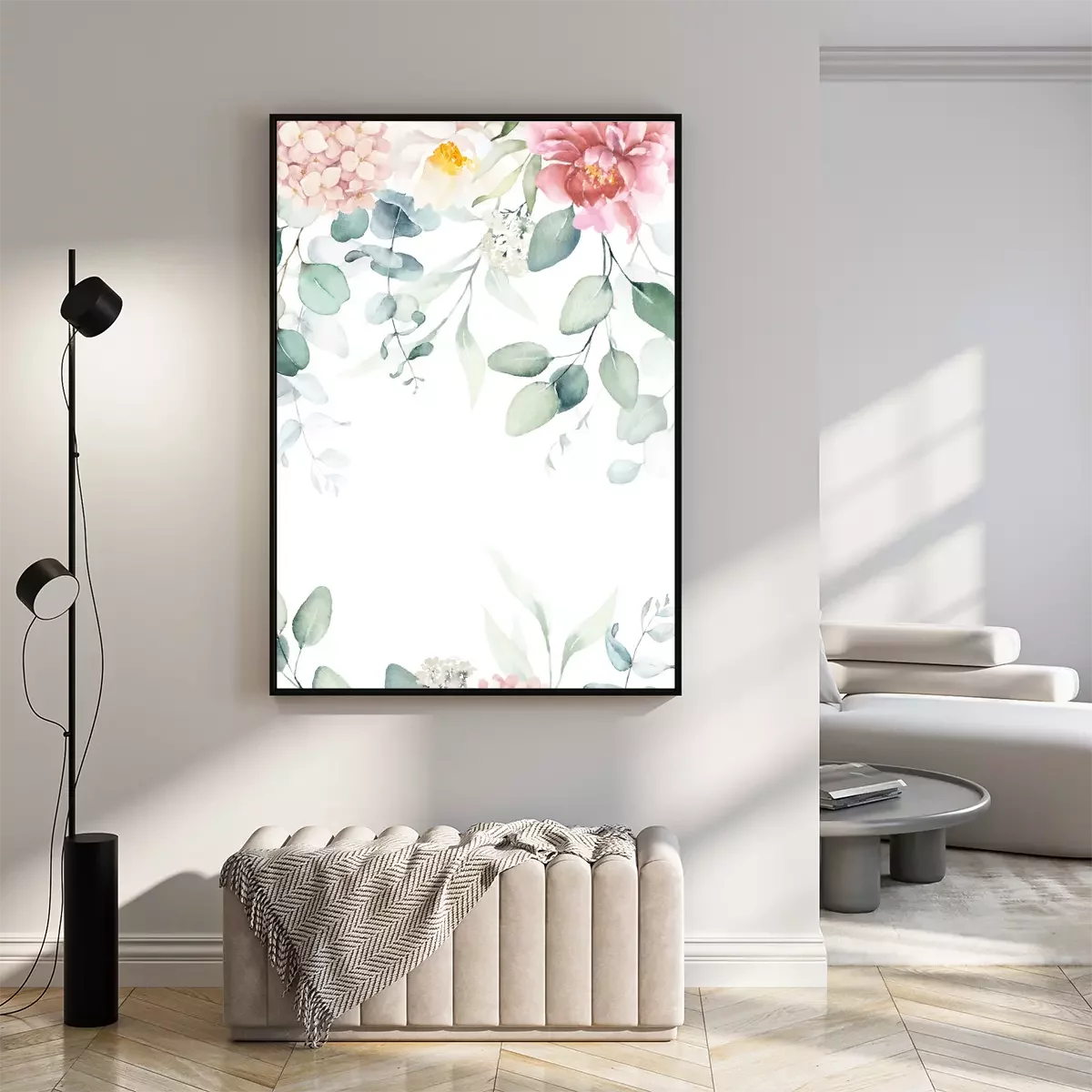 Watercolor floral illustration with green branches & leaves - frame / border, for wedding stationary, greetings, wallpapers, fashion, background. Eucalyptus, olive, green leaves, etc.