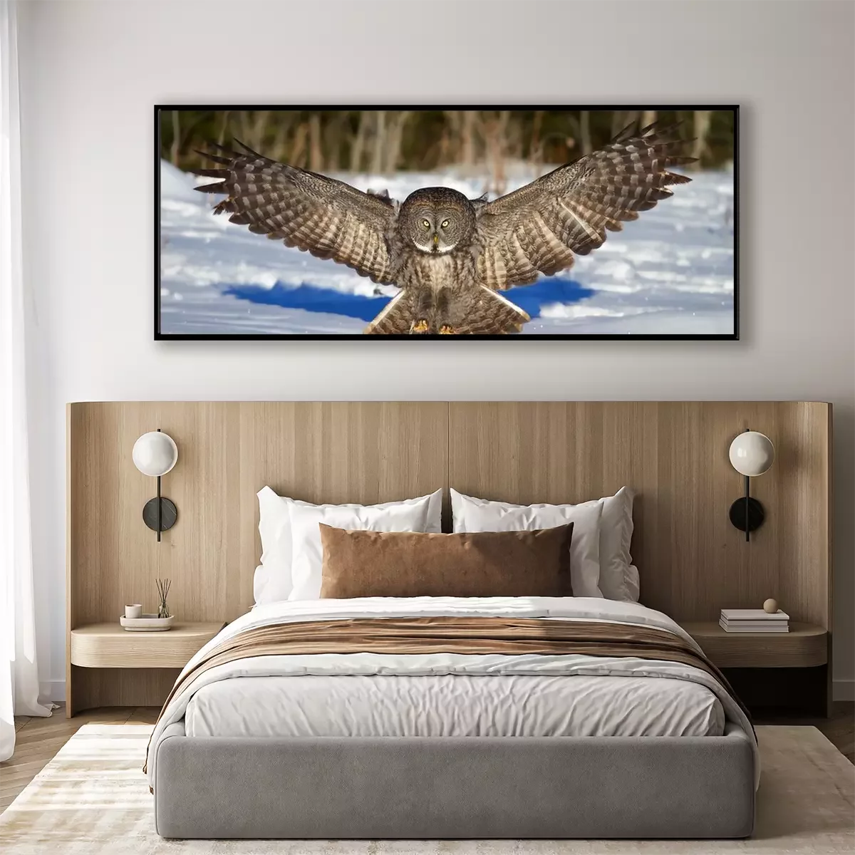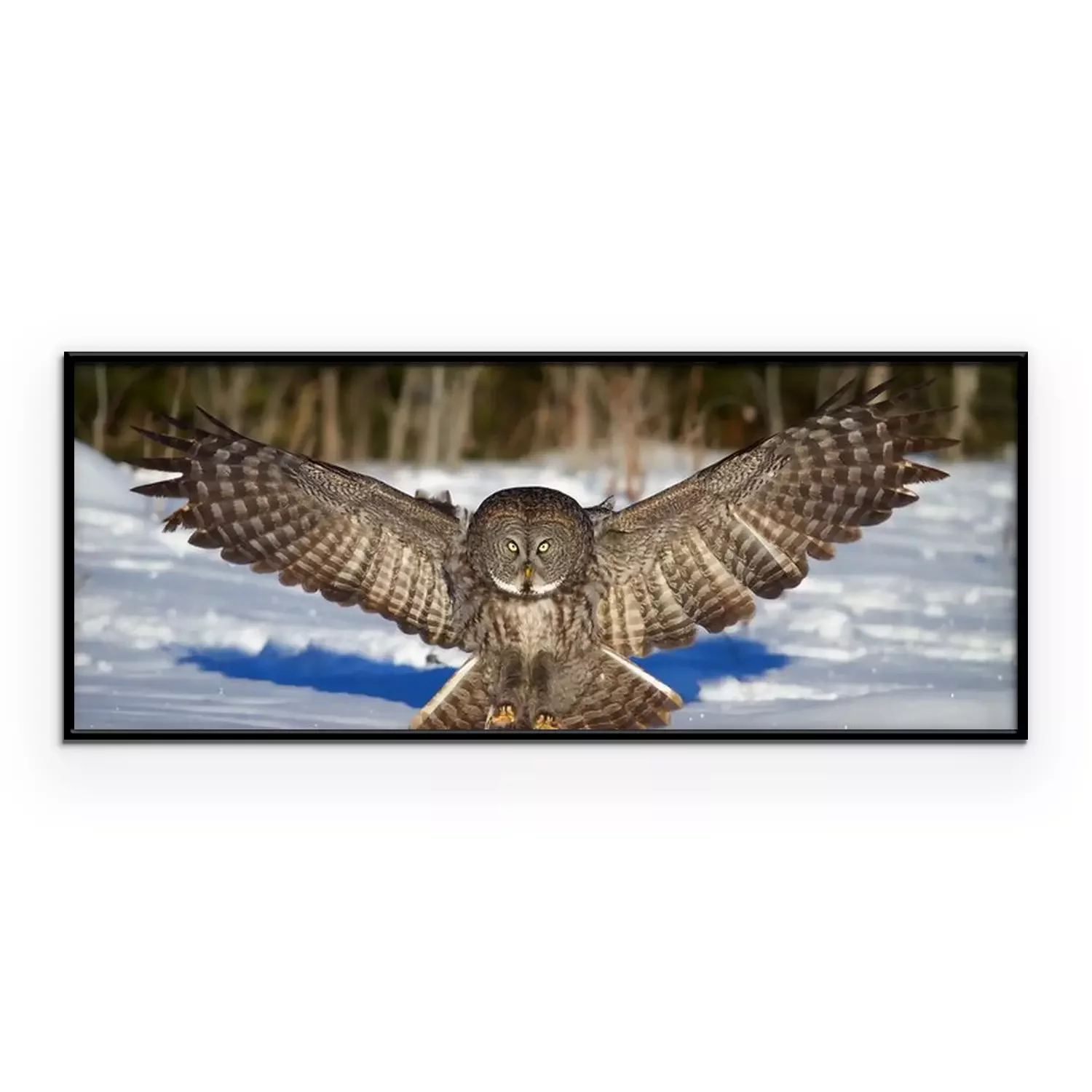 Winterlandschaft mit einer fliegenden Eule