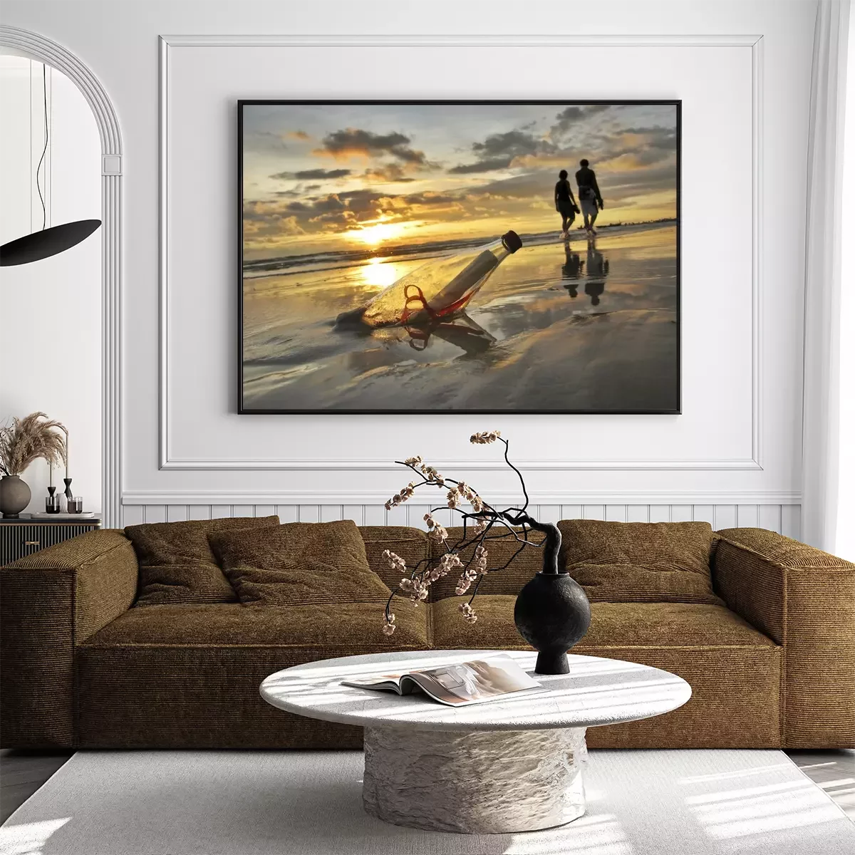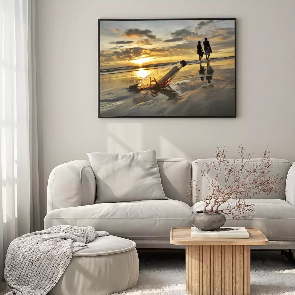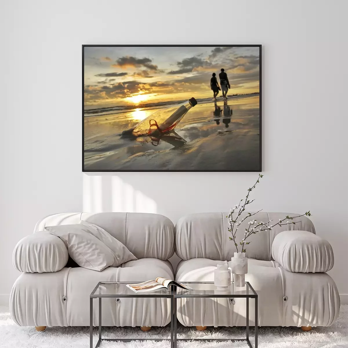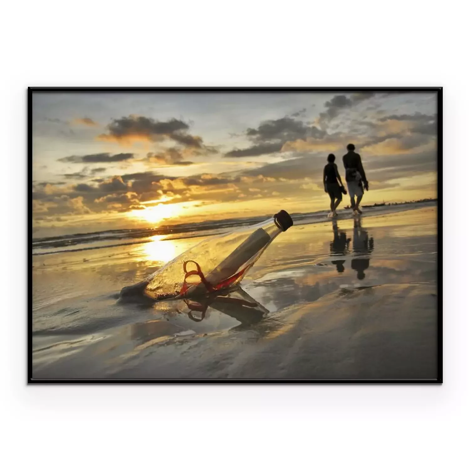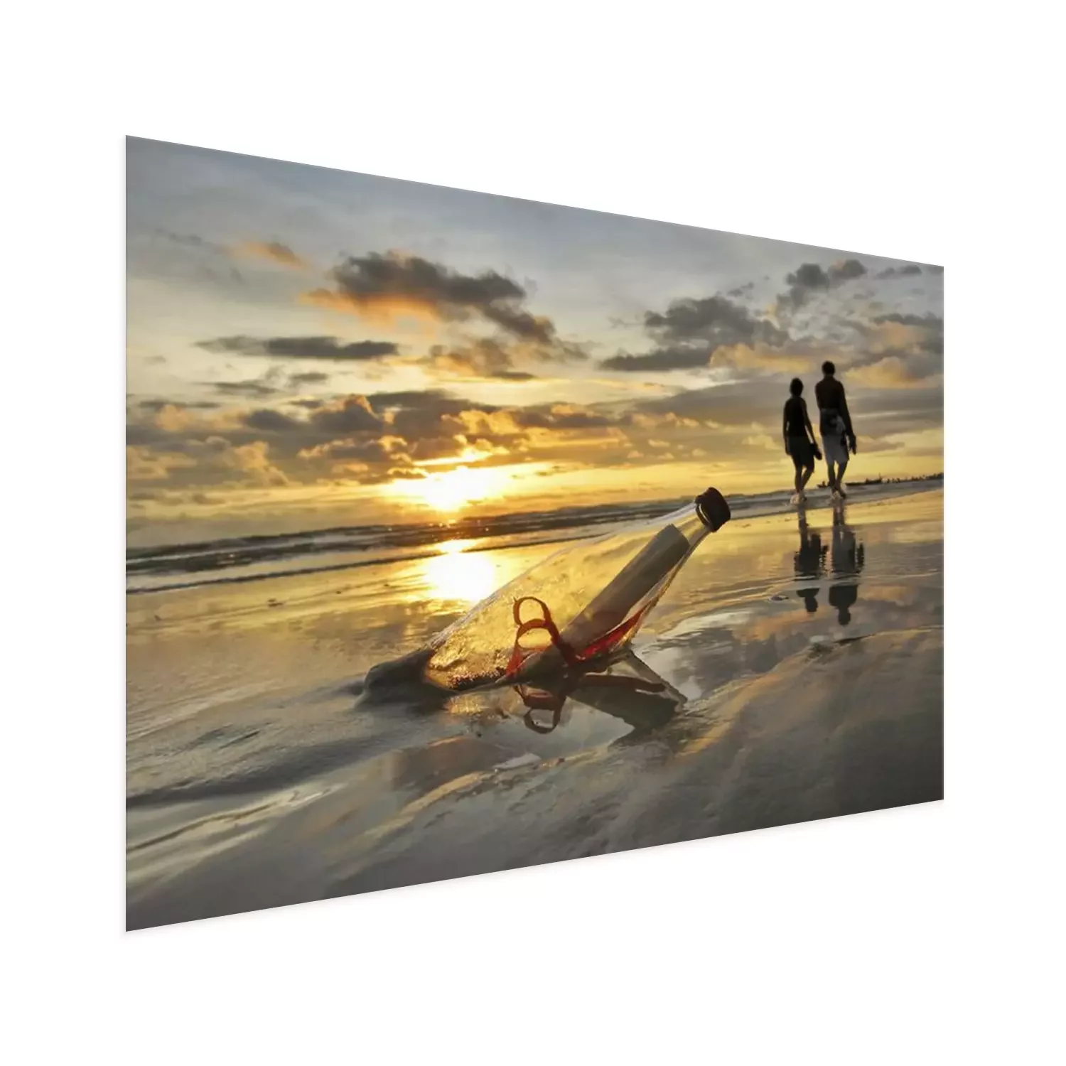 Poster: Brief in einer Flasche am Strand vergraben