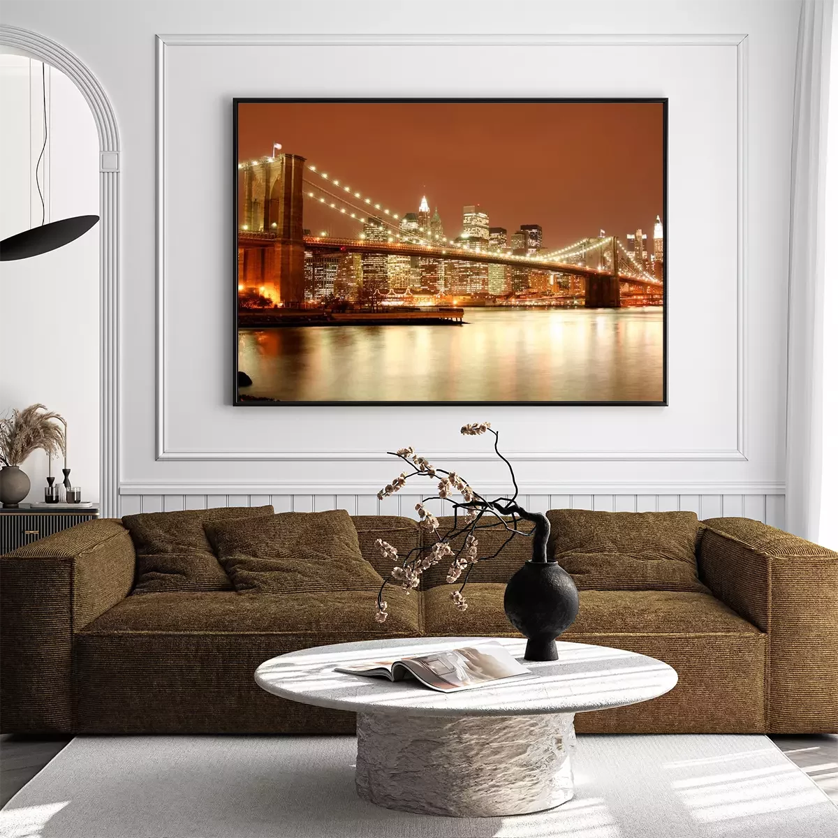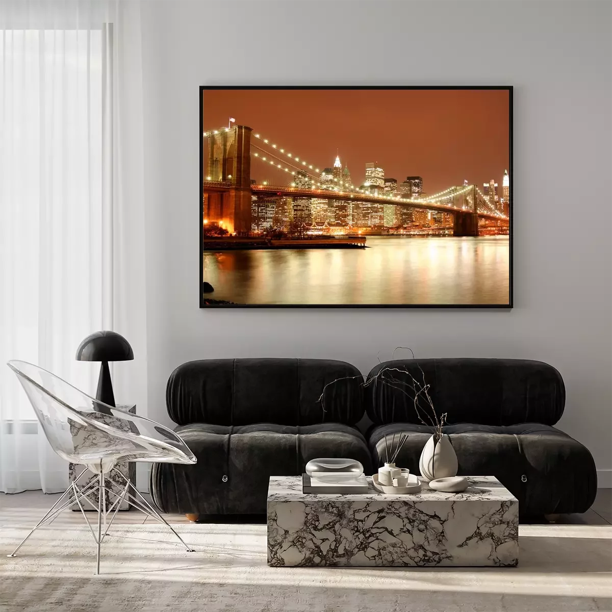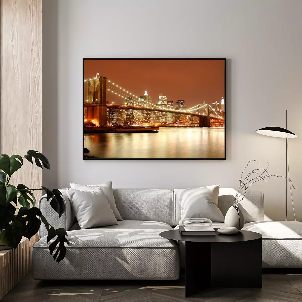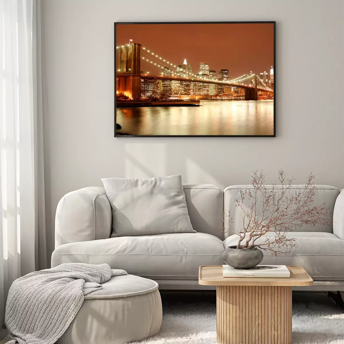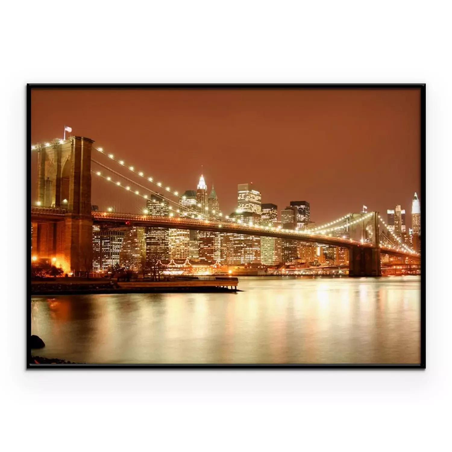 Poster Brooklyn und Manhattan Bridge bei Nacht