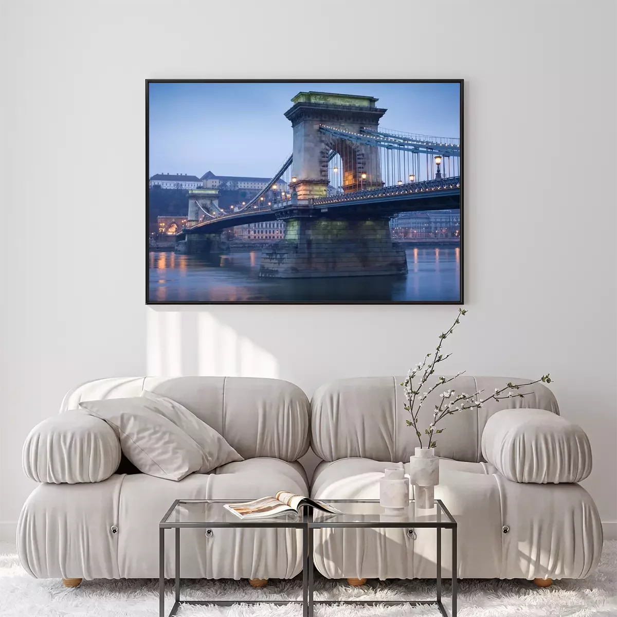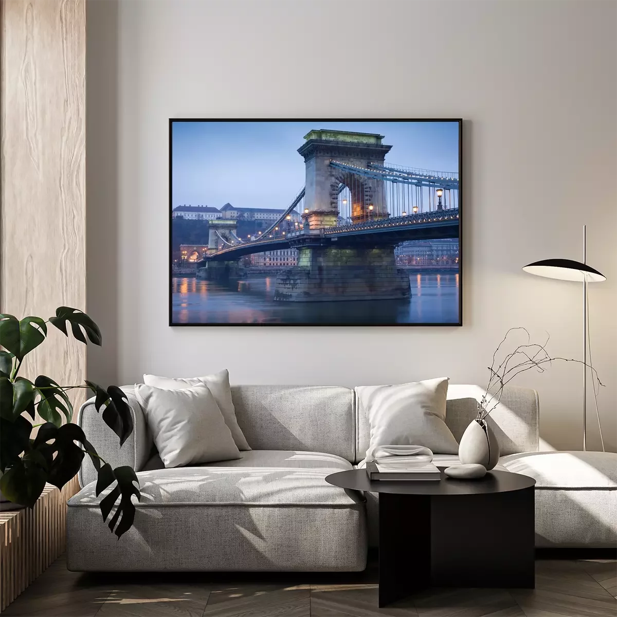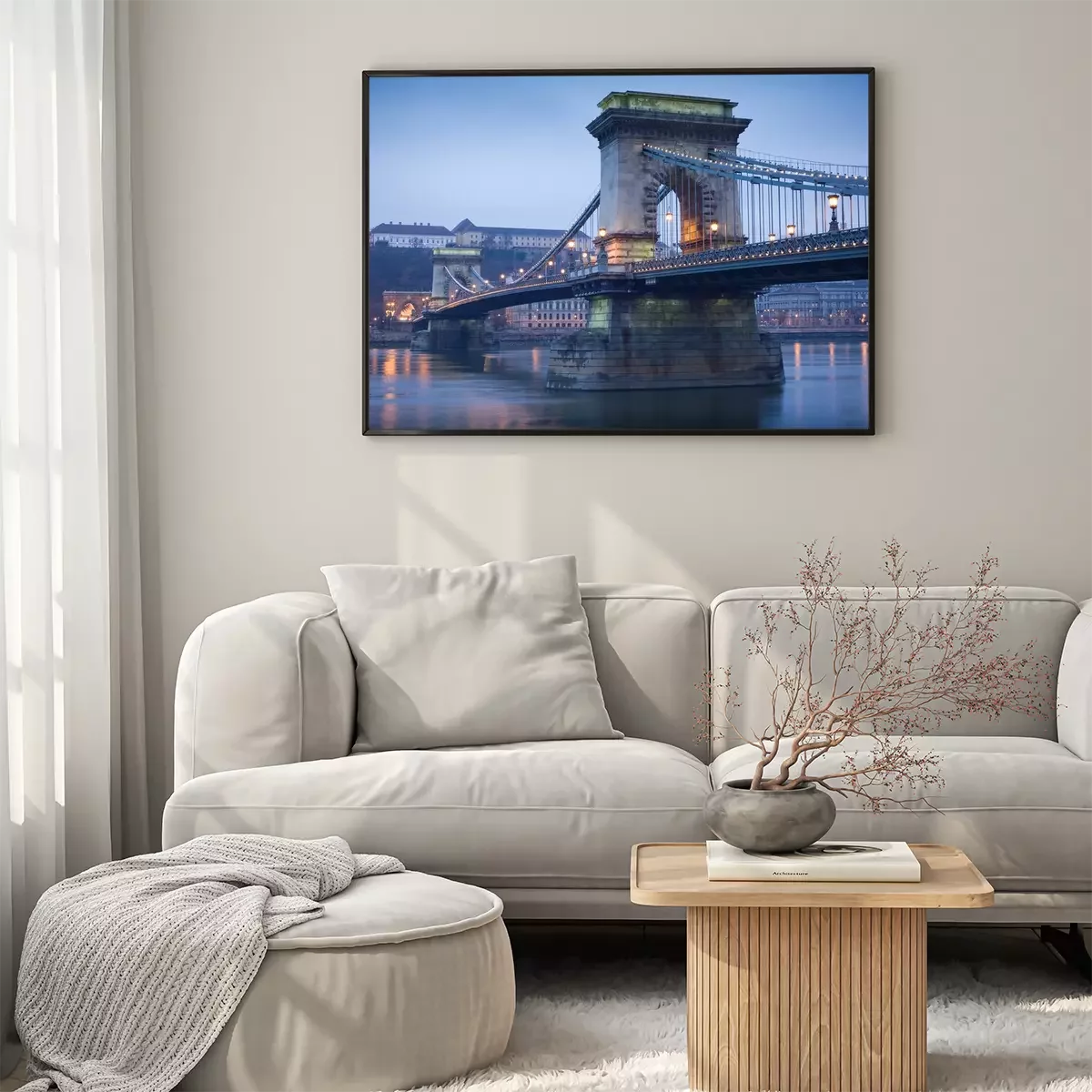 Poster: Brücke in der Stadt bei Dämmerung