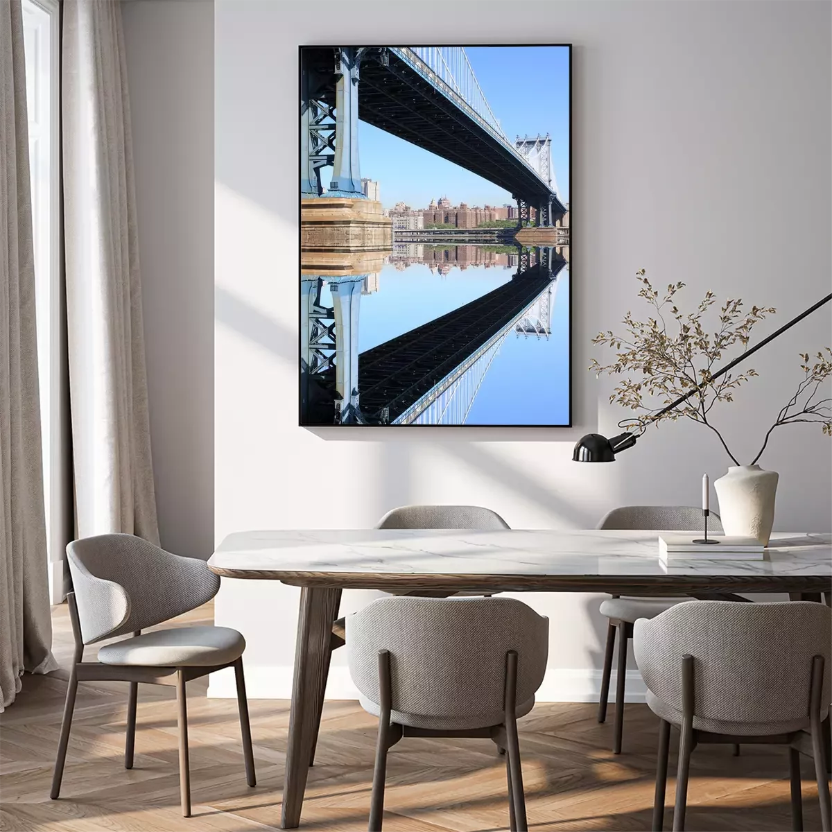 Manhattan Bridge und Reflexion im Wasser