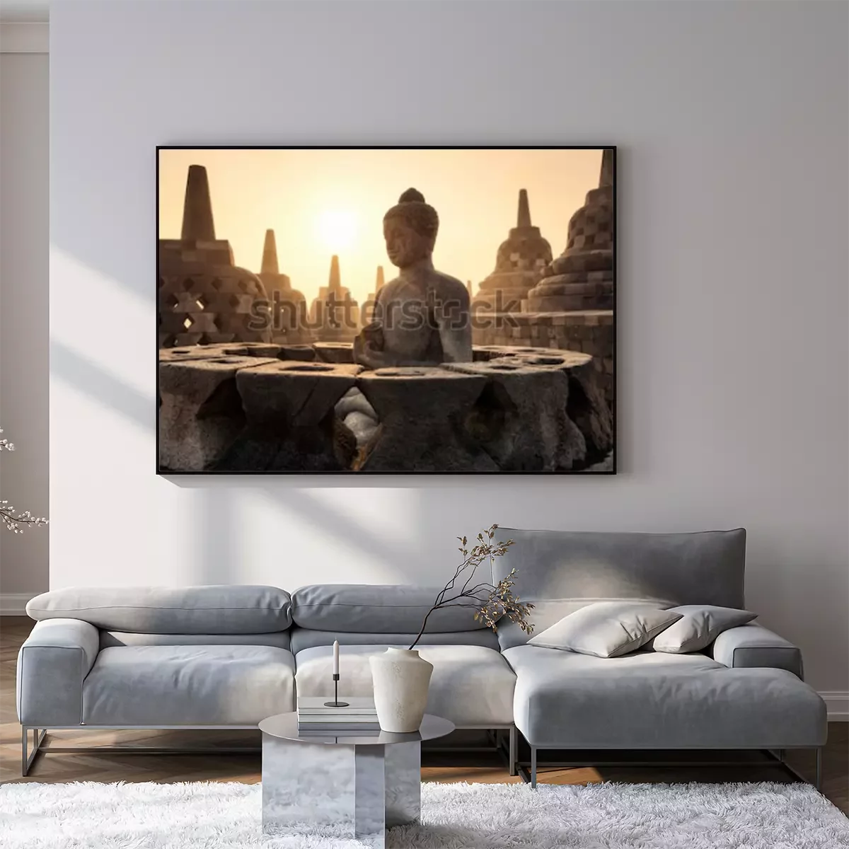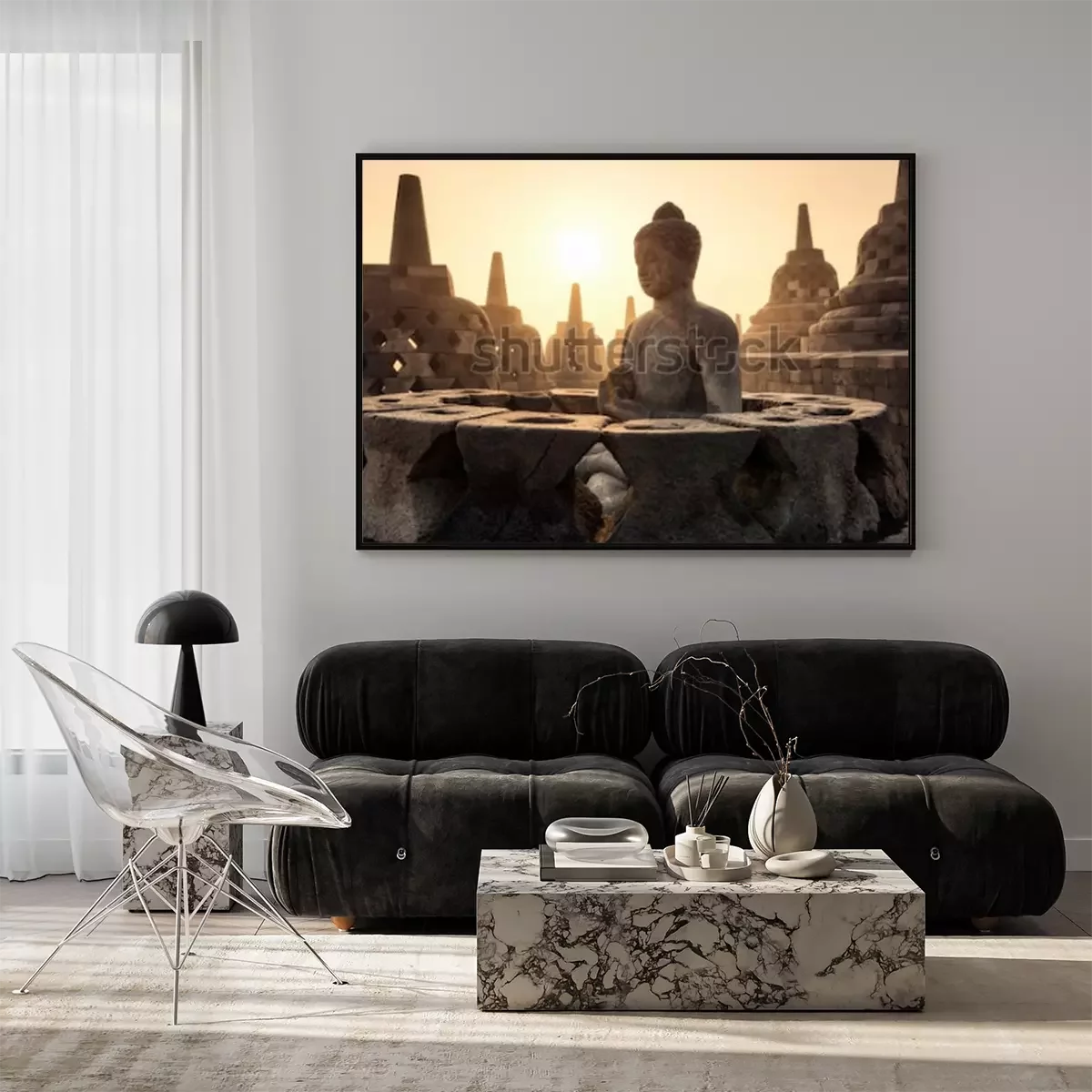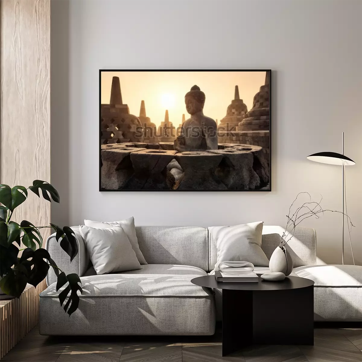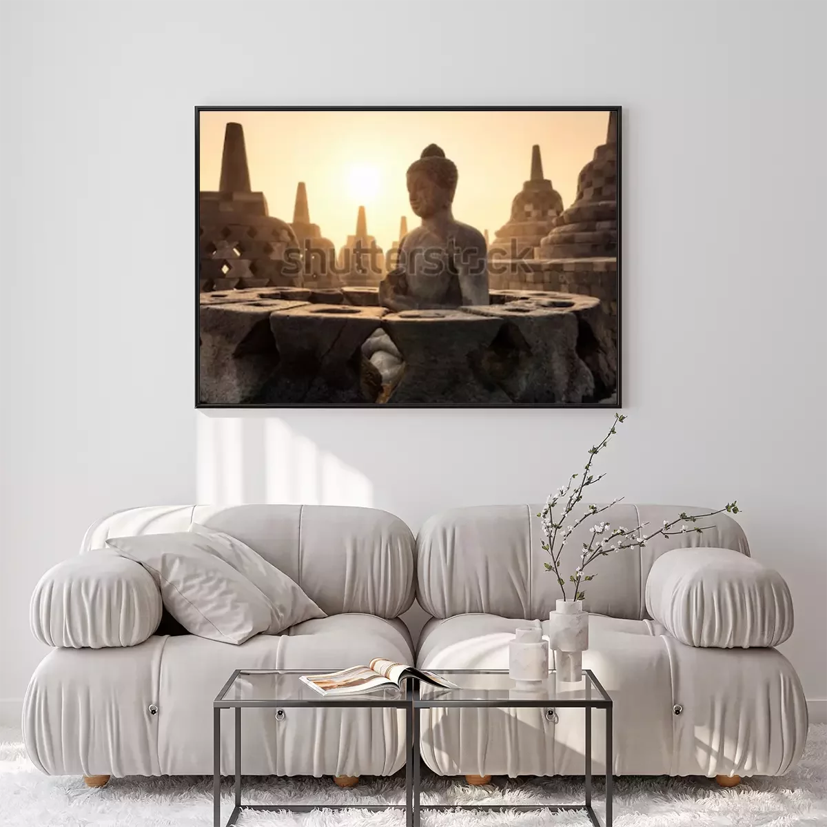 Poster: Buddha-Statue vor dem Hintergrund des Sonnenuntergangs