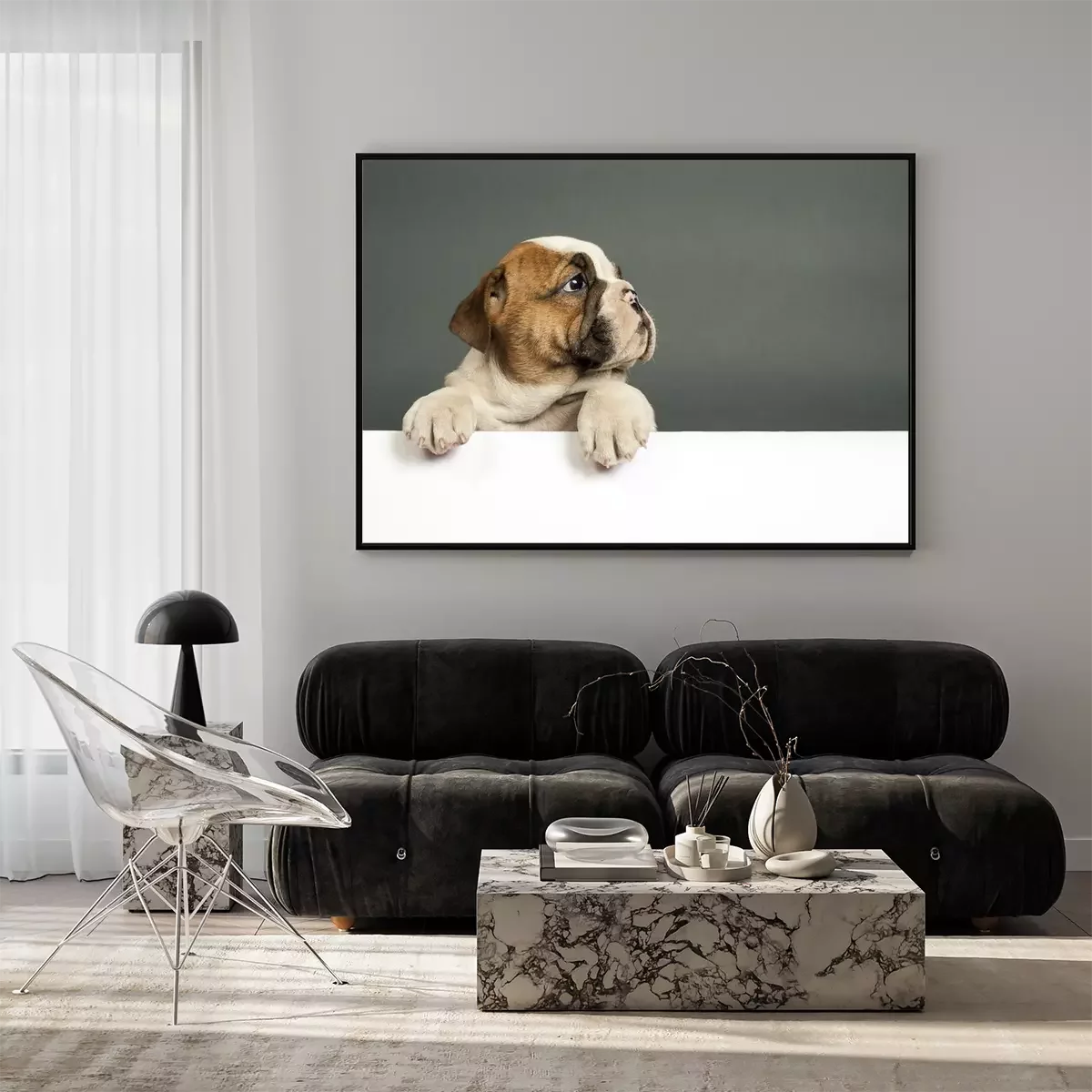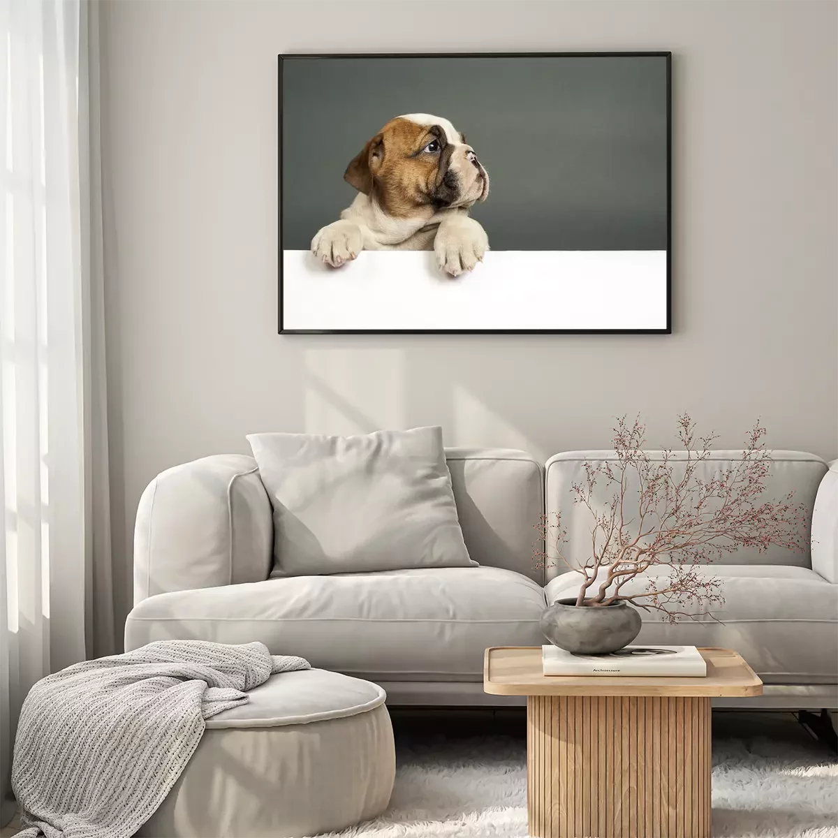 Poster: Bulldogge Hund auf grauem Hintergrund