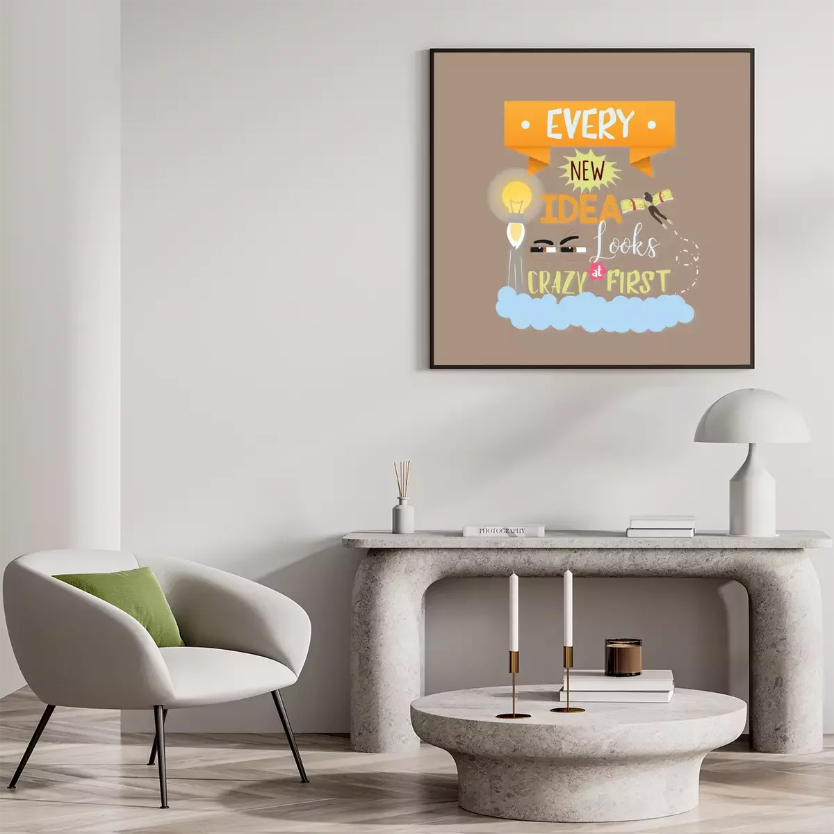 Poster: Bunte Bildunterschriften über verrückte Ideen