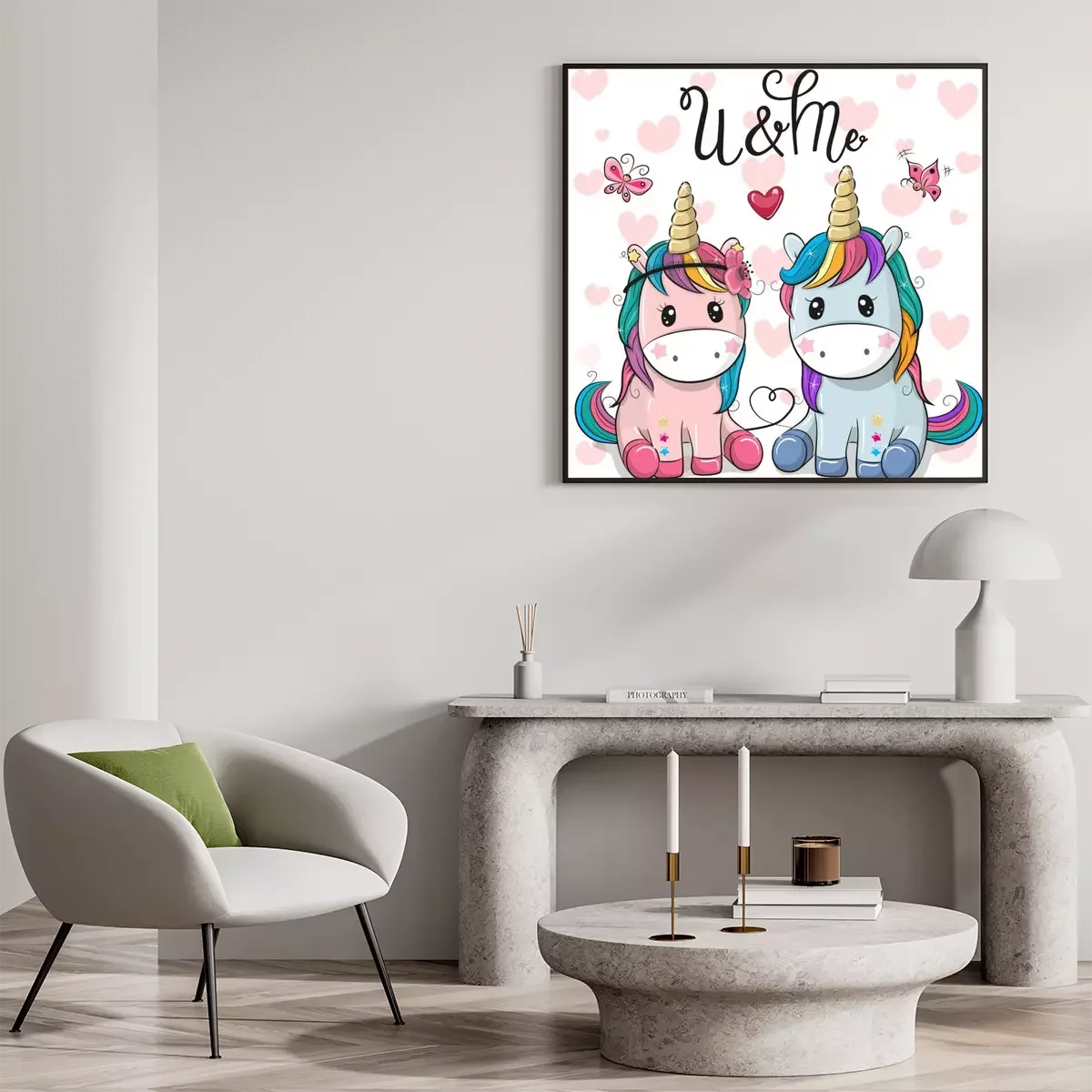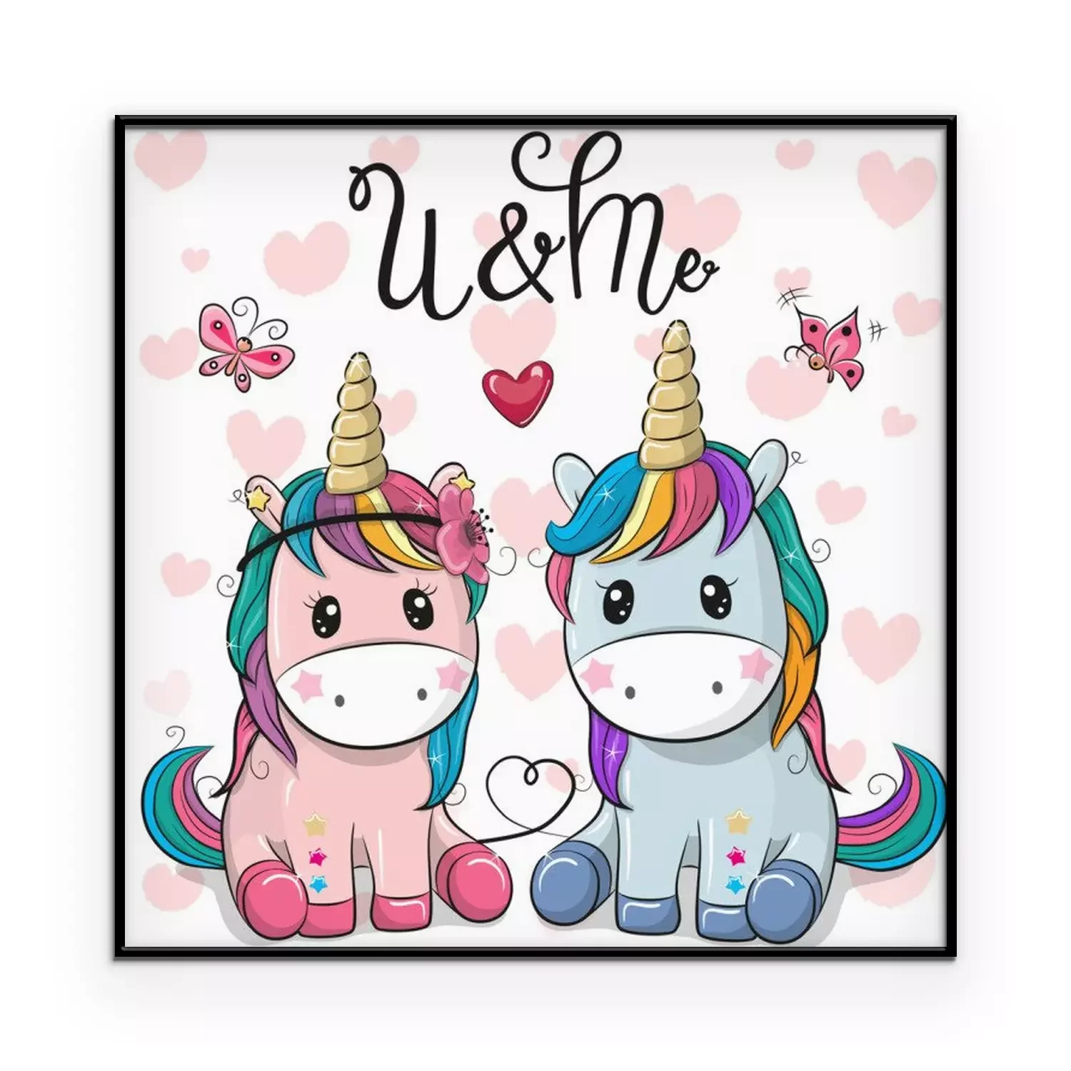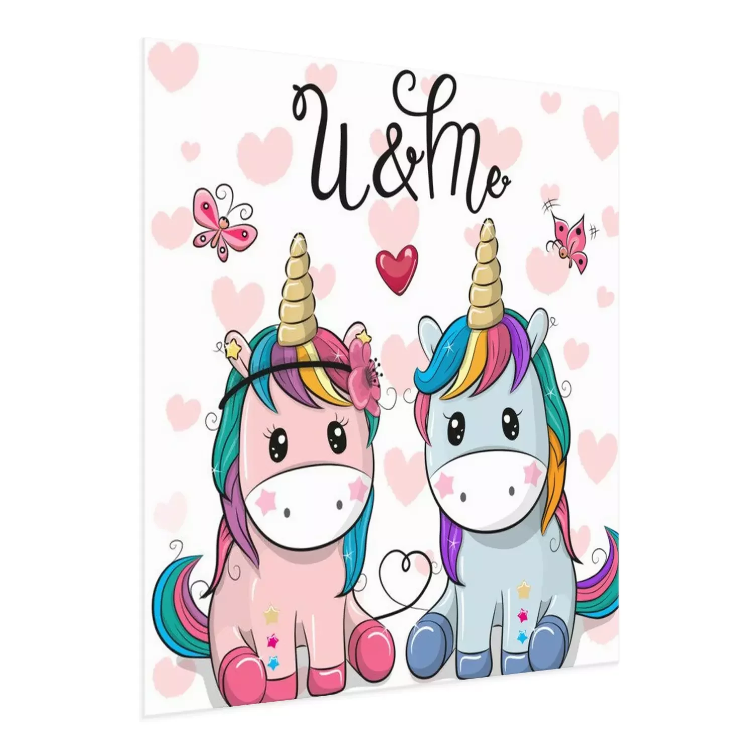 Poster: Bunte Einhörner und zwei Schmetterlinge