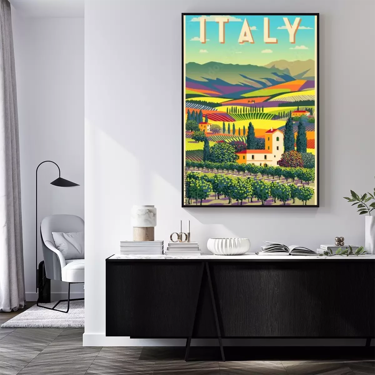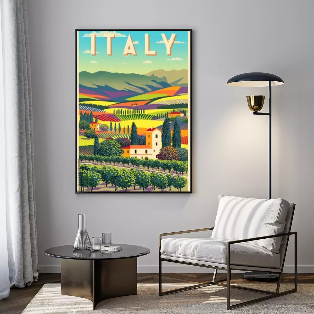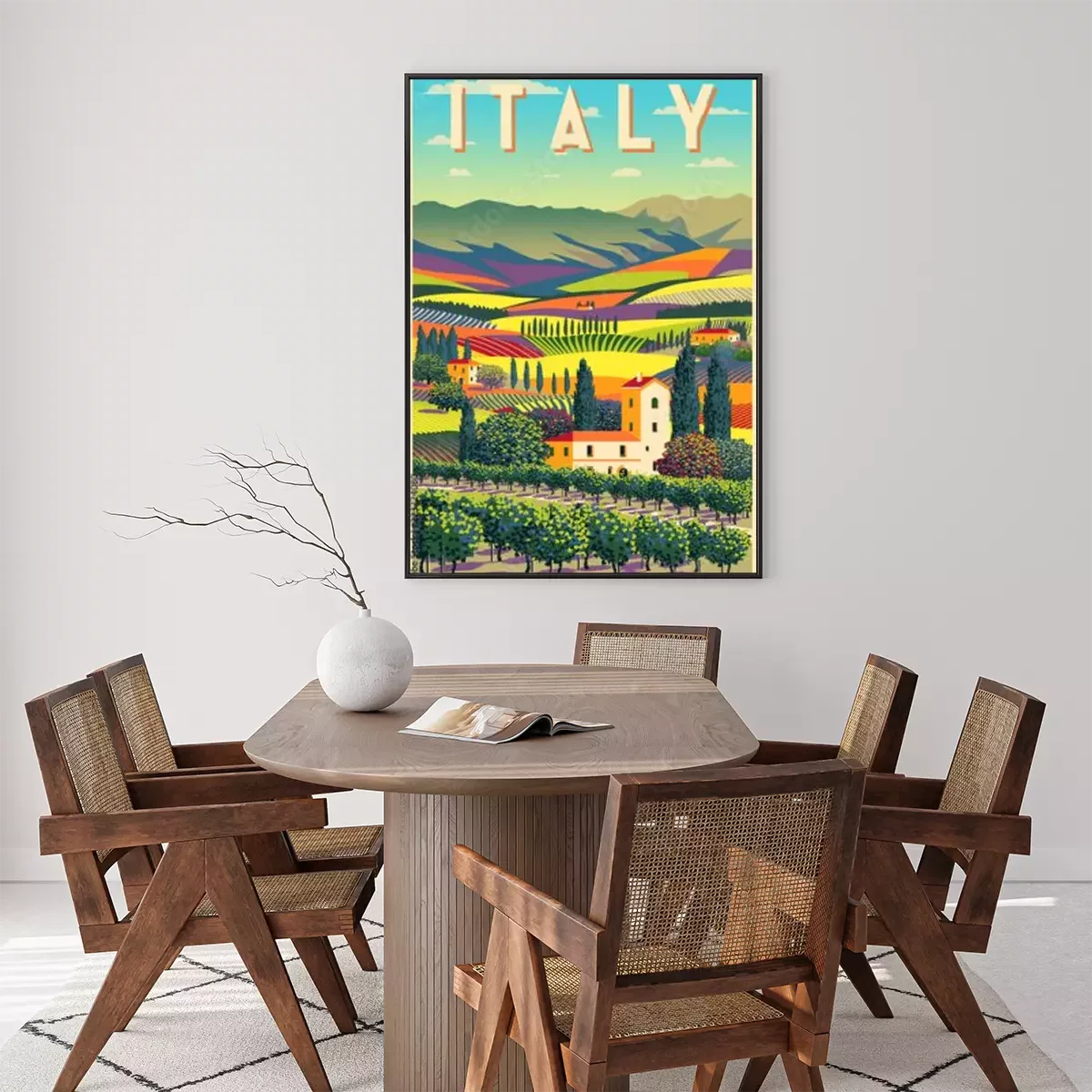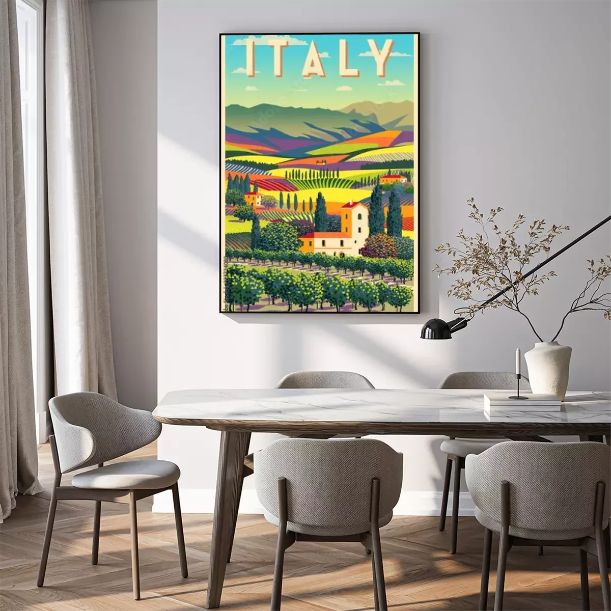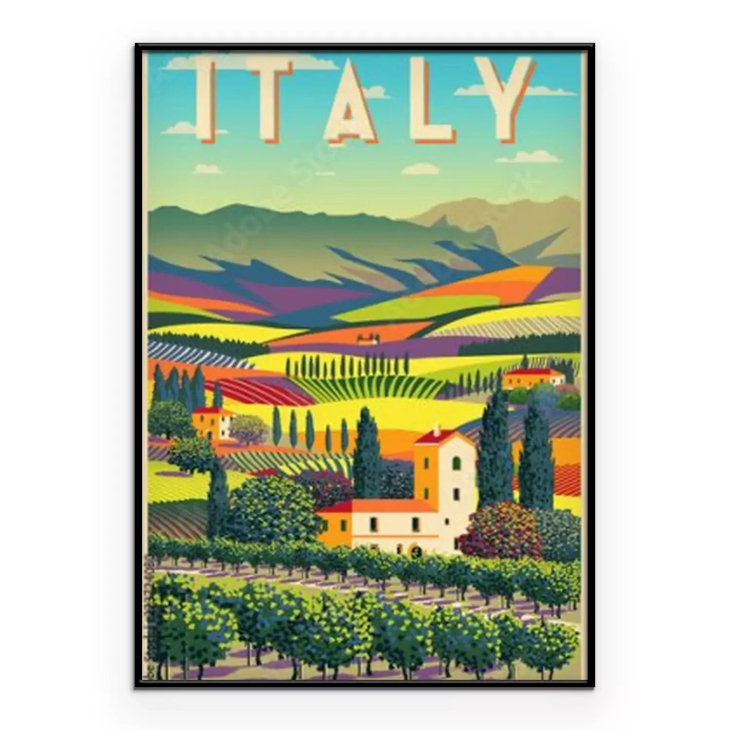Poster: Bunte Illustration mit Ansicht der Toskana