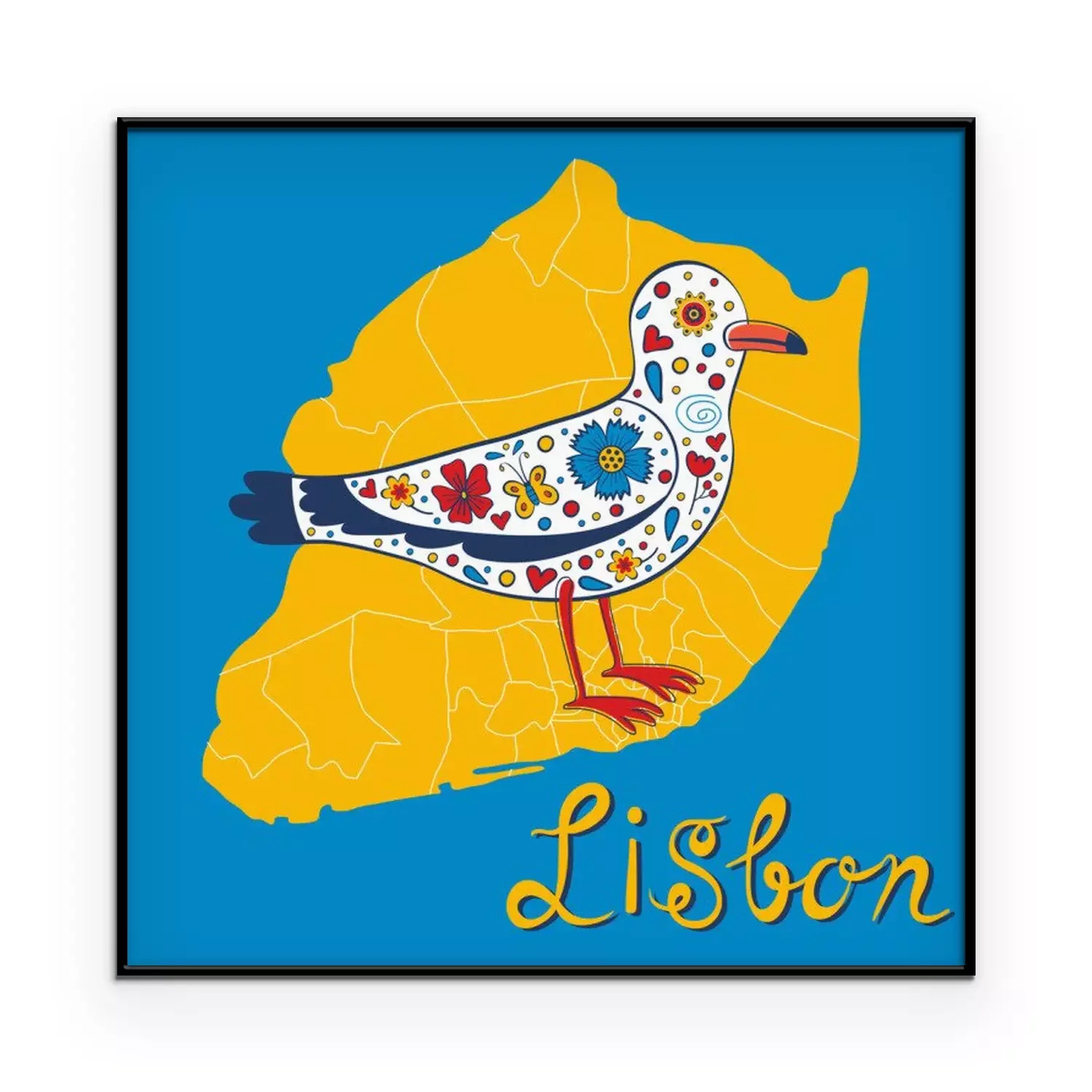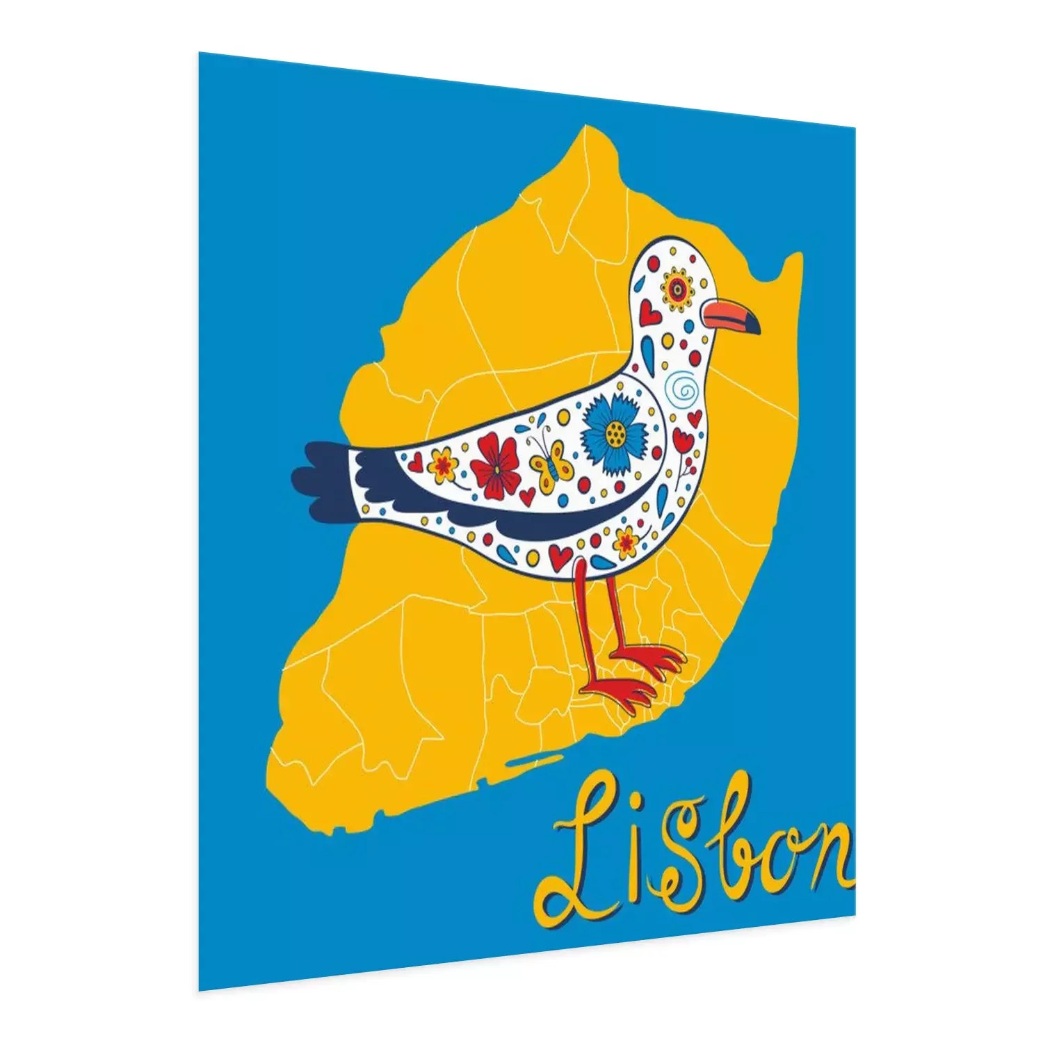 Poster: Bunte Möwe auf einer Karte von Portugal