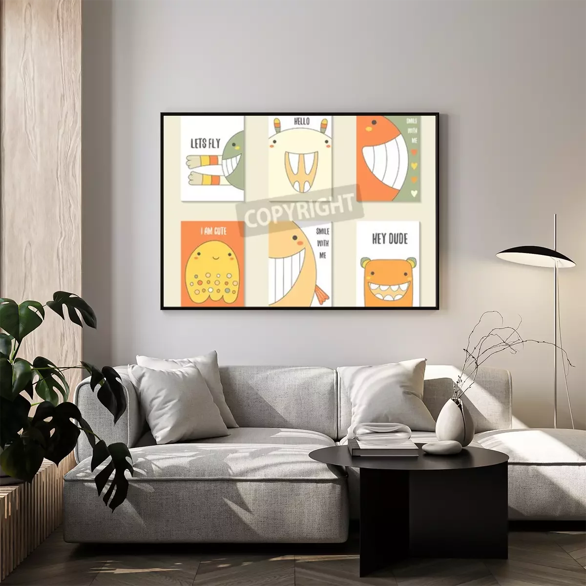 Poster: Bunte Poster mit lächelnden Kreaturen