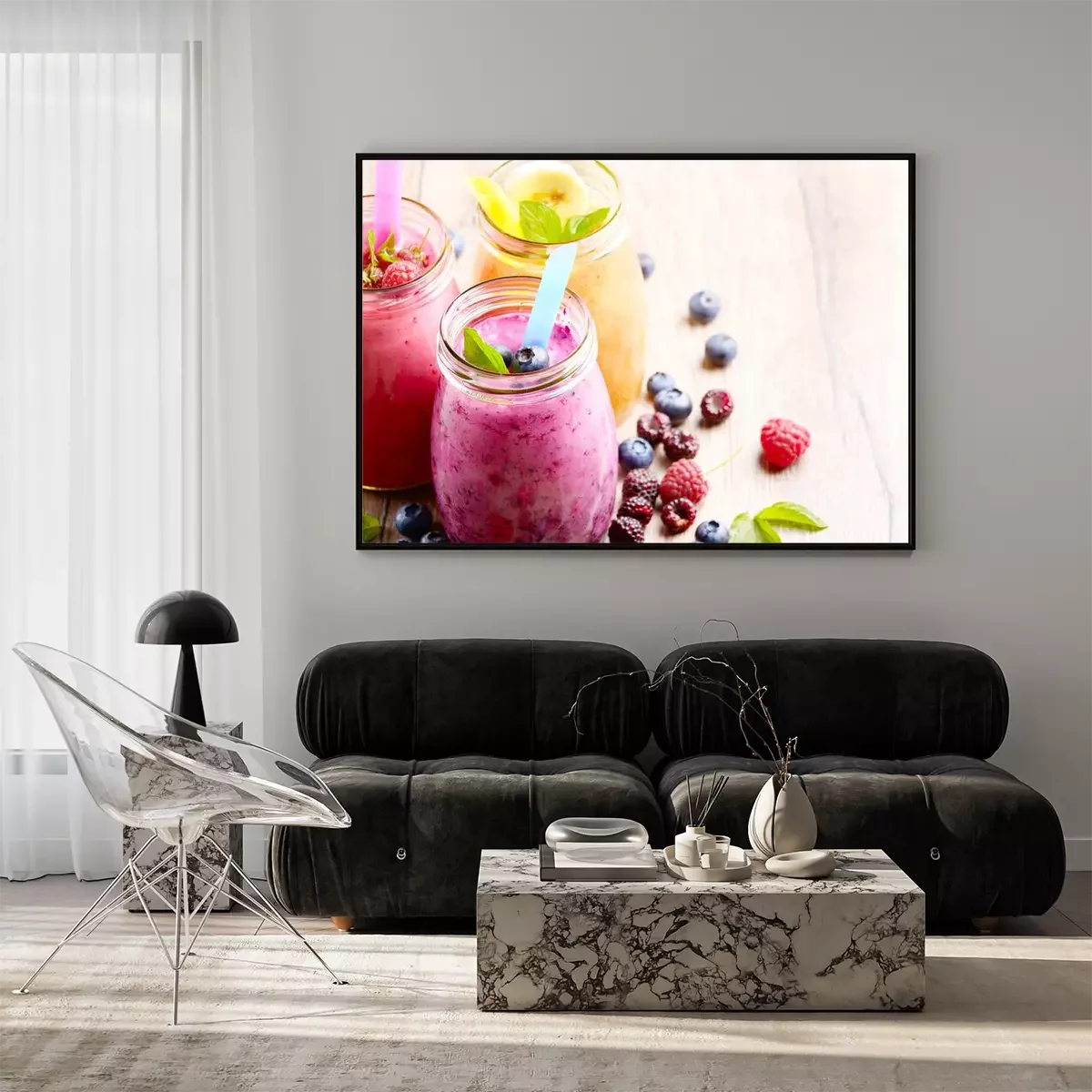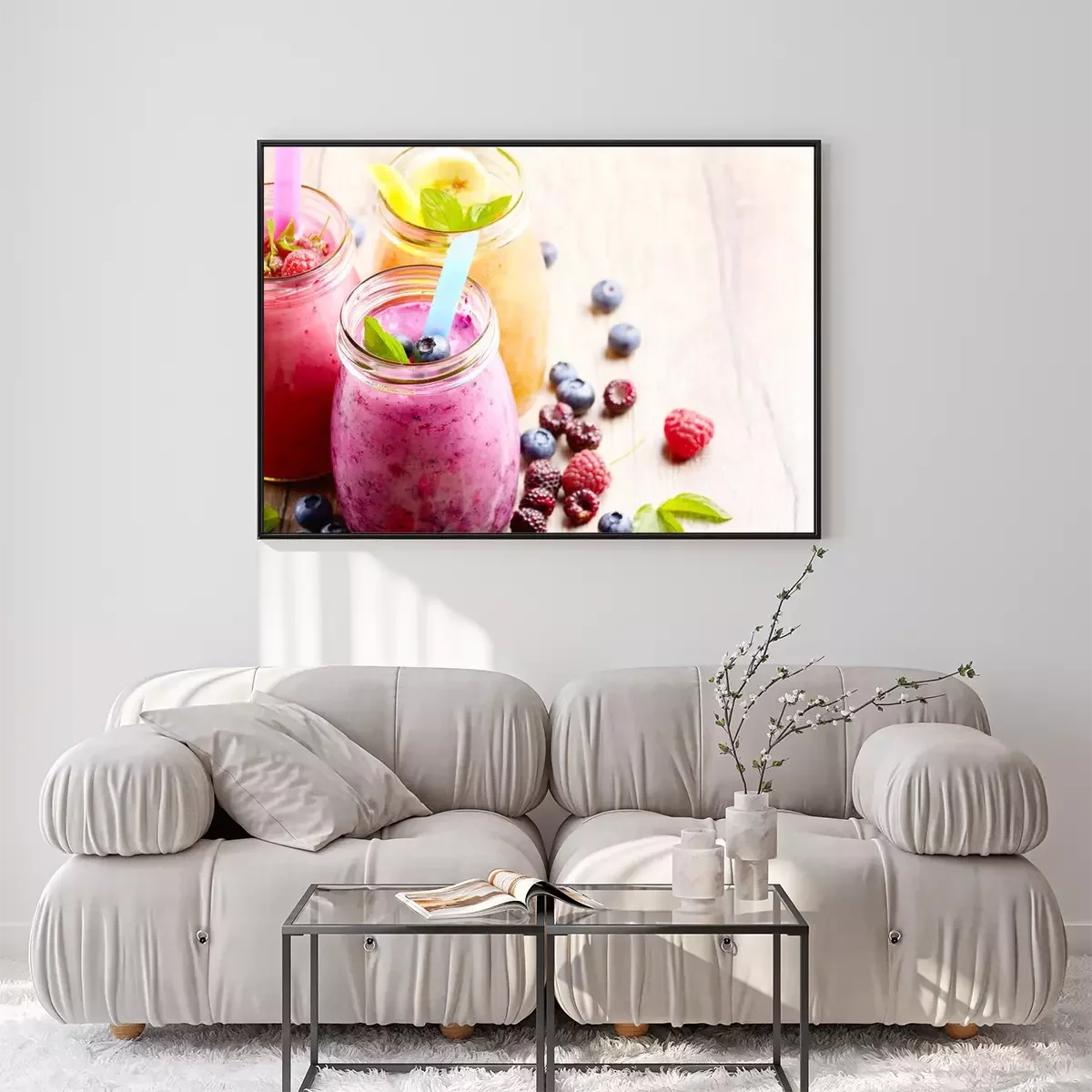 Poster: Bunte Smoothies aus verschiedenen Früchten