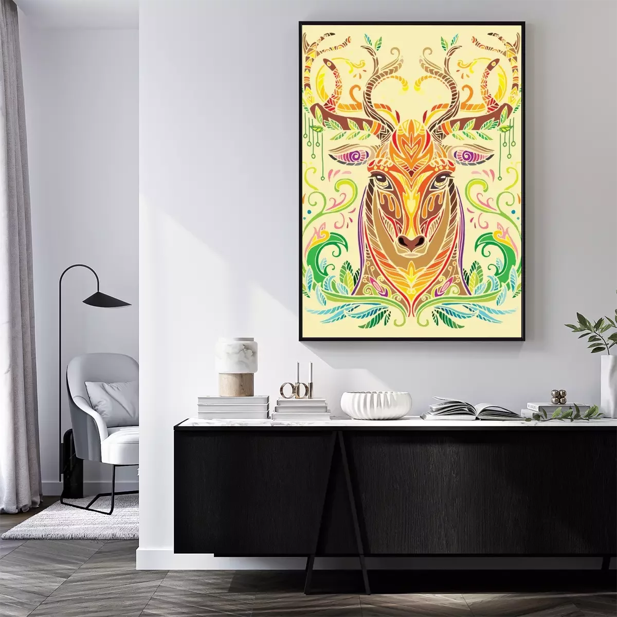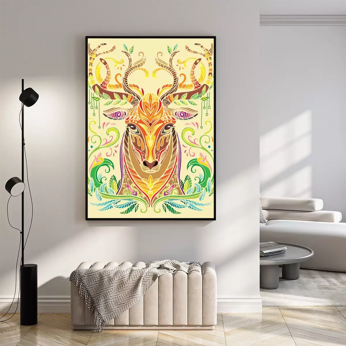Poster Bunter Hirsch auf gelbem Hintergrund