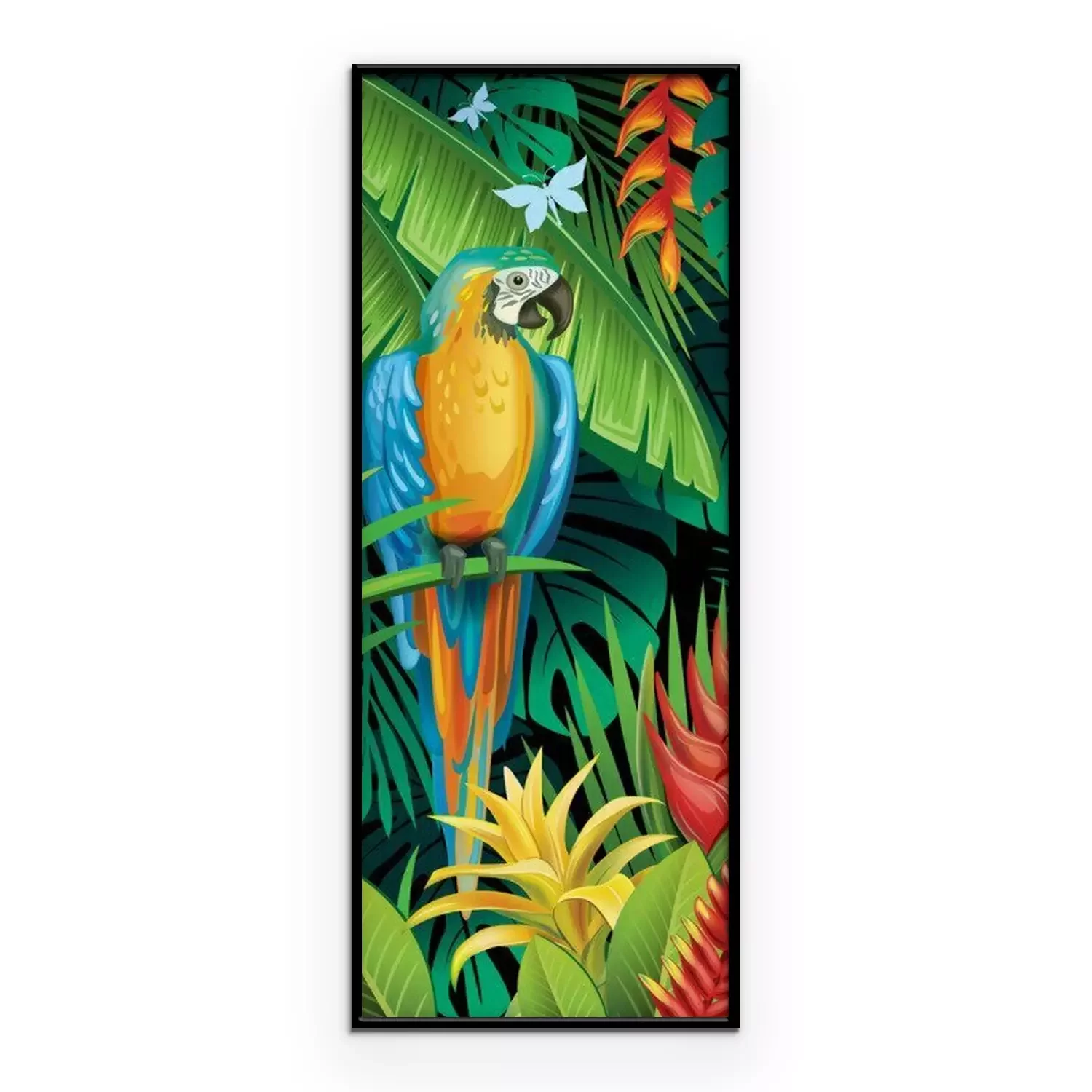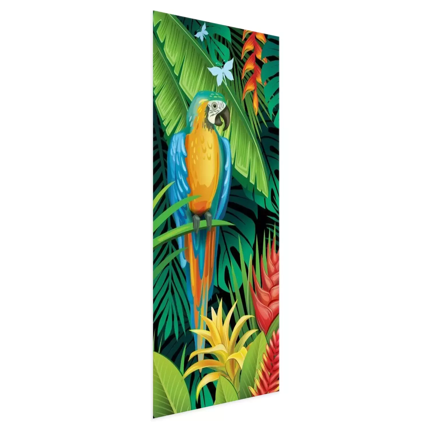 Poster: Bunter Papagei mit Dschungel im Hintergrund