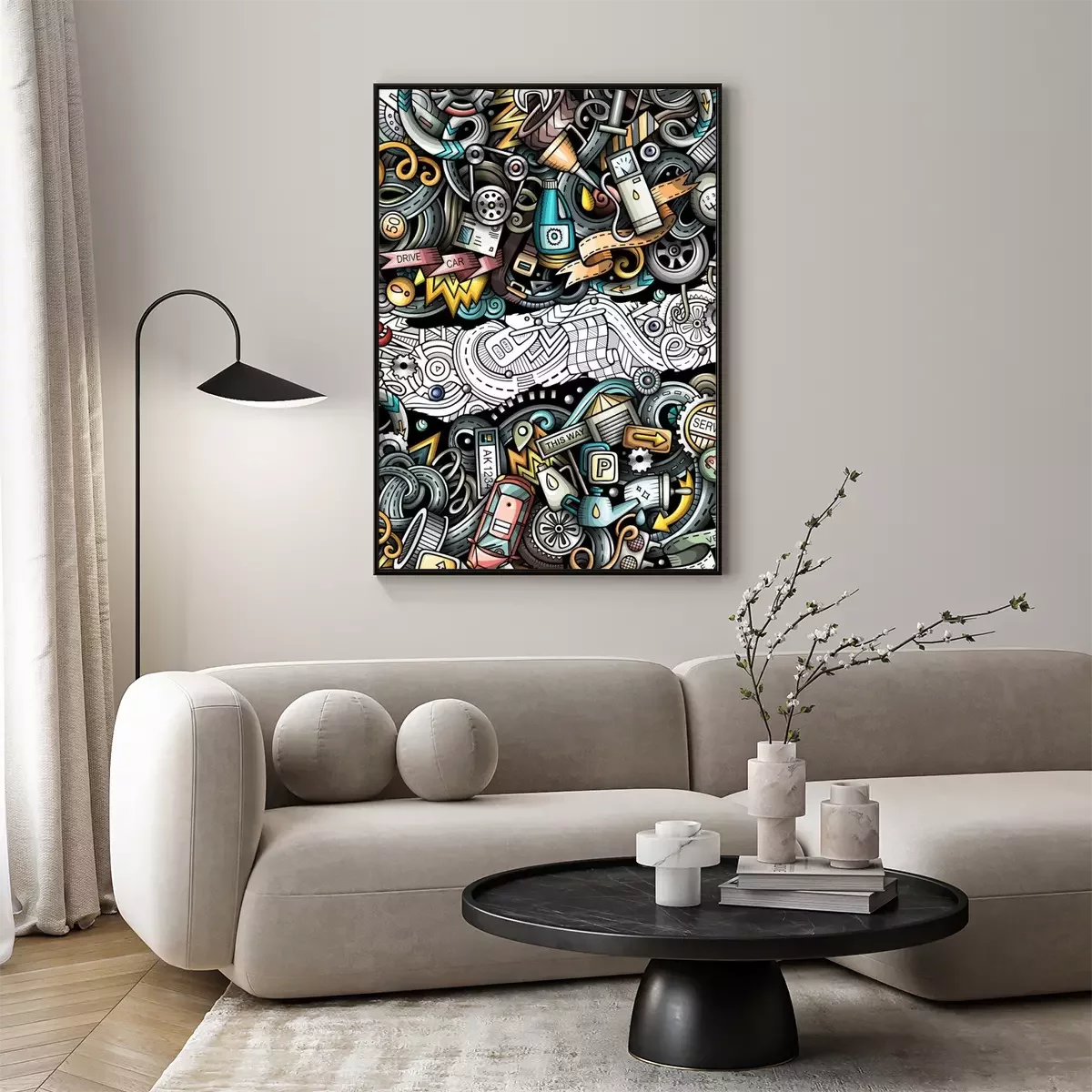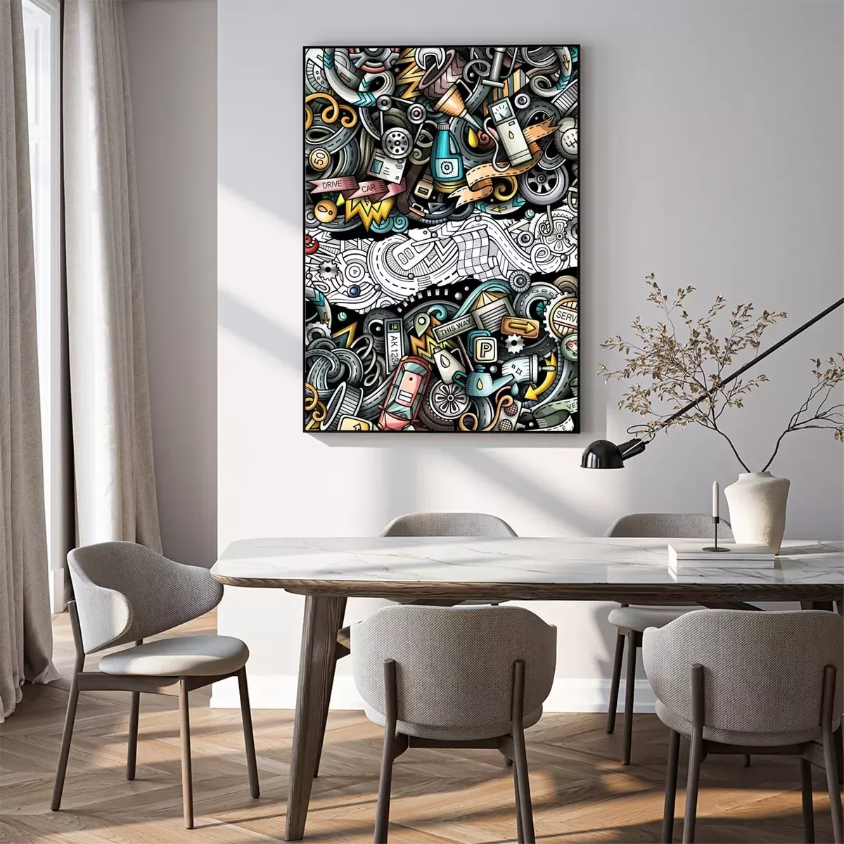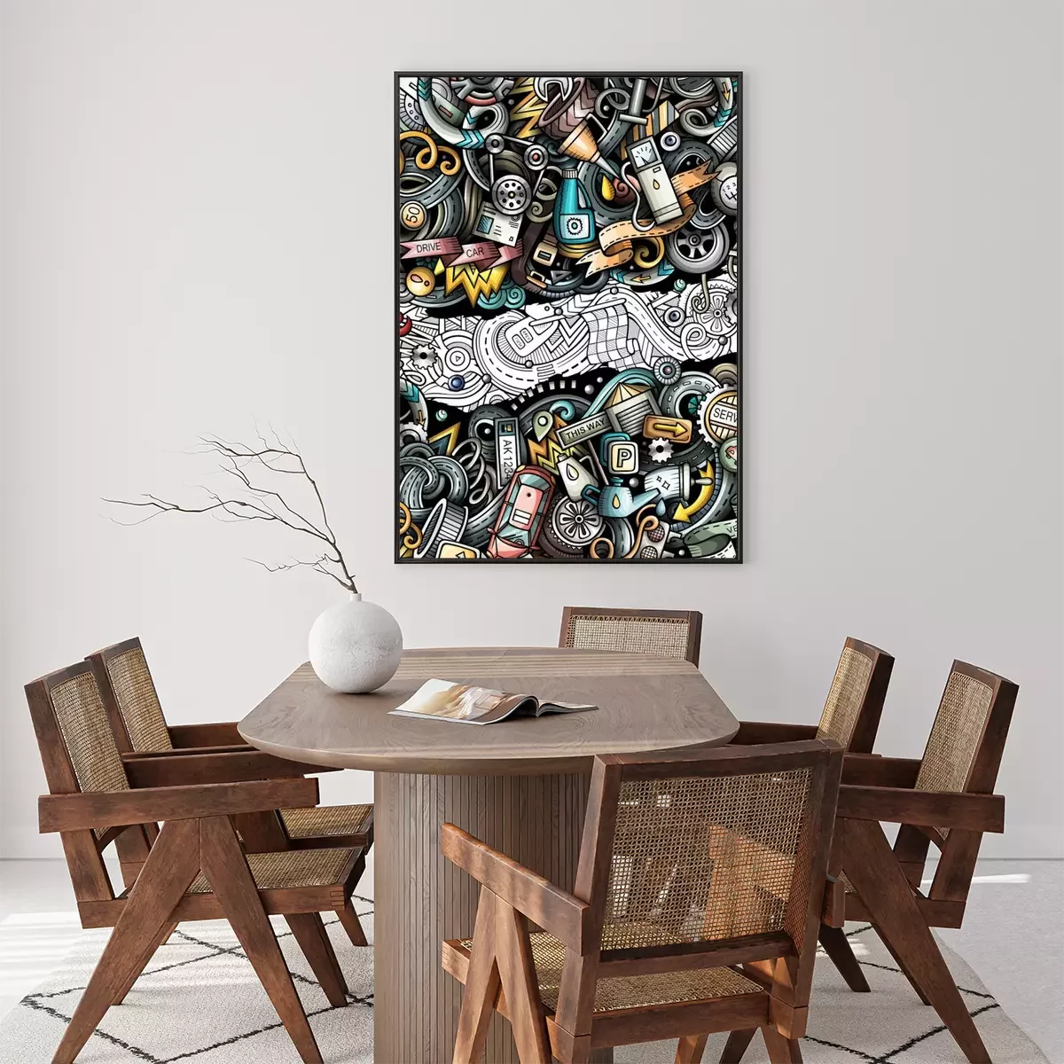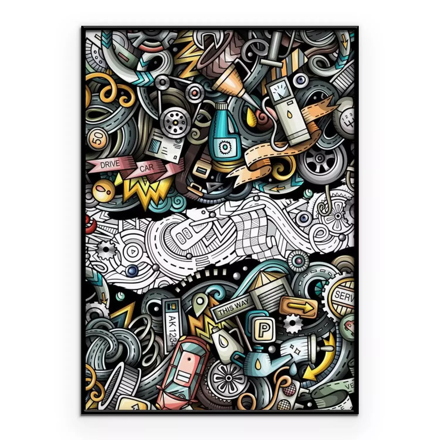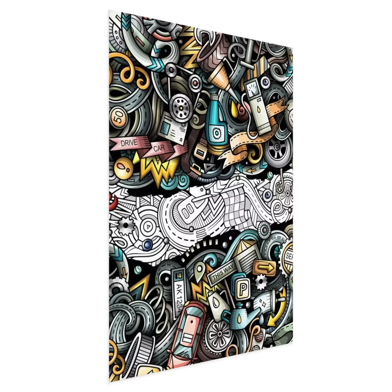 Poster: Bunter Schrottplatz mit Fahrzeugen