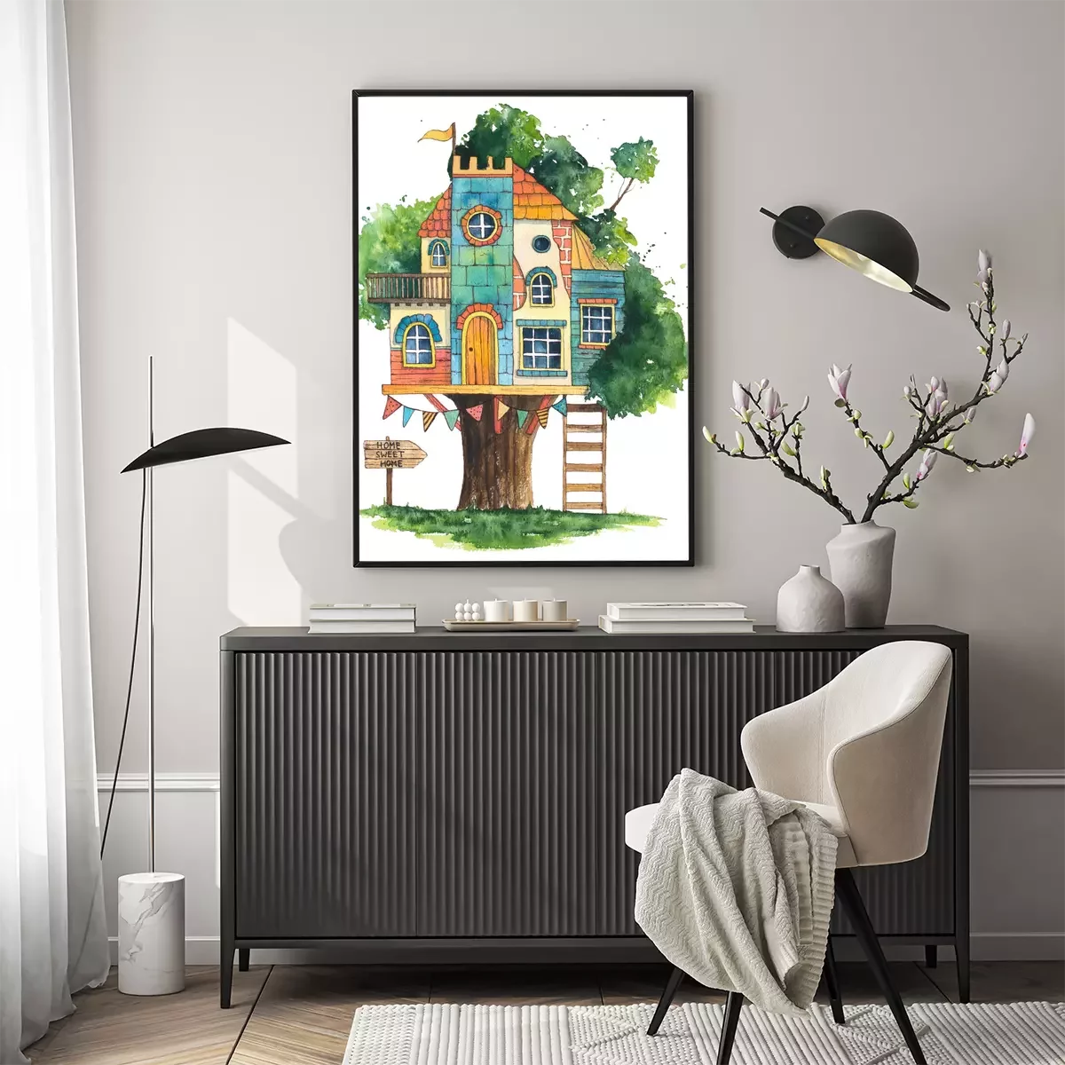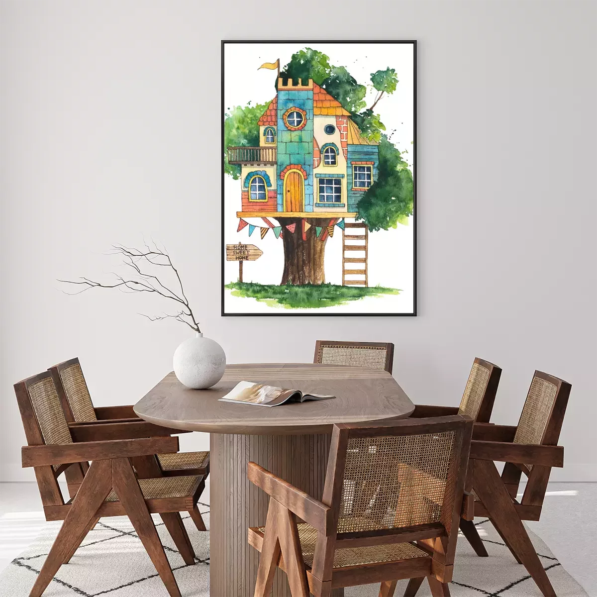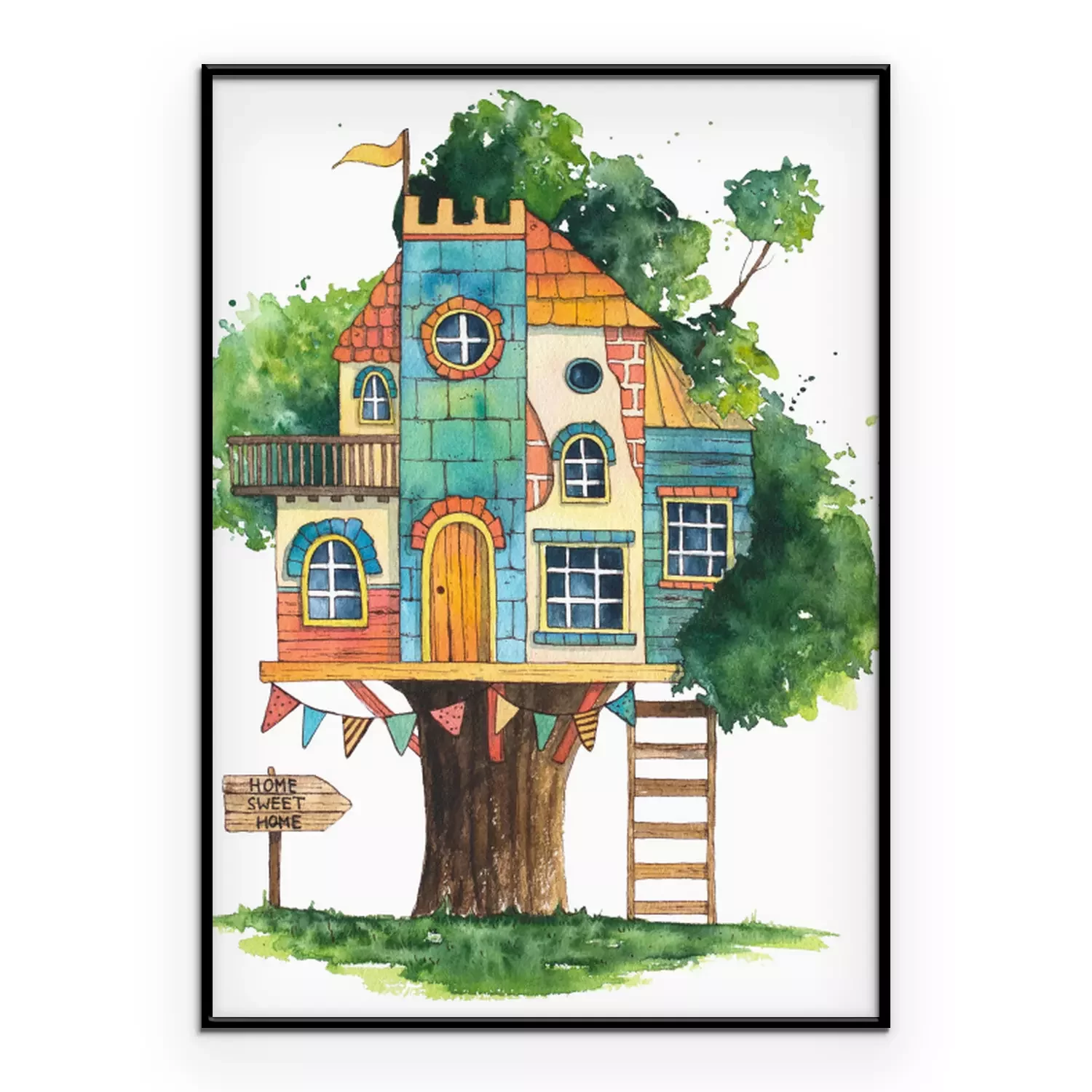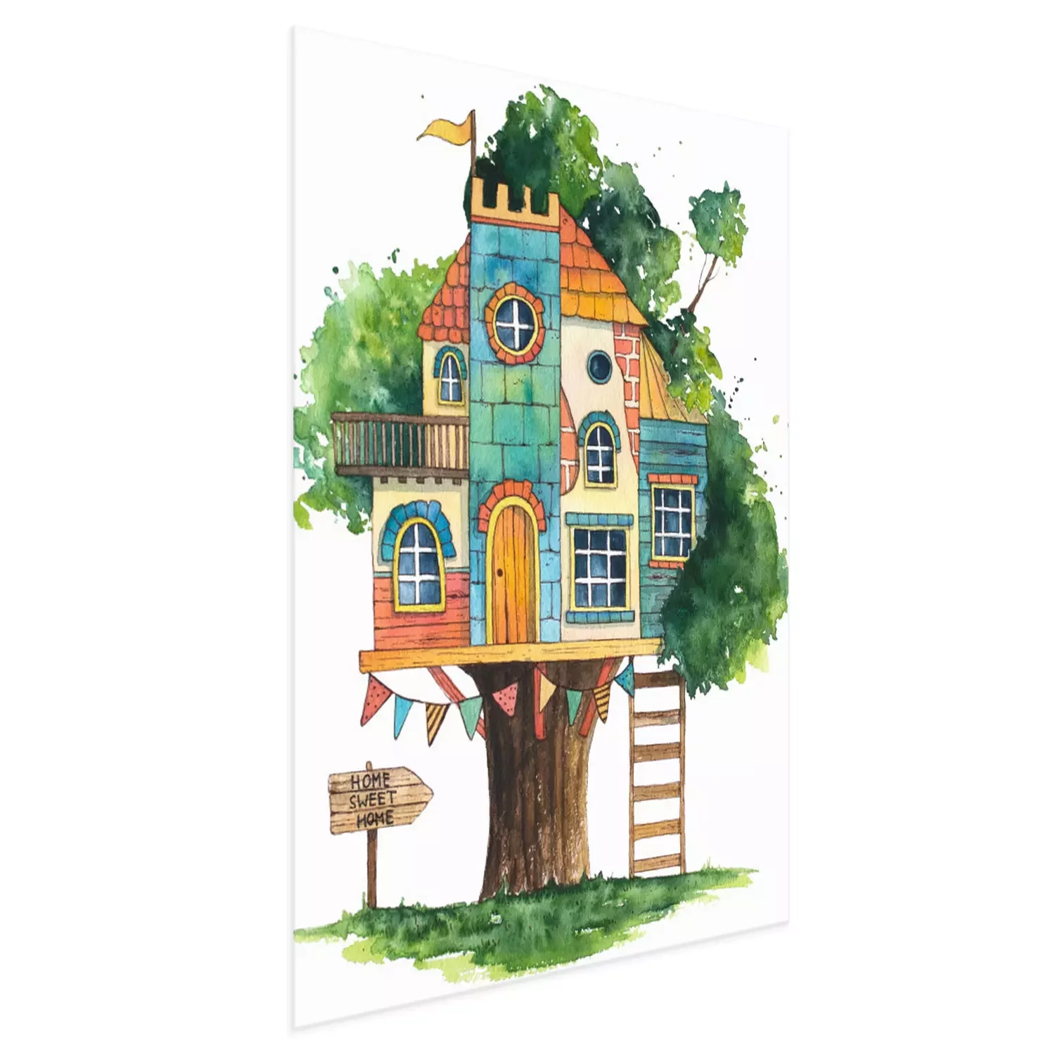 Poster: Buntes Kinder-Baumhaus Zeichnung