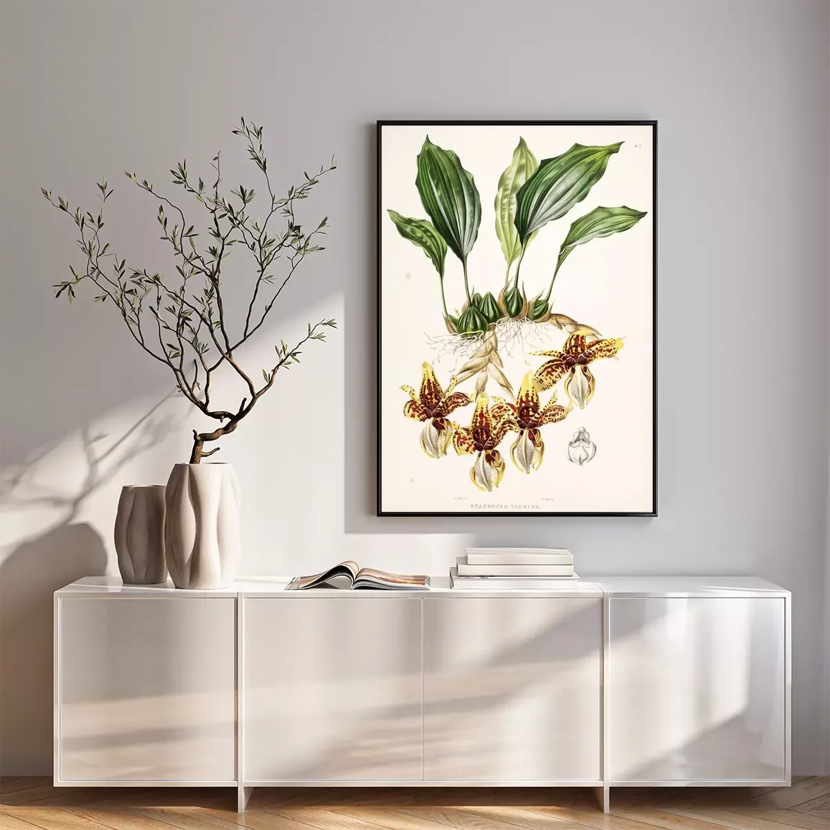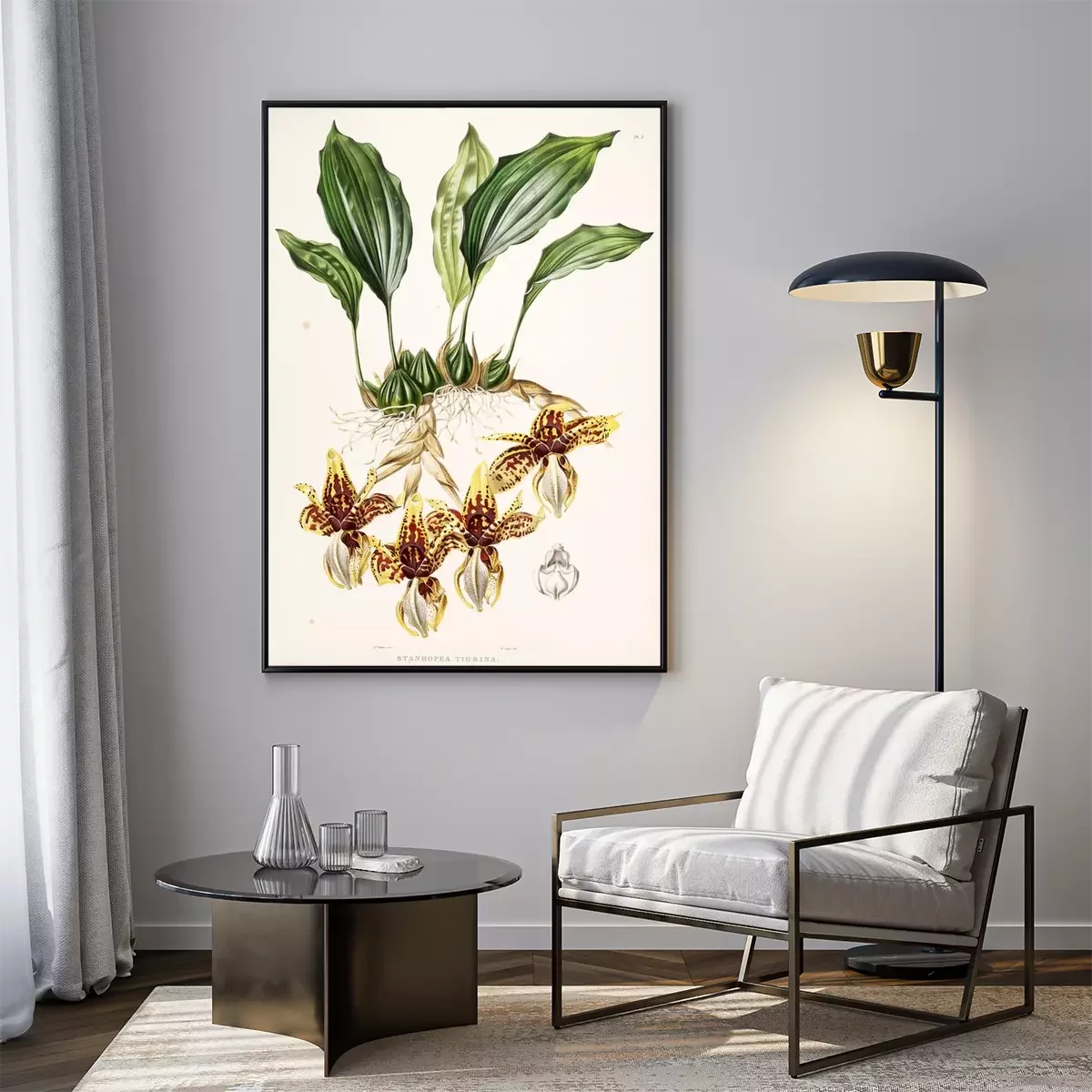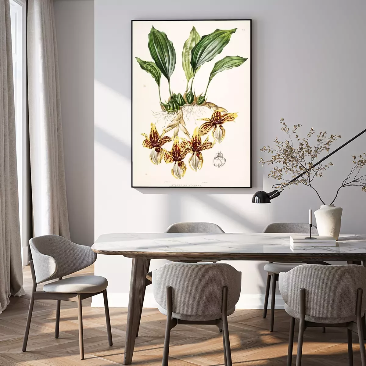 Poster: Burgunderrote Orchidee Flecken auf einem gelben Blütenblatt