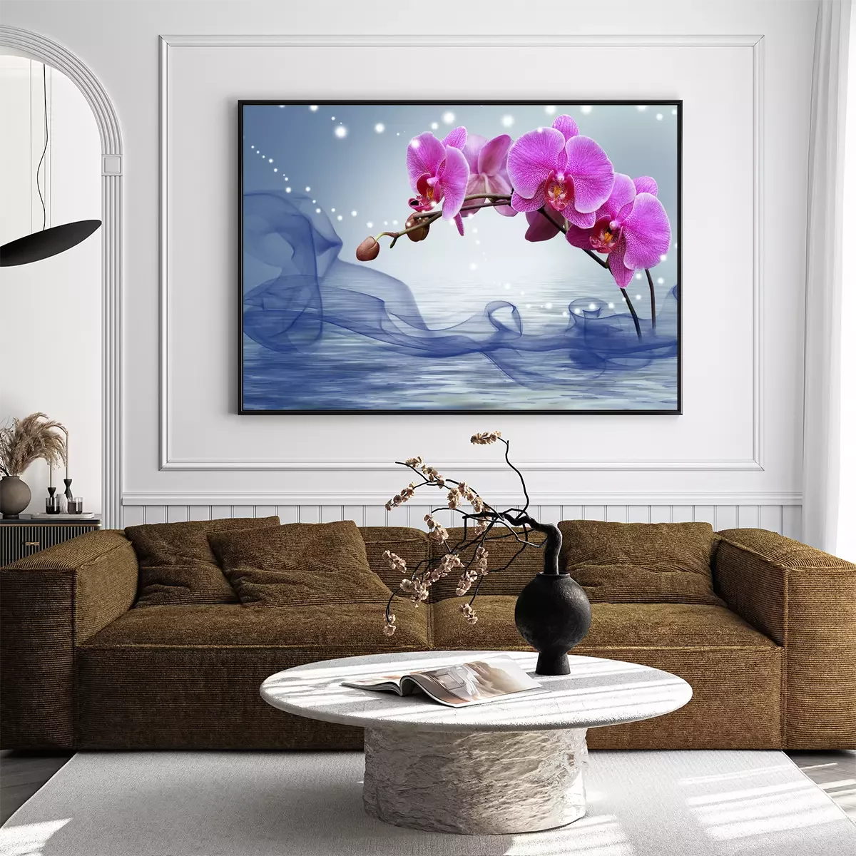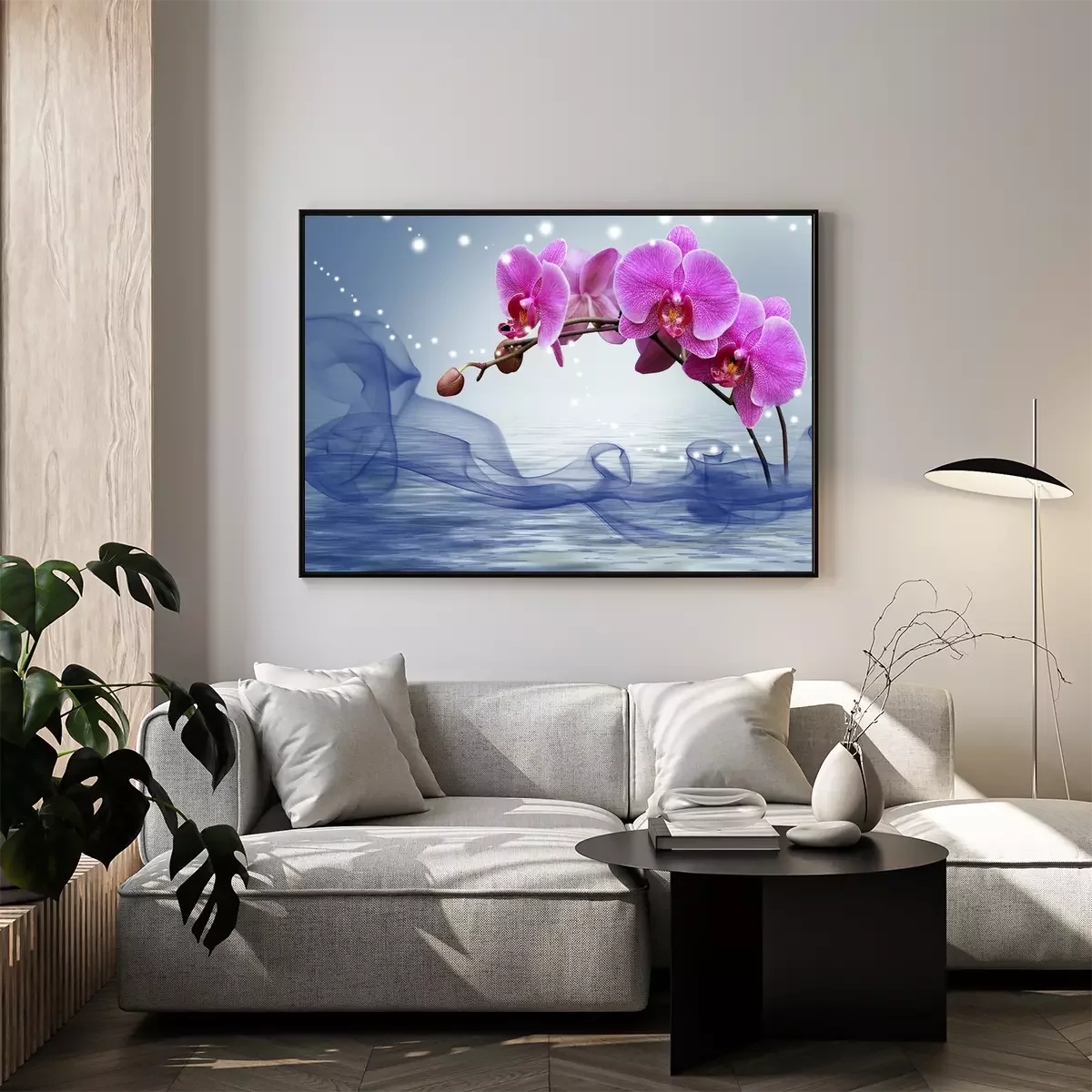 Poster: Burgunderrote Orchidee taucht aus dem Wasser auf