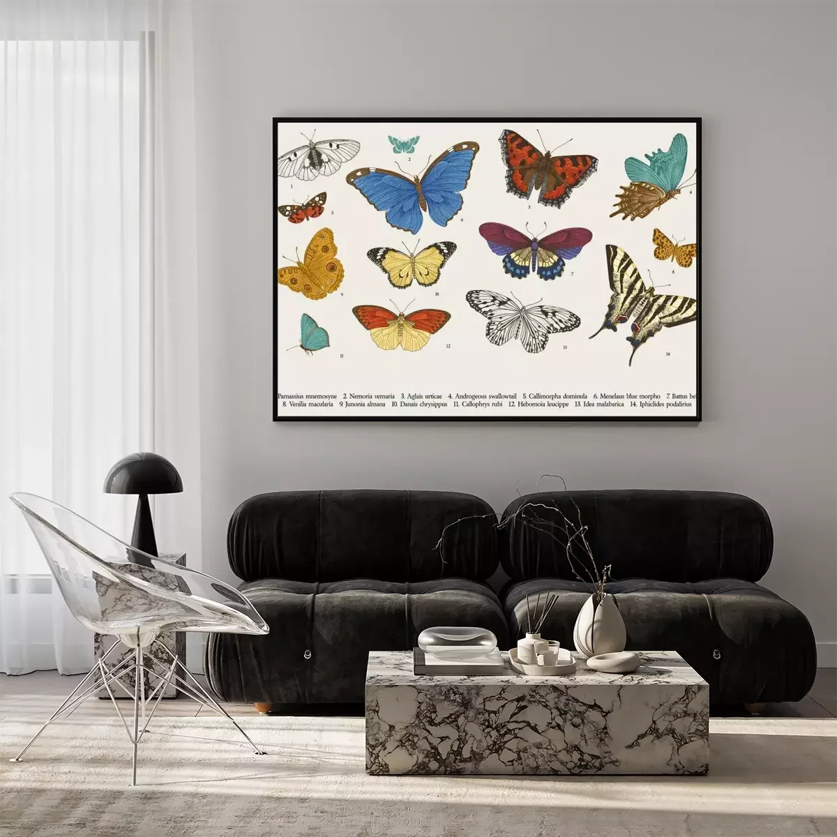 Poster: ..Butterflies. Set of elements for design. Vector vintage classic illustration. Colorful