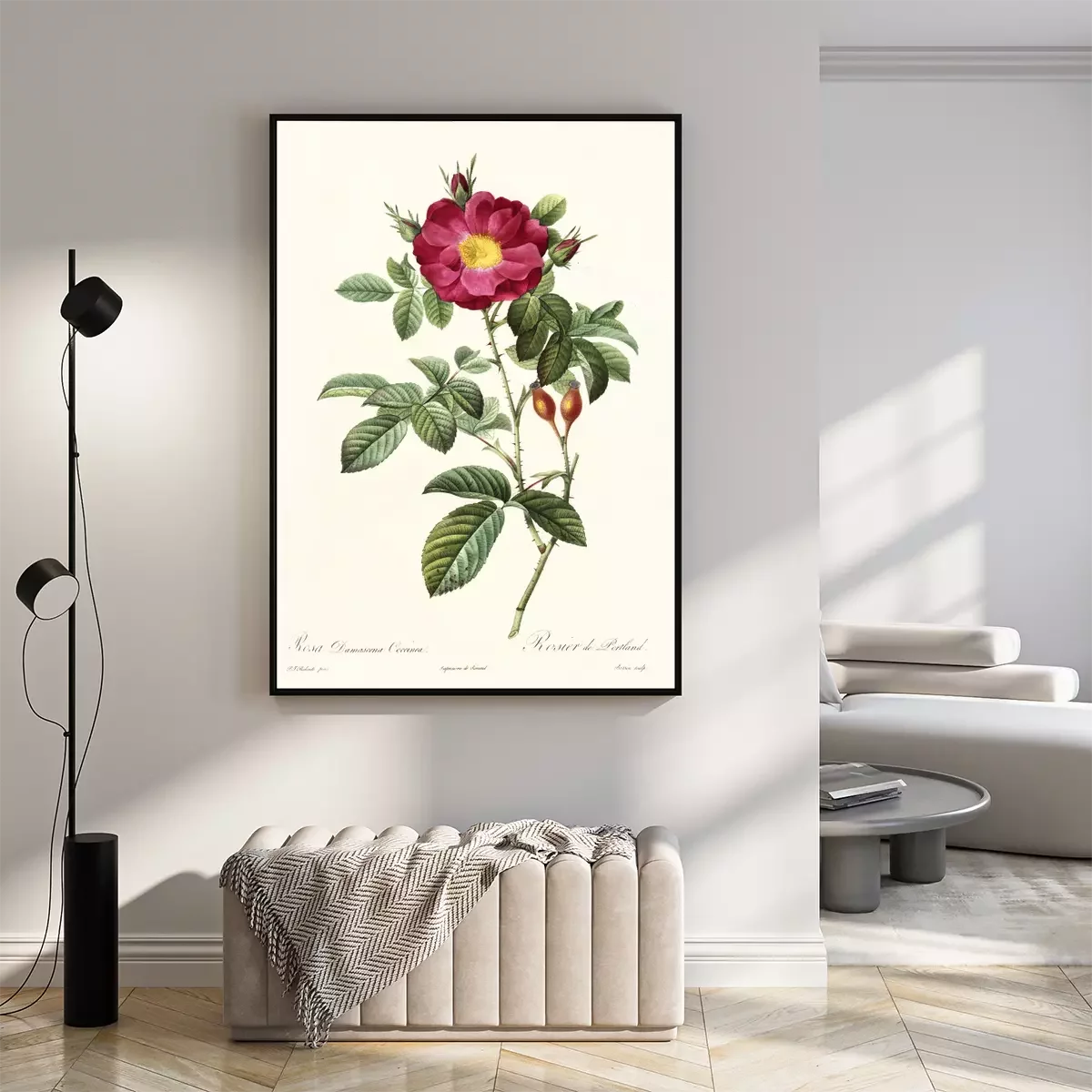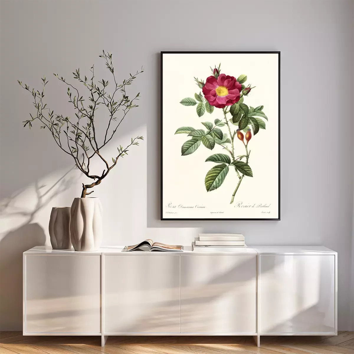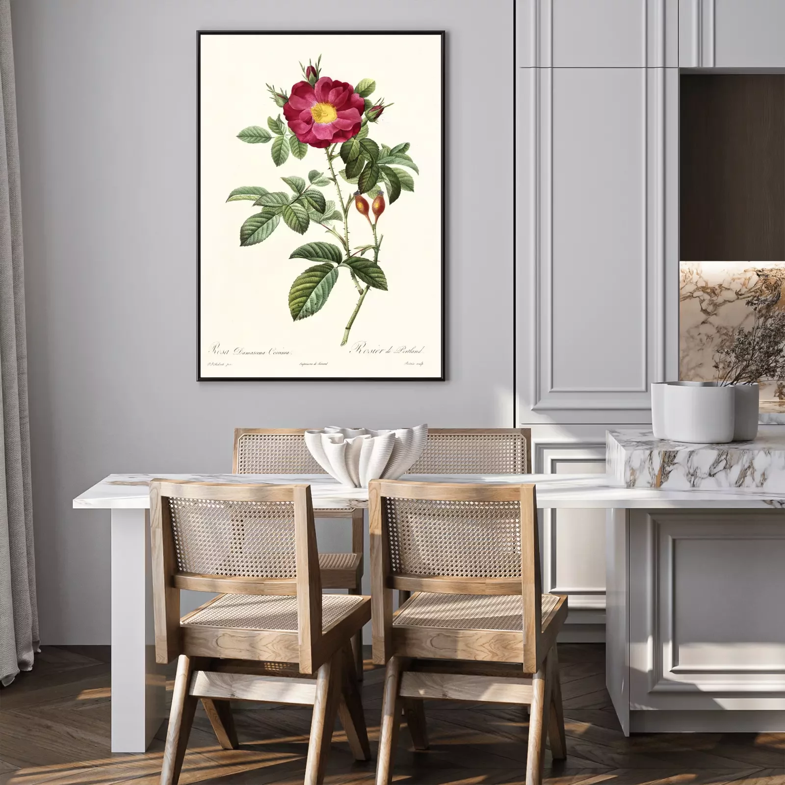Botanische Grafik der weißen Rose mit Beschreibungen