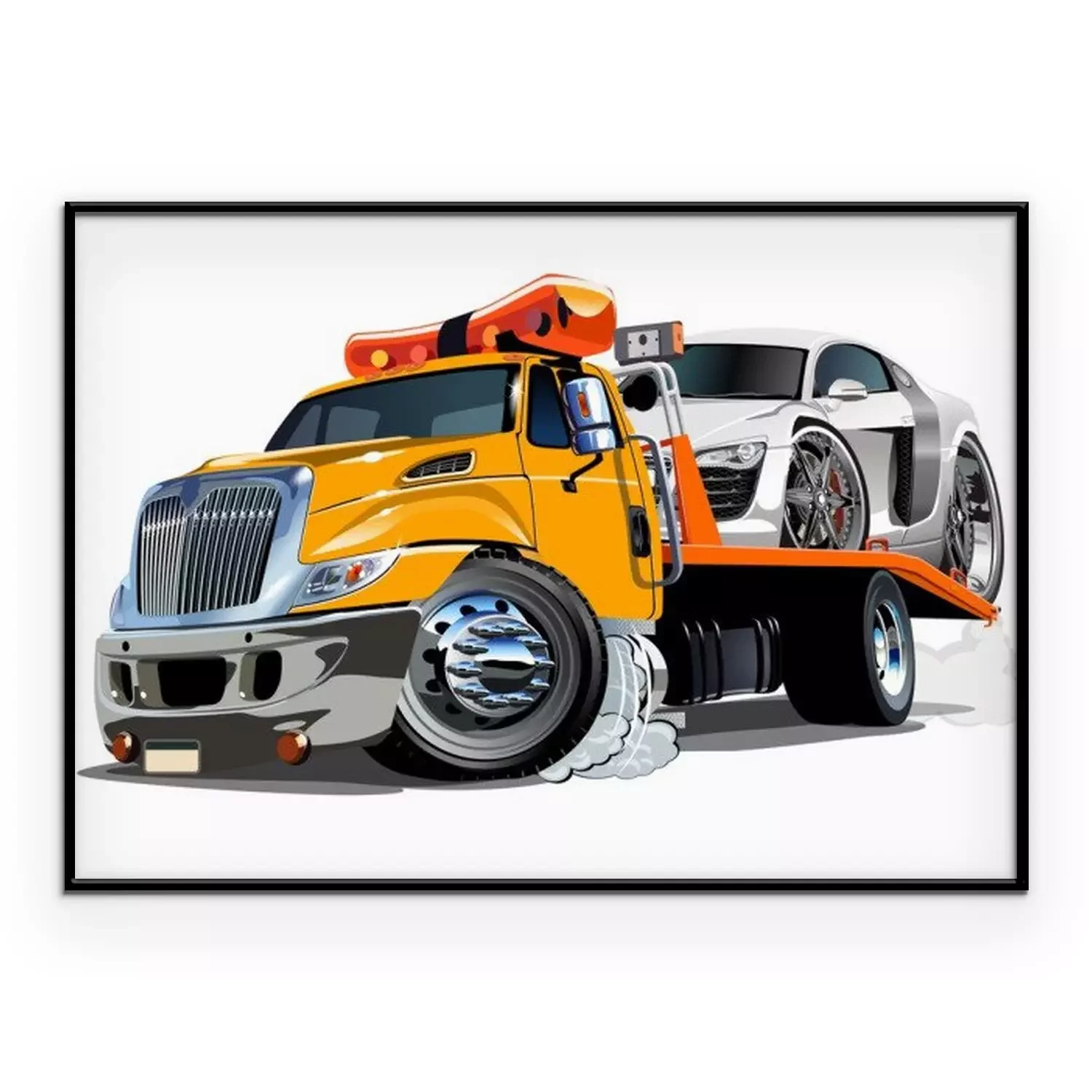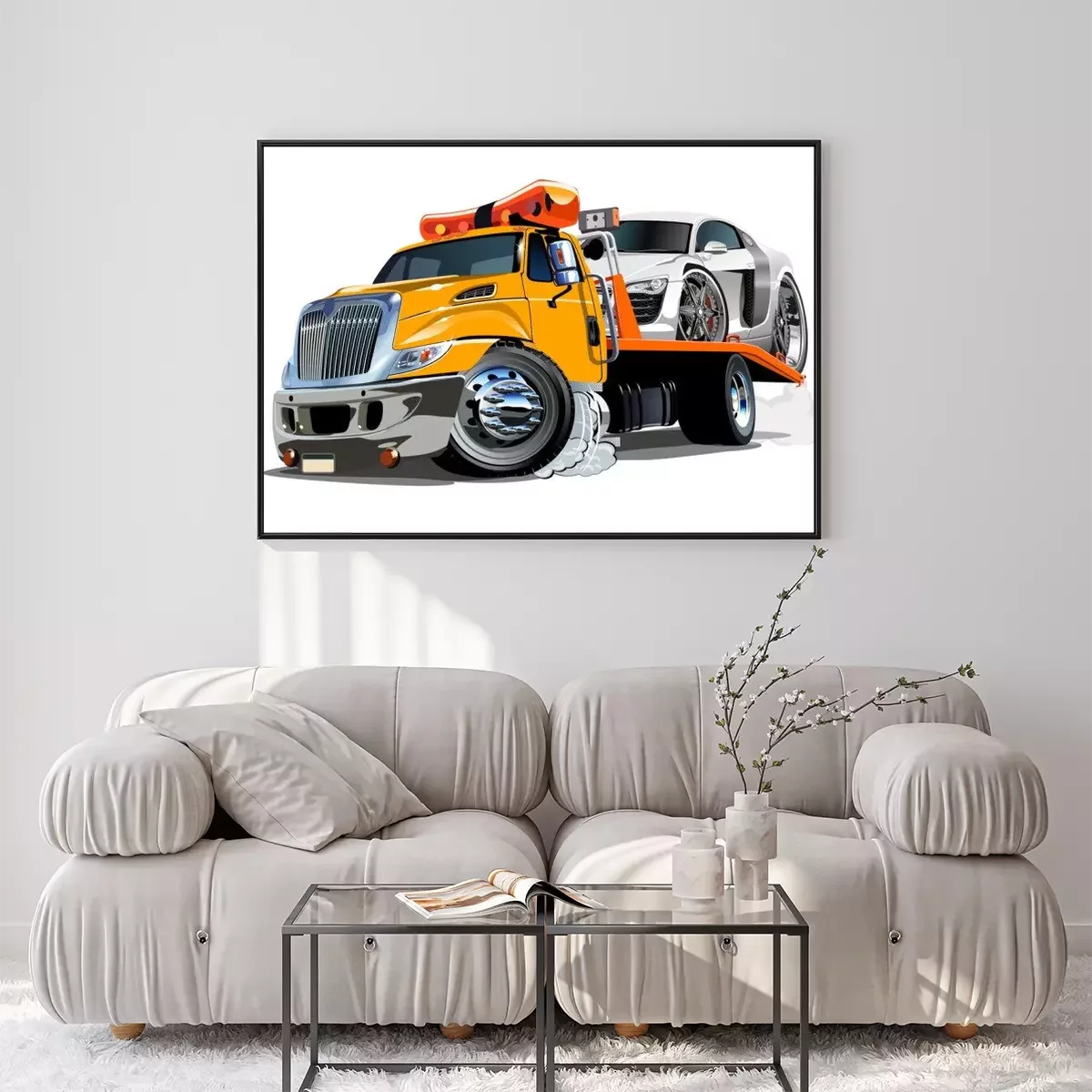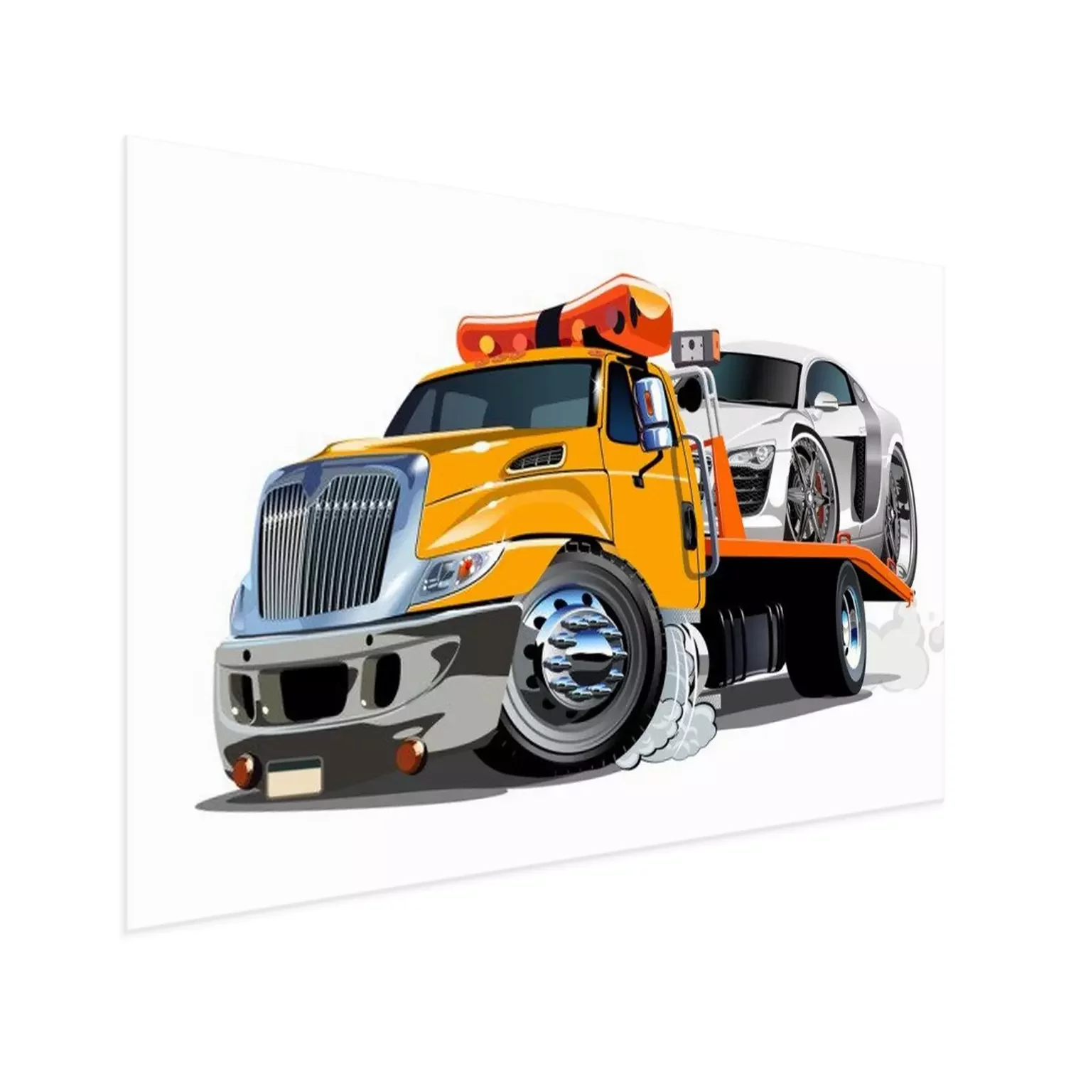 Poster: Cartoon-Anhänger mit gelbem Fahrerhaus