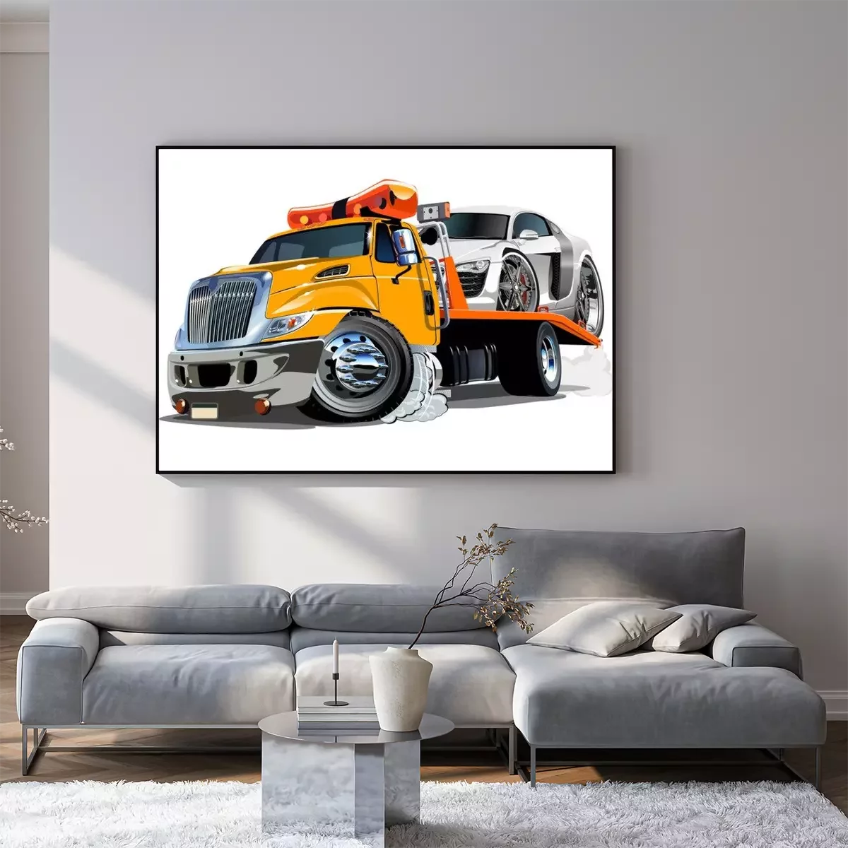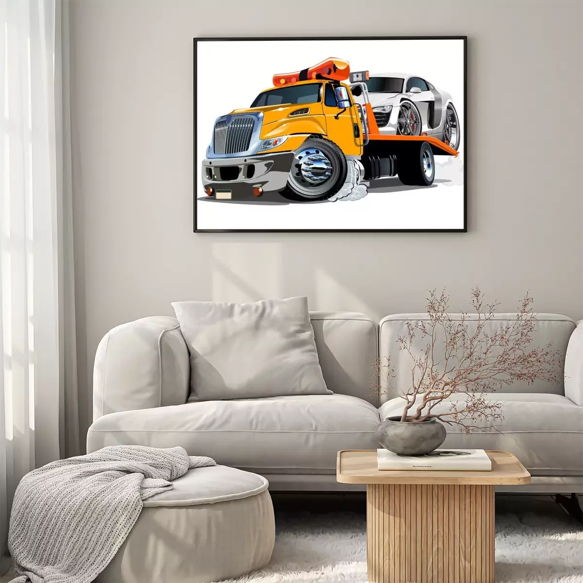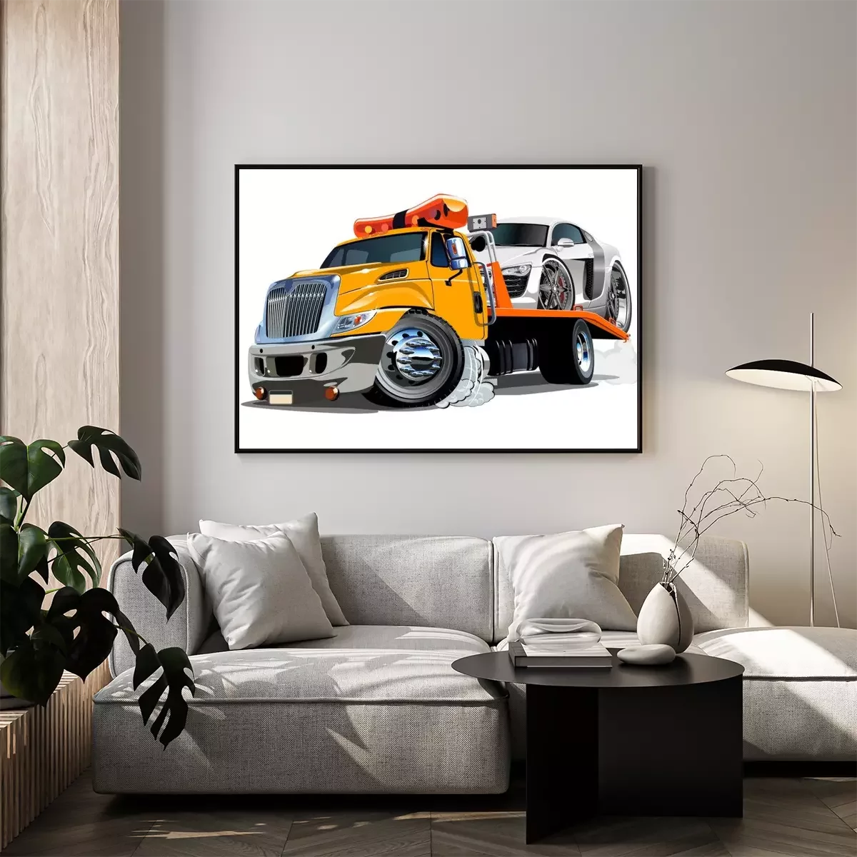 Poster: Cartoon-Anhänger mit gelbem Fahrerhaus