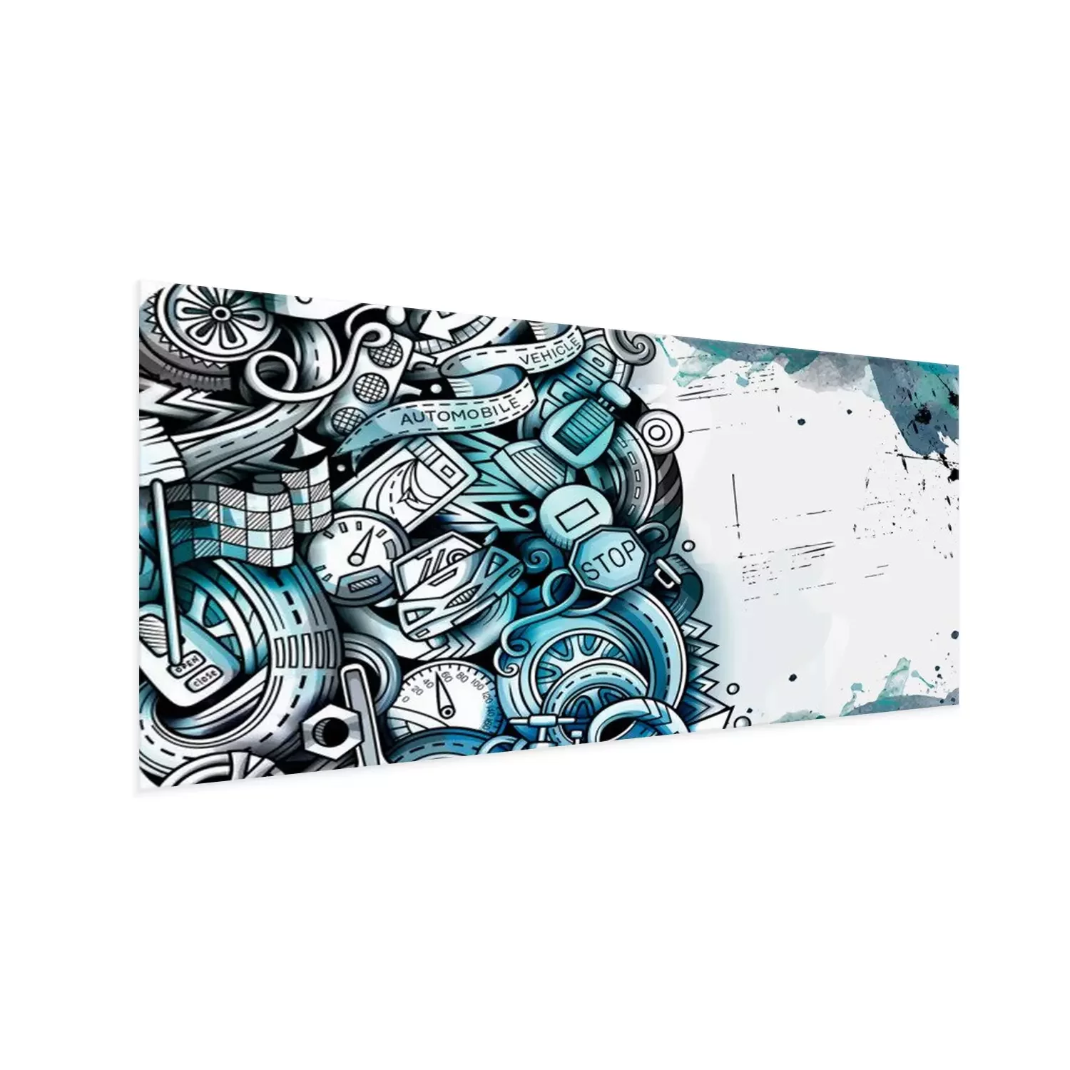 Poster Comic-Grafik eines Schrottplatzes für Fahrzeuge