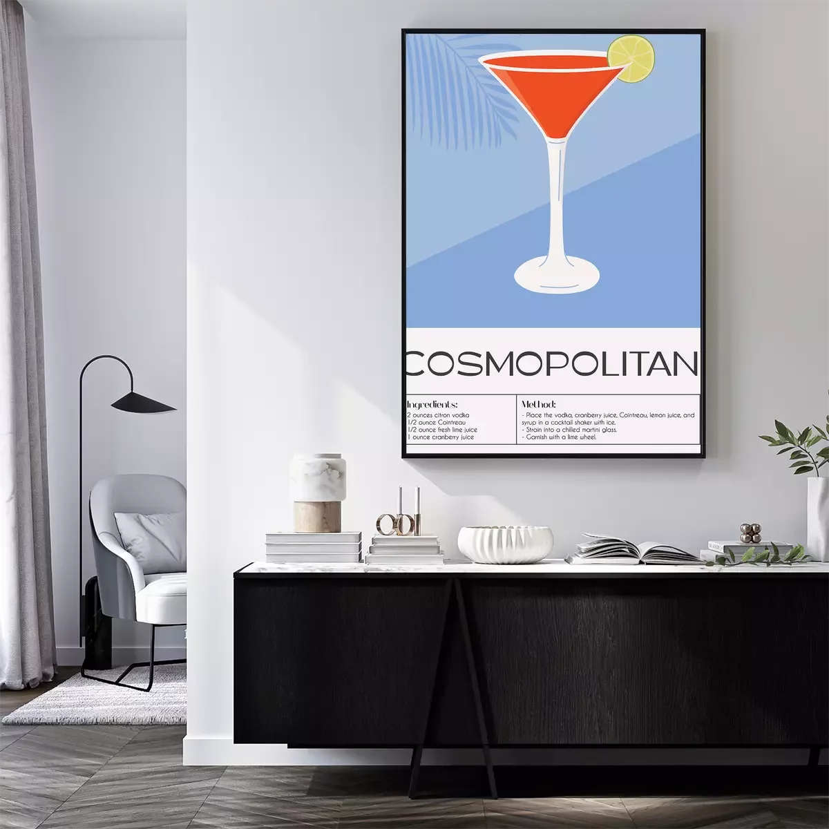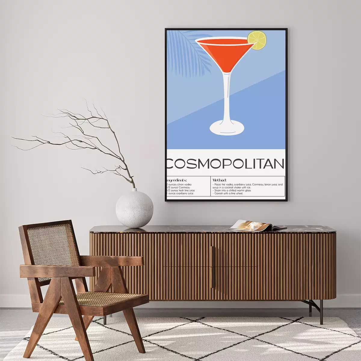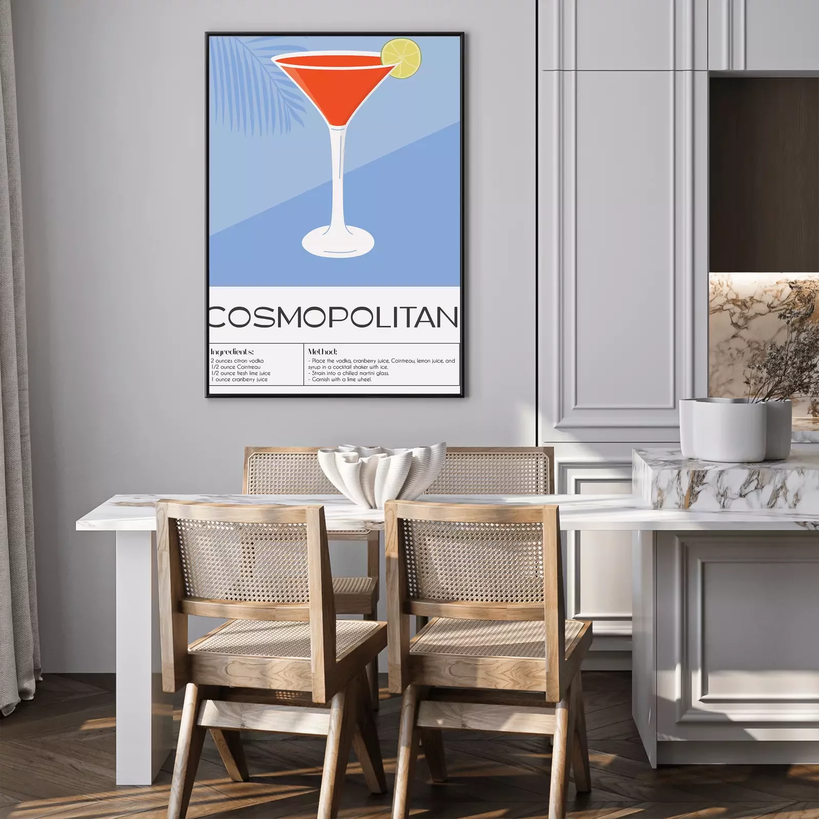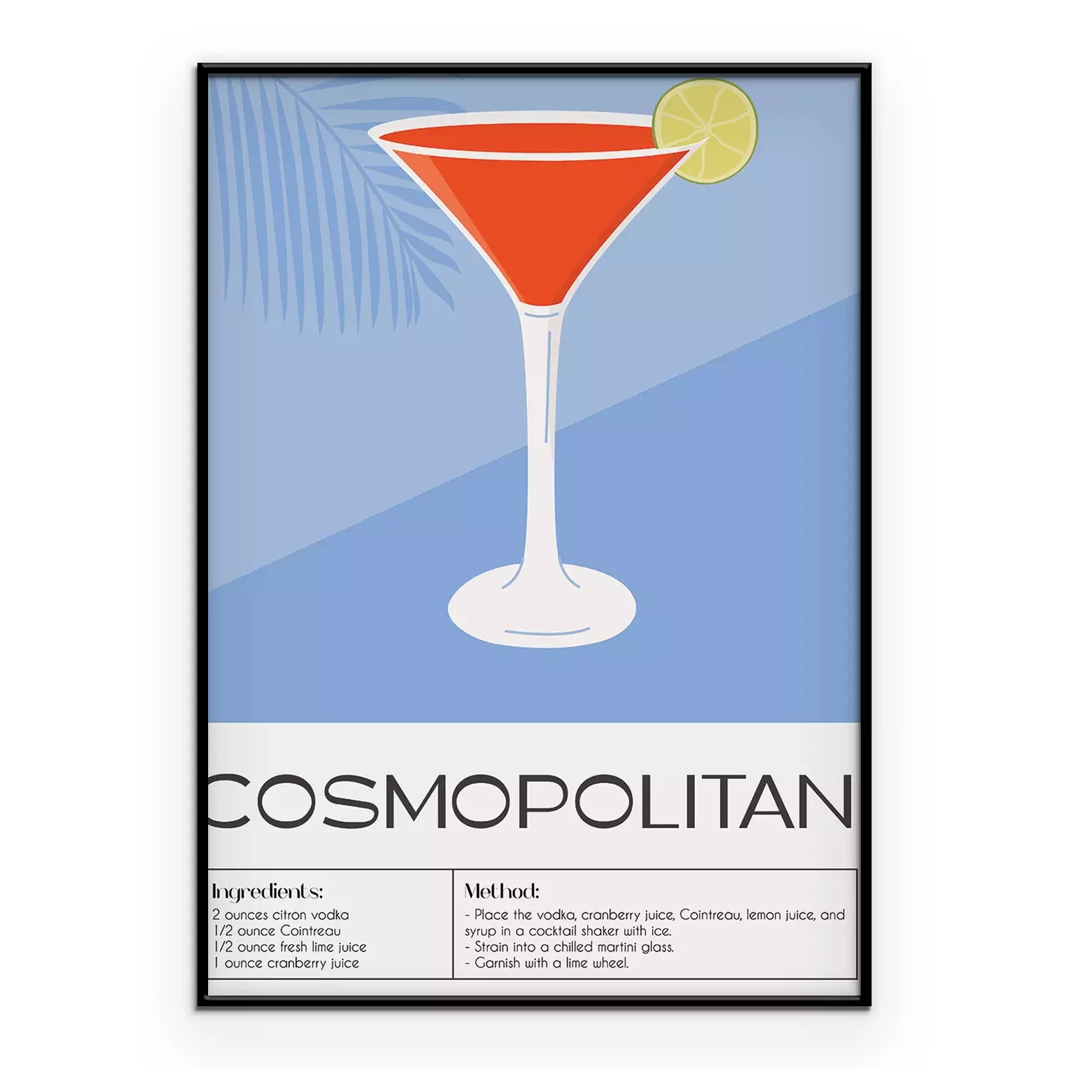 Poster: Cosmopolitan Cocktail Illustration mit Rezept