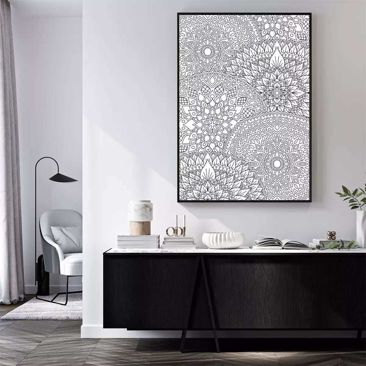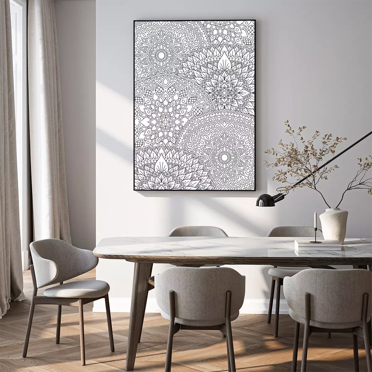 Schwarz-weiße Blumen Mandala-ähnliche Grafik